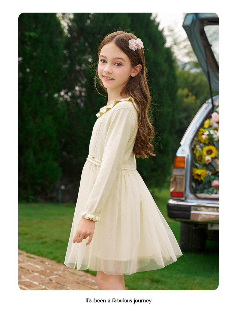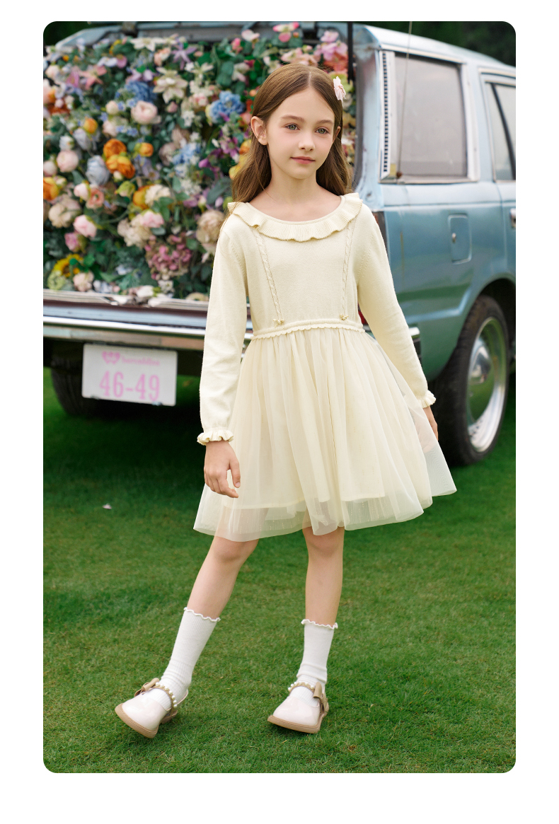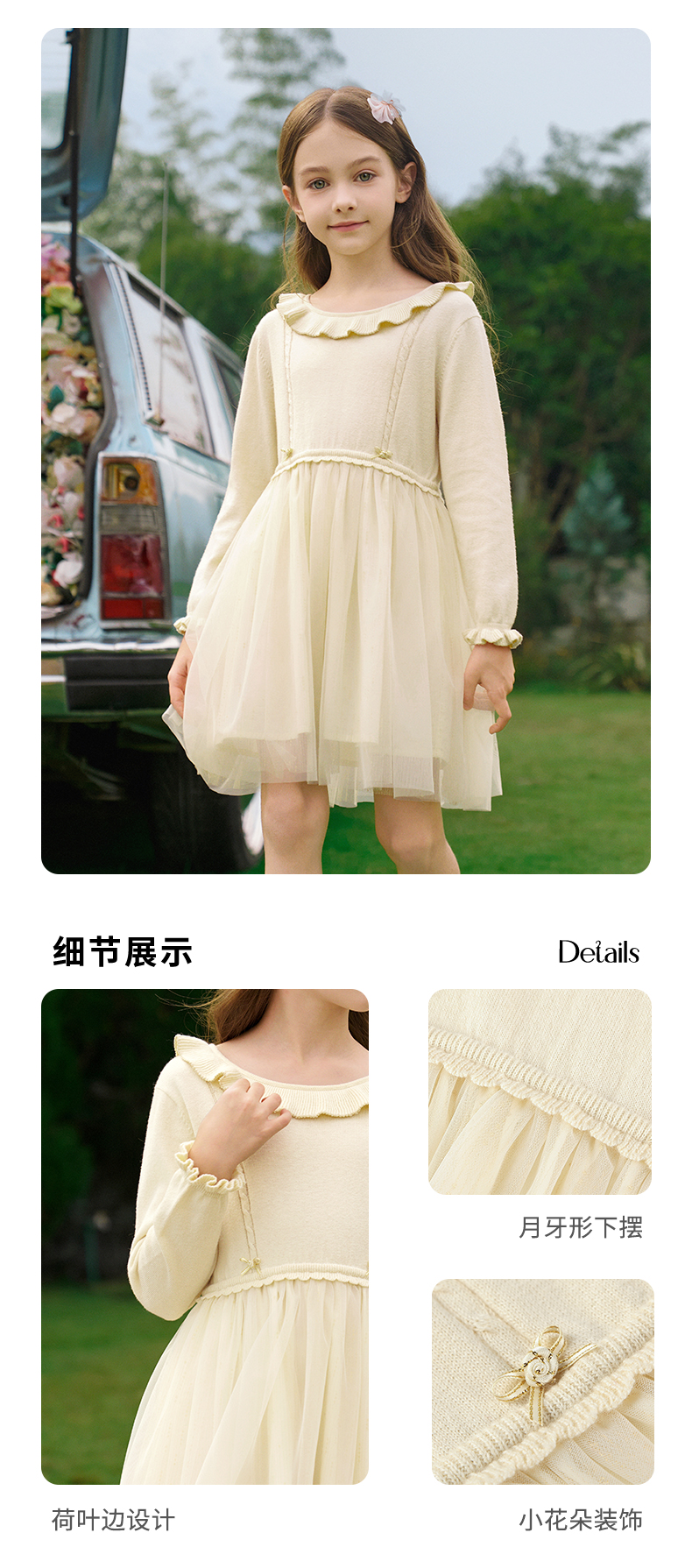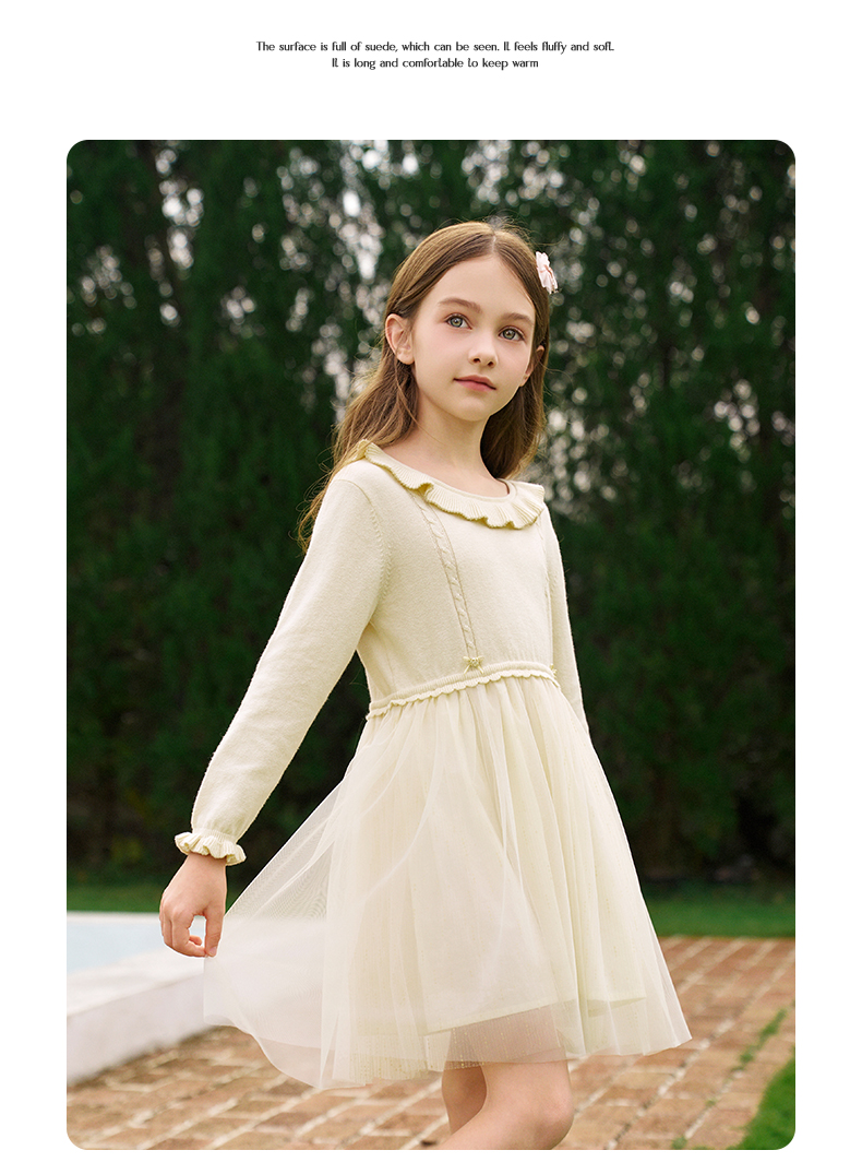 mettekids女童连衣裙2024新款春秋针织裙网纱裙子儿童甜美公主裙