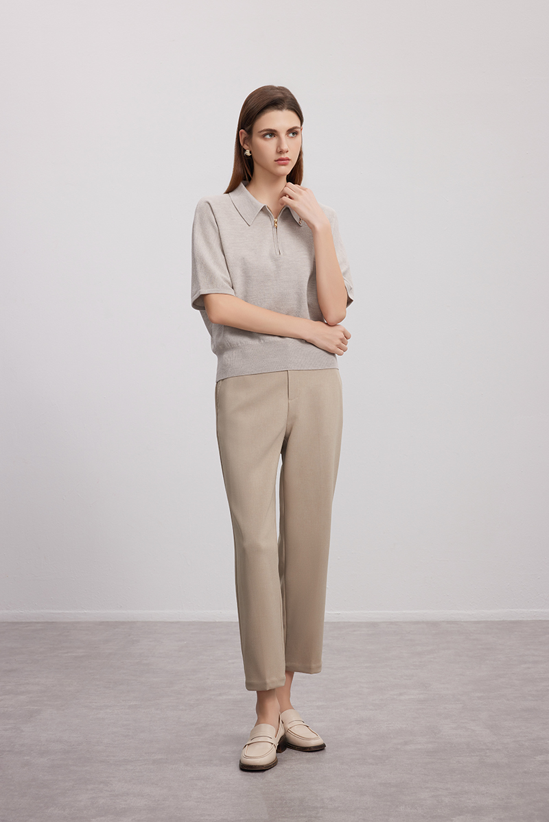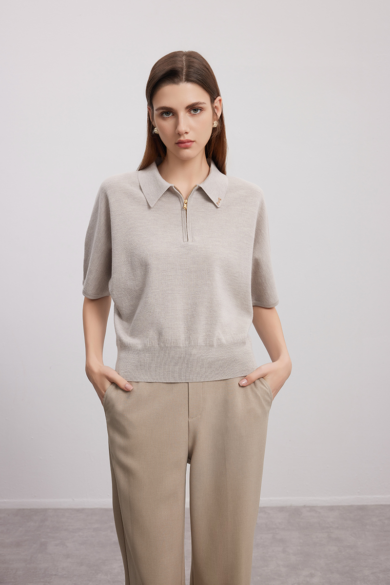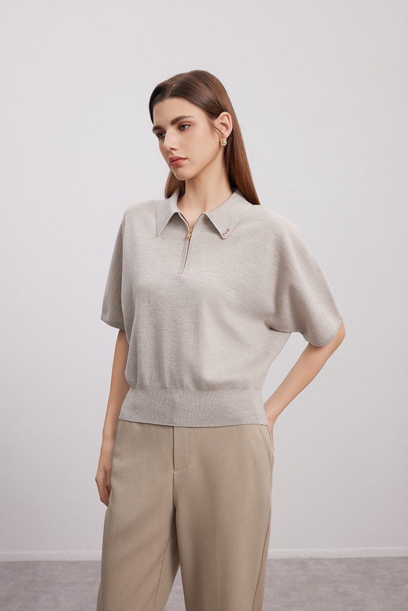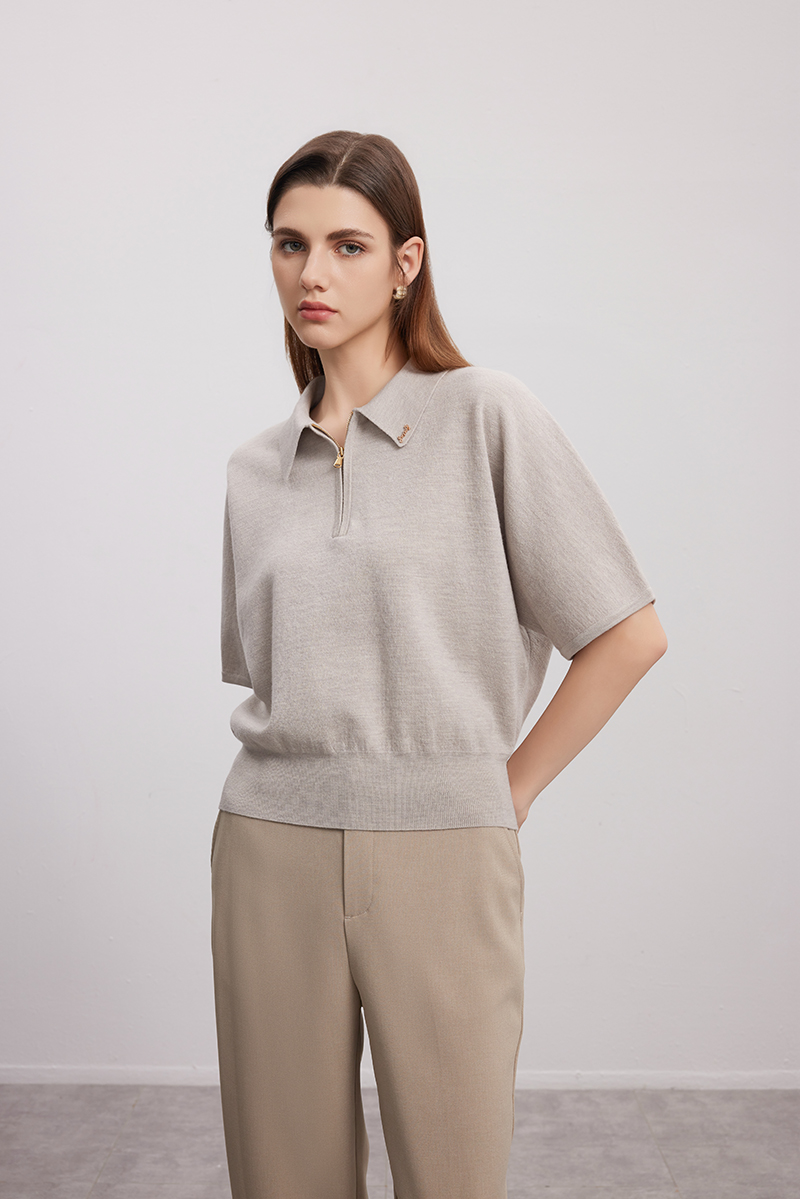 【五分袖绵羊毛针织衫】24年秋冬新品女士100%羊毛纯色薄款上衣