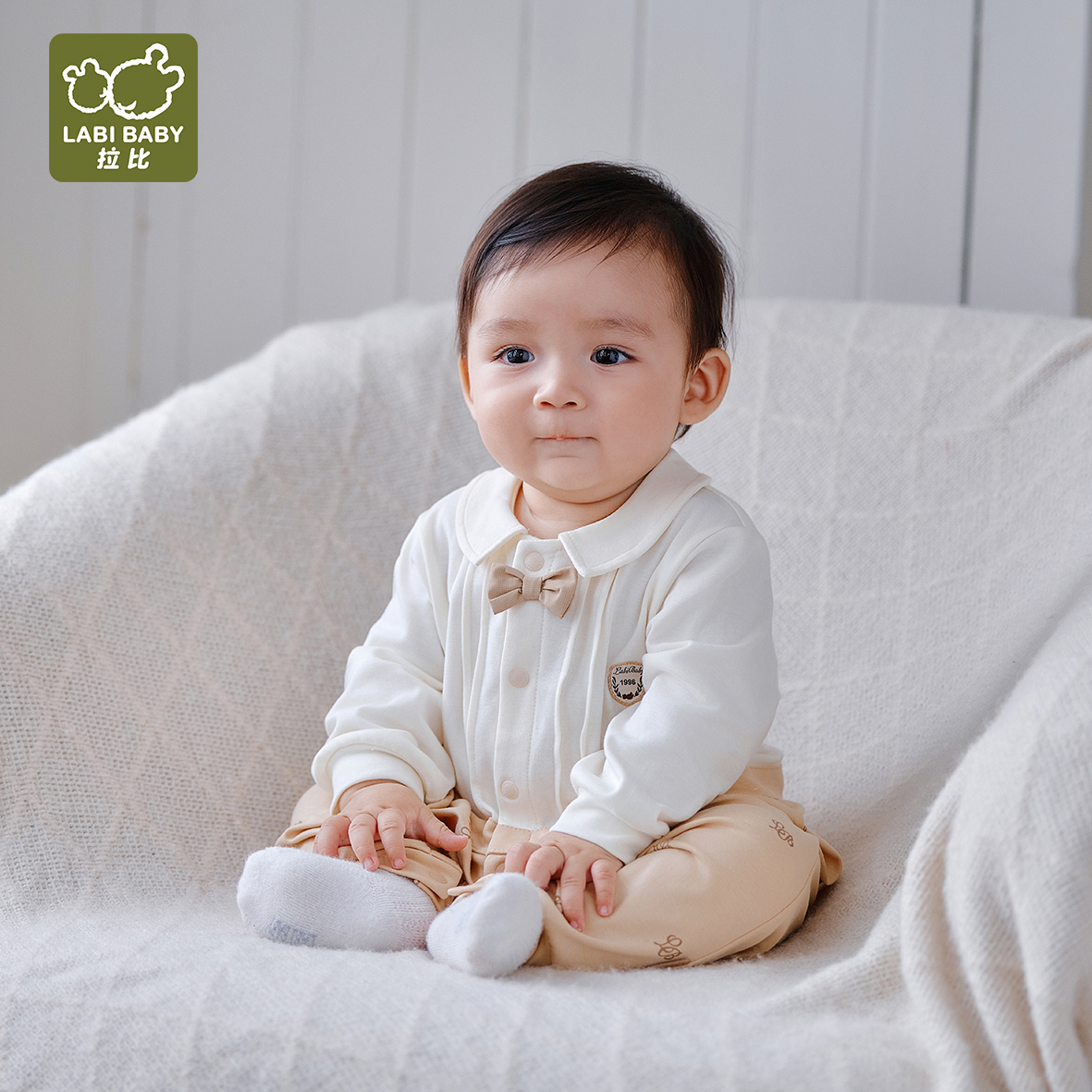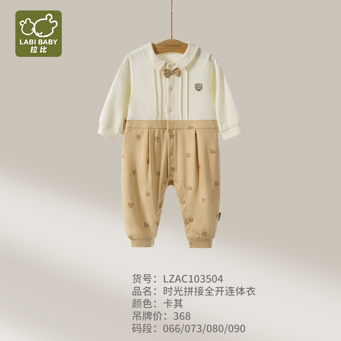 拉比童衣j6-1时光拼接全开连体衣卡其LZAC103504