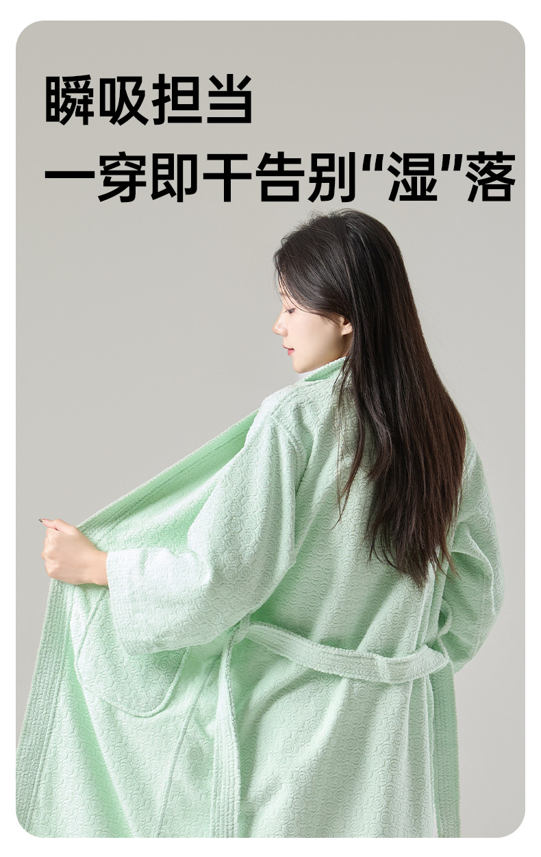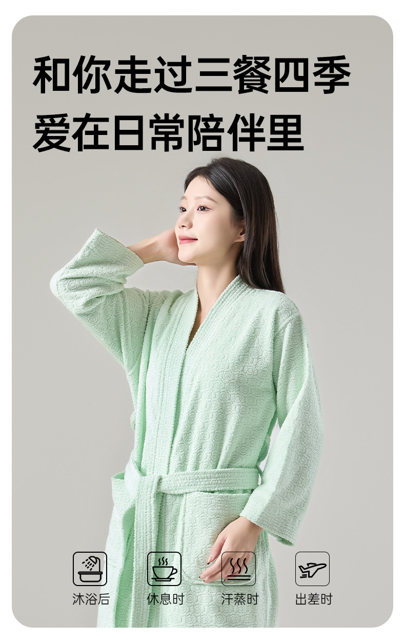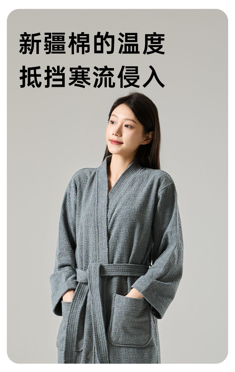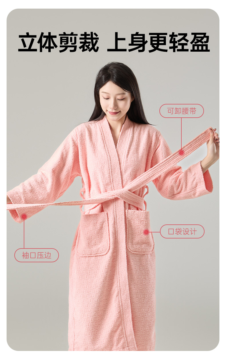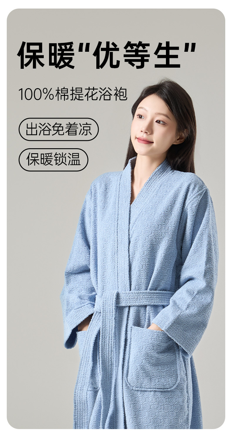 洁丽雅纯棉提花浴袍女速干全棉秋冬毛巾料浴衣可穿浴巾酒店睡袍男
