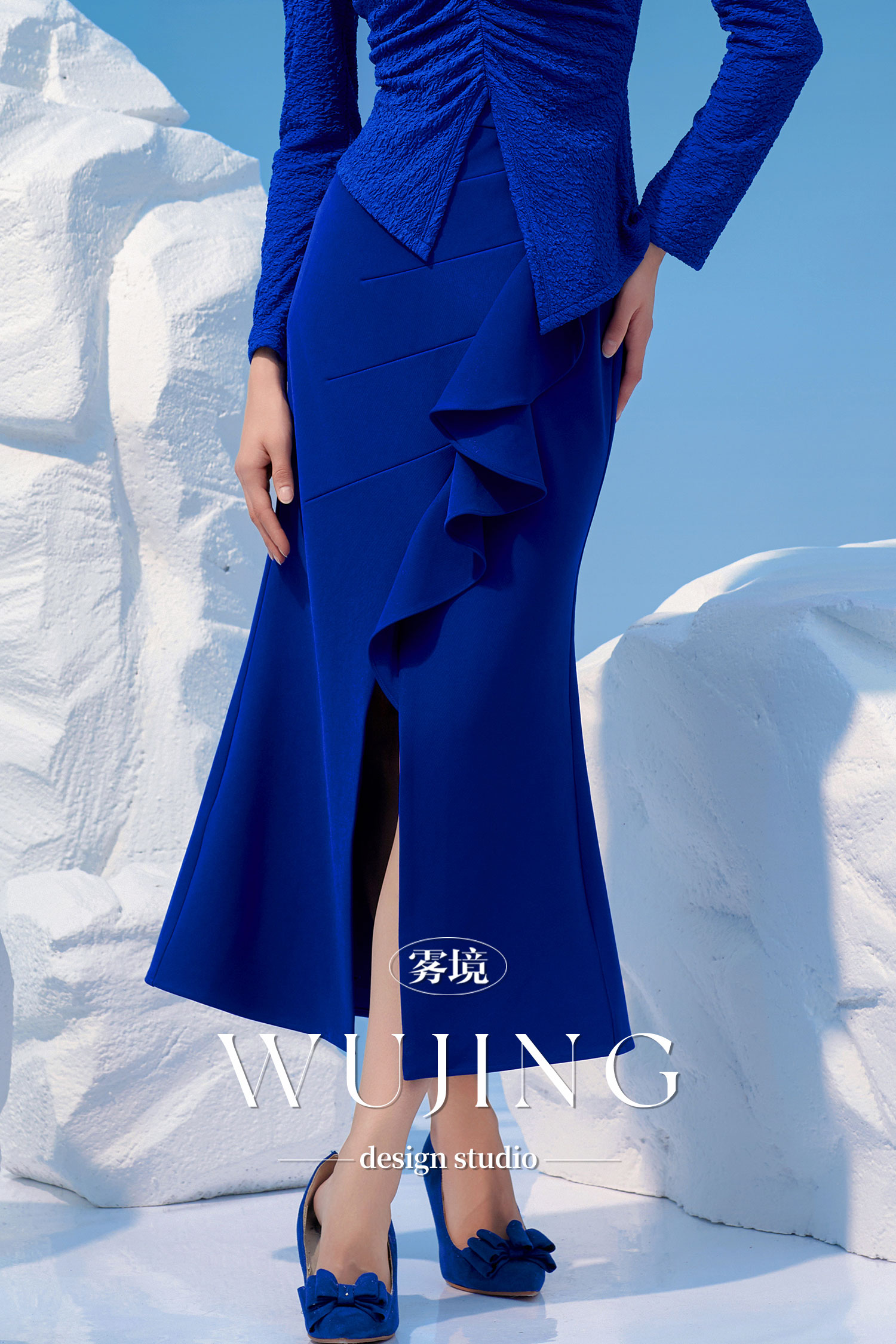 4202008 青蓝冰水 高级亮丝斜纹半裙 雾境