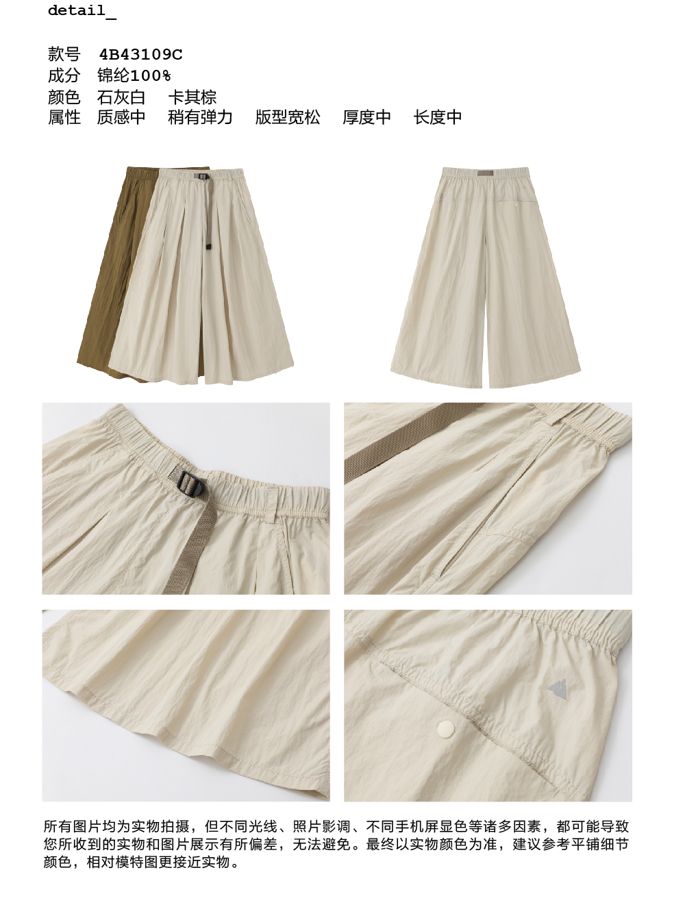 步履不停/4B43109C/轻薄透气九分裤裙裤