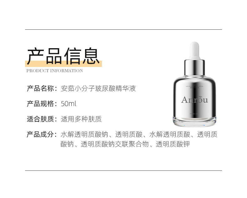 【拍二发三】安茹小分子玻尿酸原液精华液易吸收水润保湿深层补水舒缓/50ML