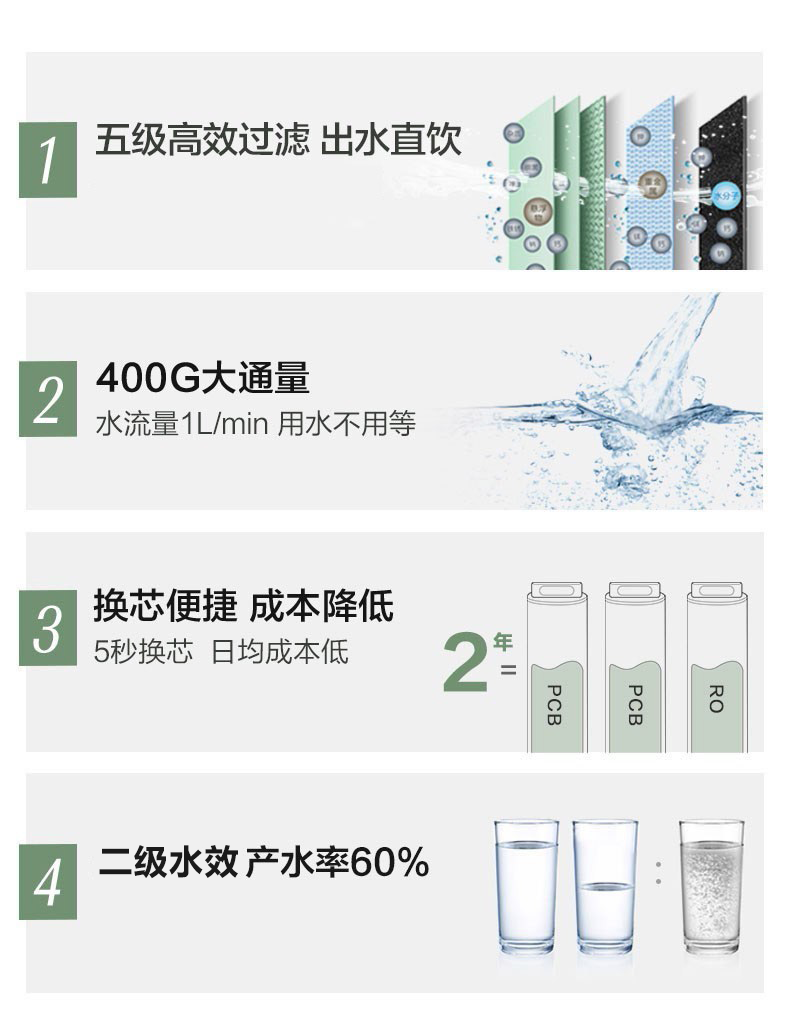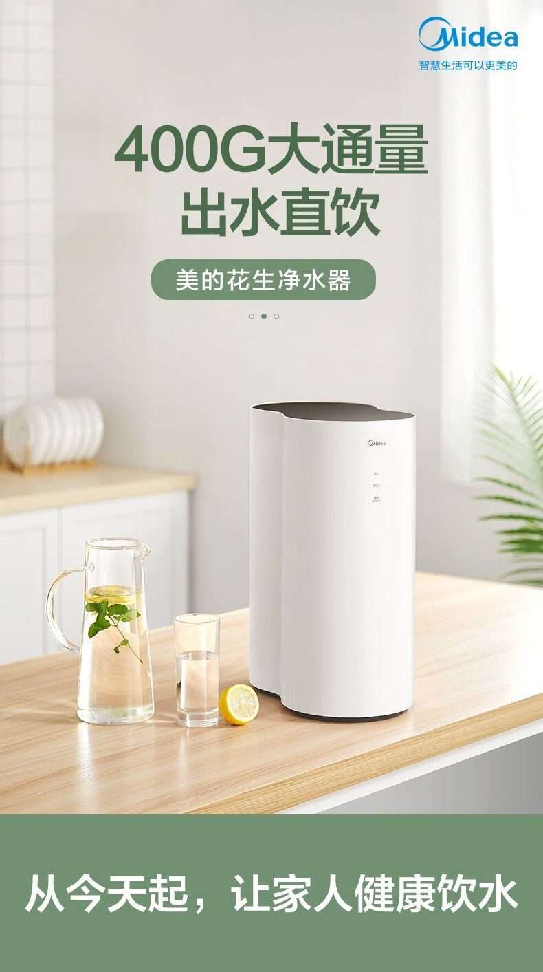 美的(Midea)净水器 MRO1791D-400G 家用厨下五级过滤直饮机RO反渗透过滤花生净水机 净享鲜活400G