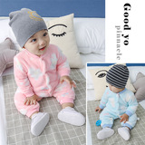 婴幼儿外出哈衣秋冬法兰绒保暖连体爬服新生儿分腿睡袋