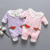 女童长袖纯棉连体衣可爱蕾丝新生儿哈衣韩潮公主爬服