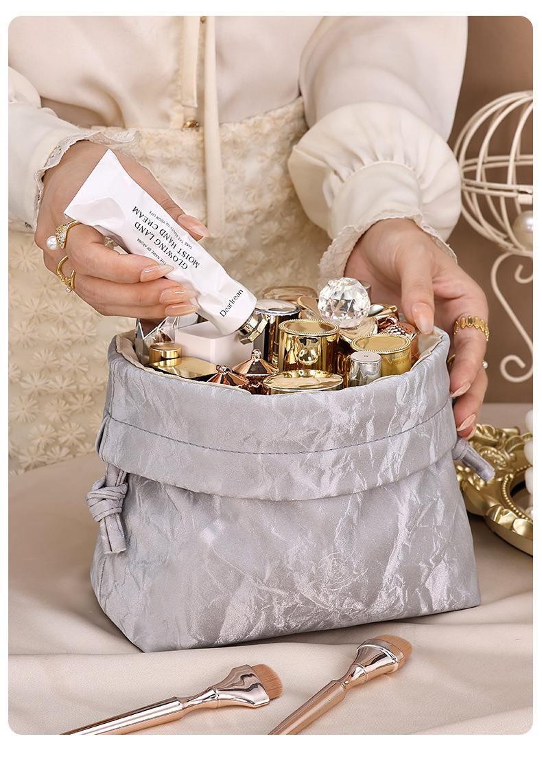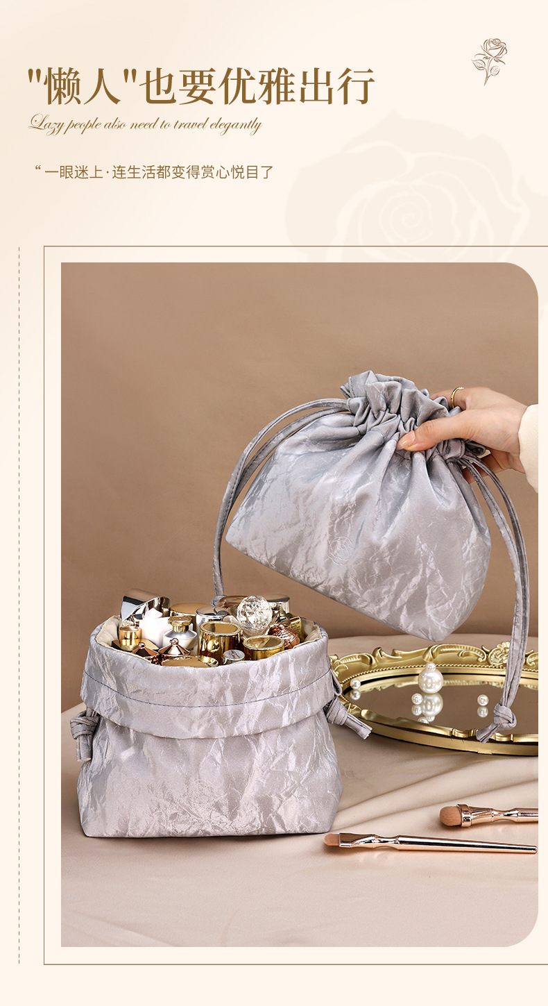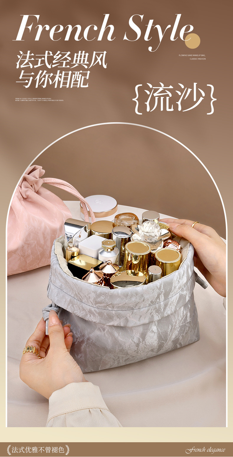 【法式高颜值经典收纳包】随身流沙ins新款 化妆品大容量束口便携懒人包 国庆出行好物