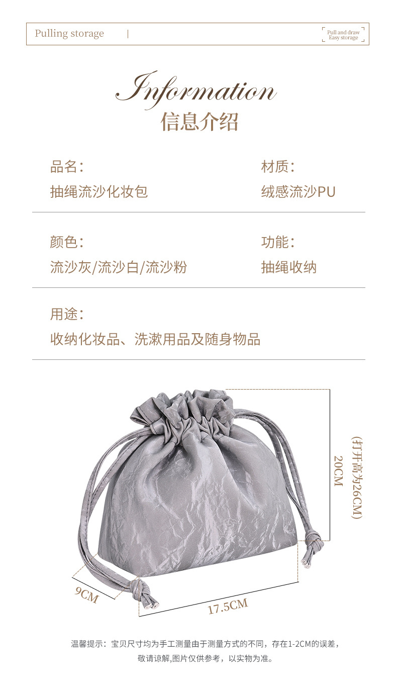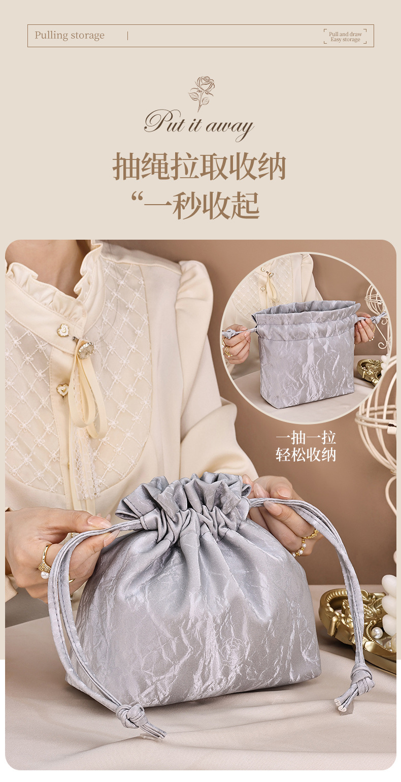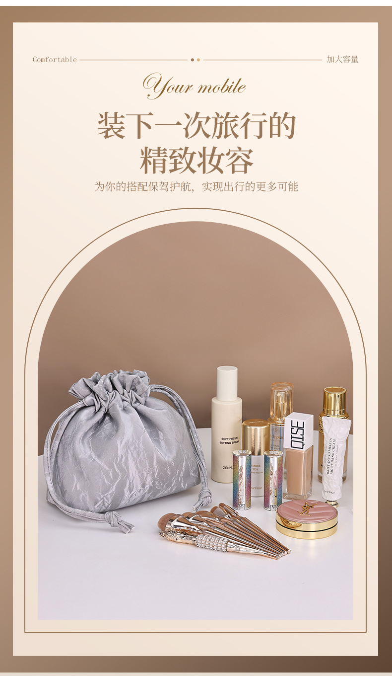 【法式高颜值经典收纳包】随身流沙ins新款 化妆品大容量束口便携懒人包 国庆出行好物