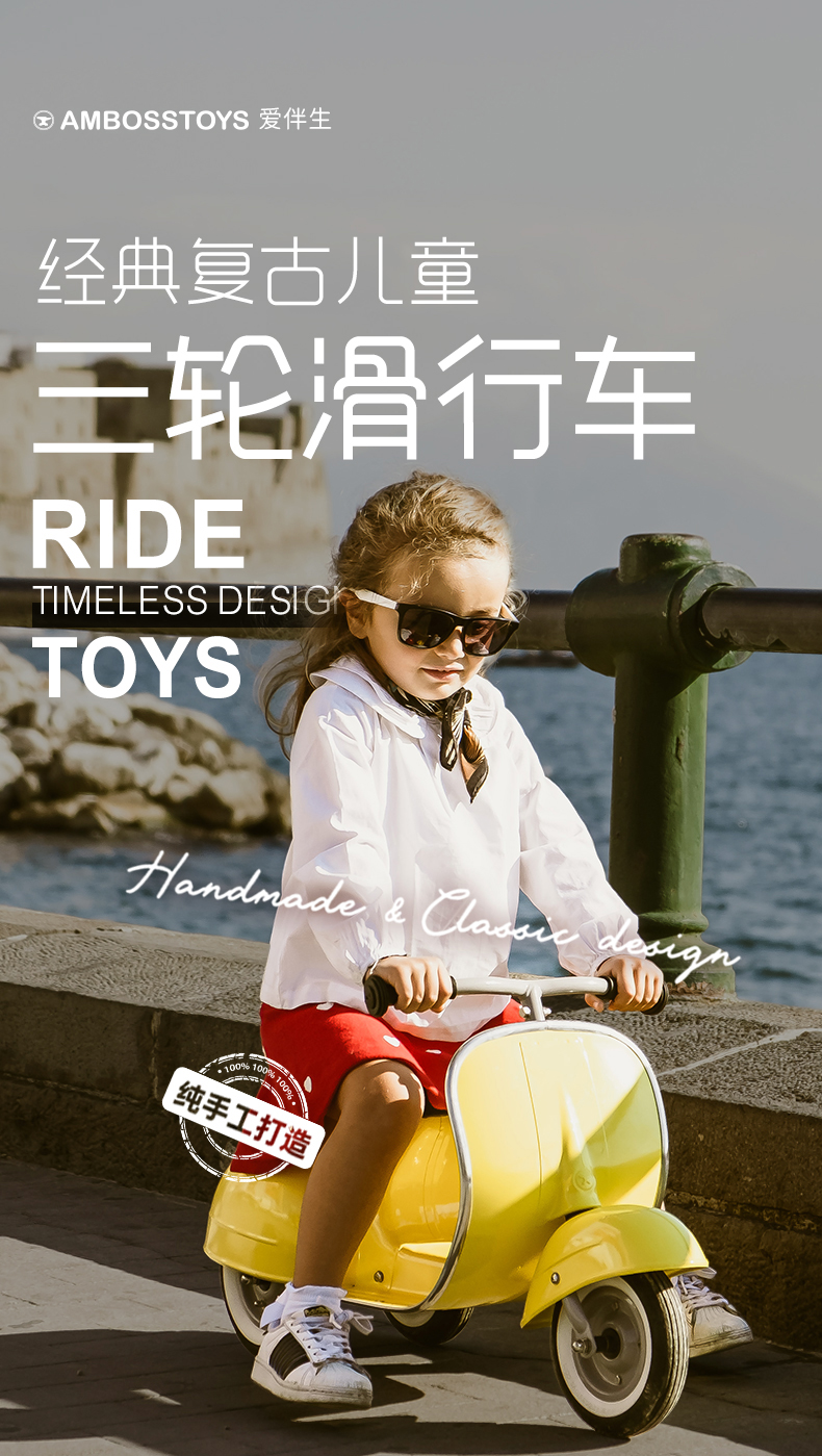 Ambosstoys 浅粉色金属骑行车 适合年龄2岁+ 经典复古 纯手工打造 舒适骑行 源自瑞典 800048Z75