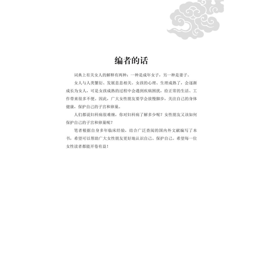 妇科病很难缠,但并不可怕。本书共三篇9章,全面介绍了各种妇科生理健康及疾病防治的相关知识。其中,上篇系统梳理了妇科基础知识,以帮助女性更好地认识自己、了解女性生殖系统;下篇着重于介绍各种常见妇科病的预防和应对;附篇则讲解了避孕、怀孕、流产等知识。本书语言通俗易懂,内容全面实用,可为广大女性读者,特别是饱受妇科病困扰的女性读者提供有益参考。