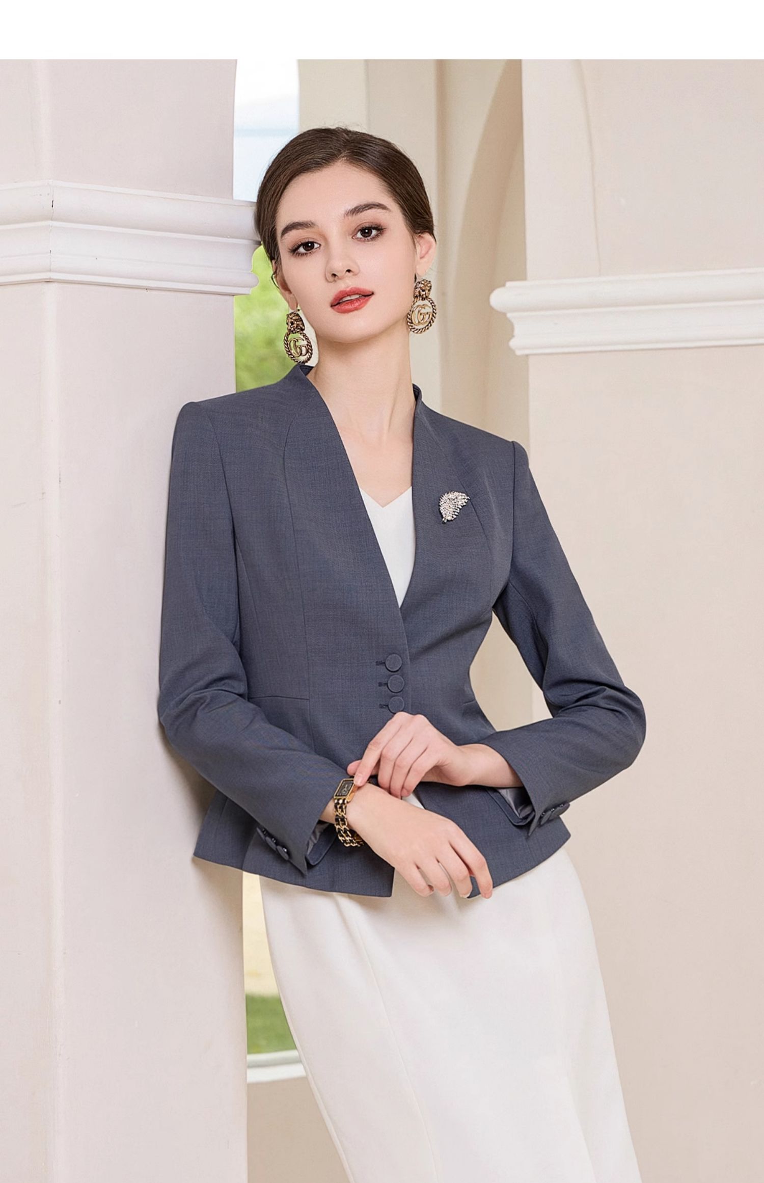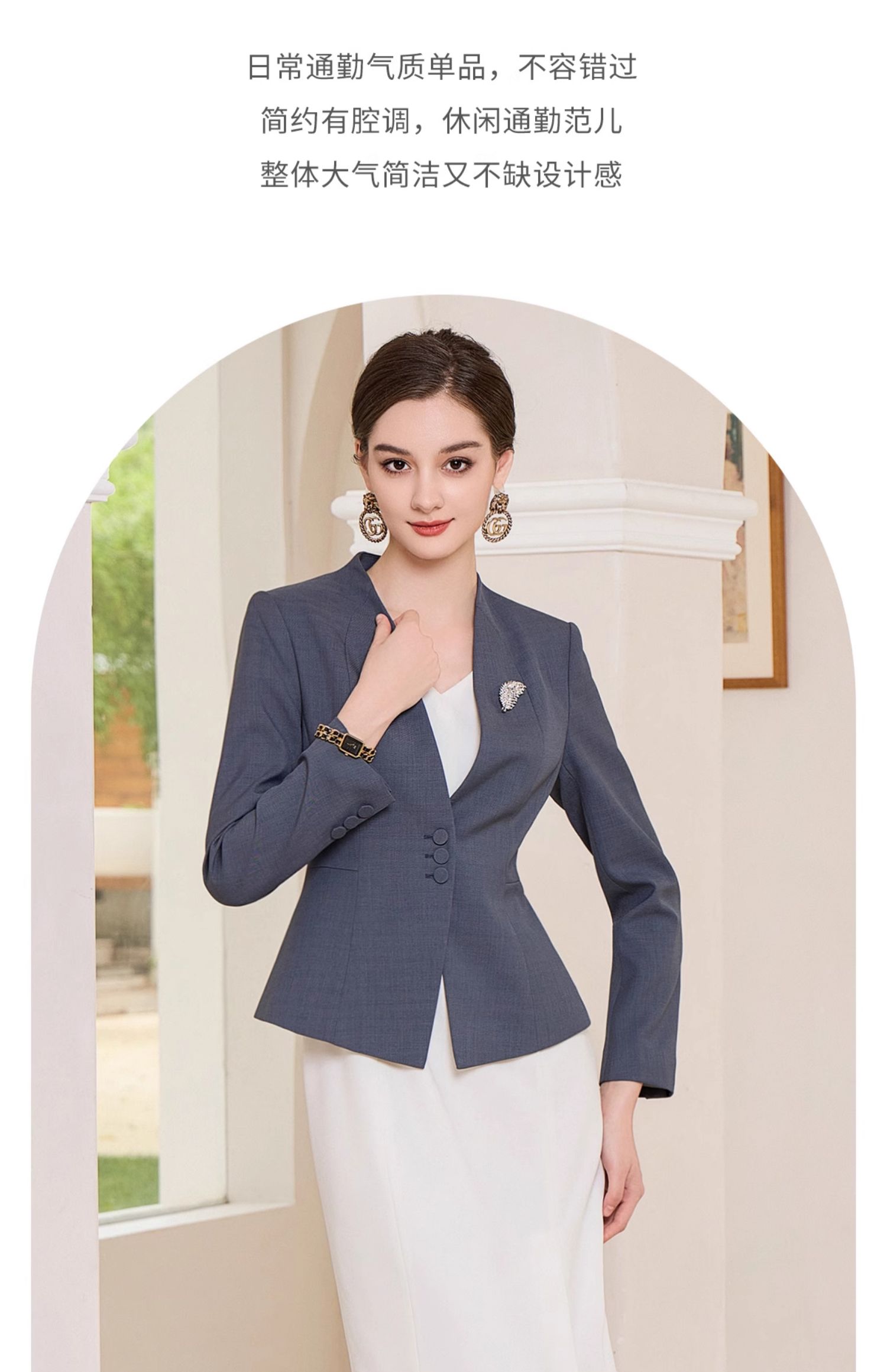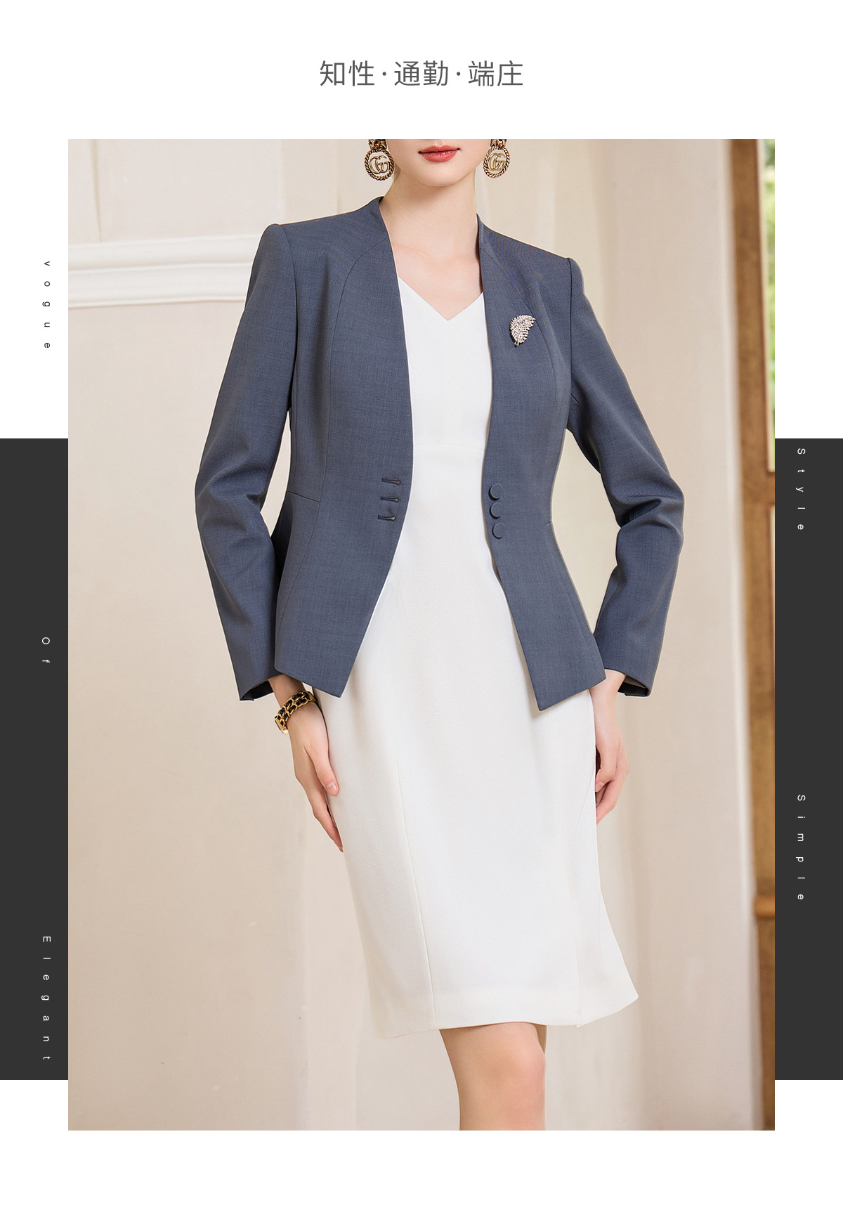 IWY/新款女装高级感蓝灰色一粒扣职业西装工作服时尚西装连衣裙 C1858+Q997
