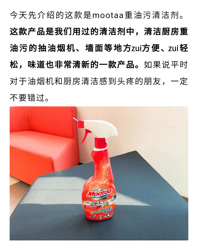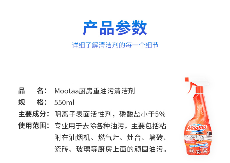 mootaa重油污清洁剂550ml泡沫清洗剂家用厨房强力去重油污净除油