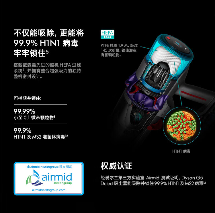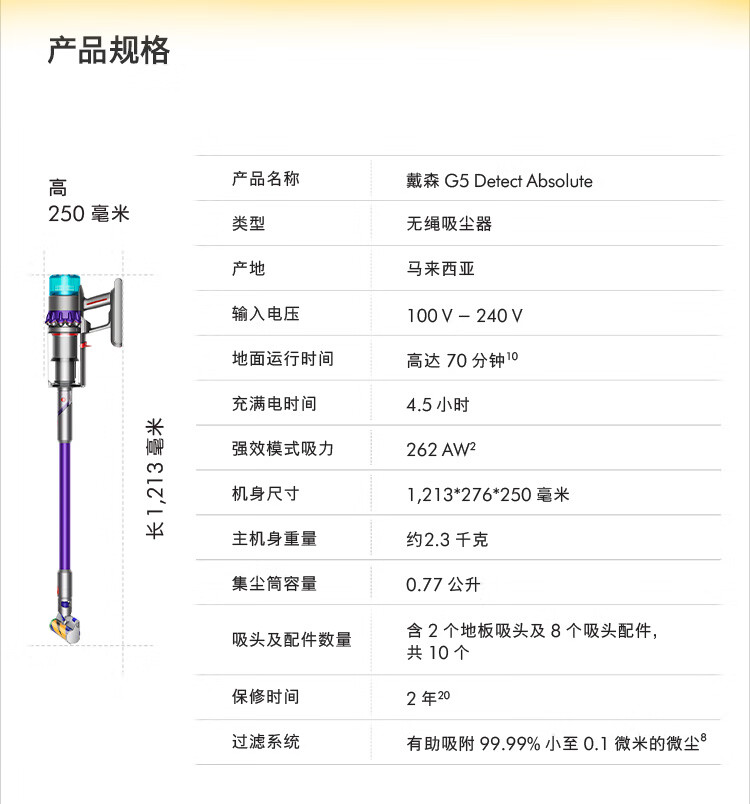 戴森(DYSON)G5 Detect Absolute手持无线吸尘器