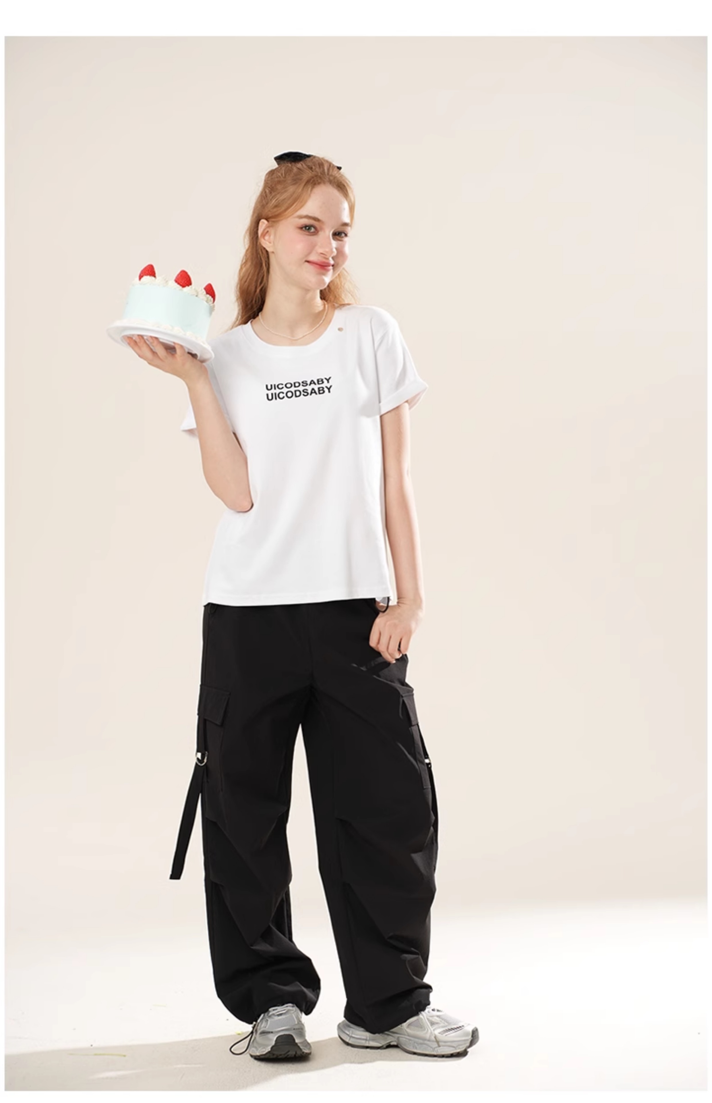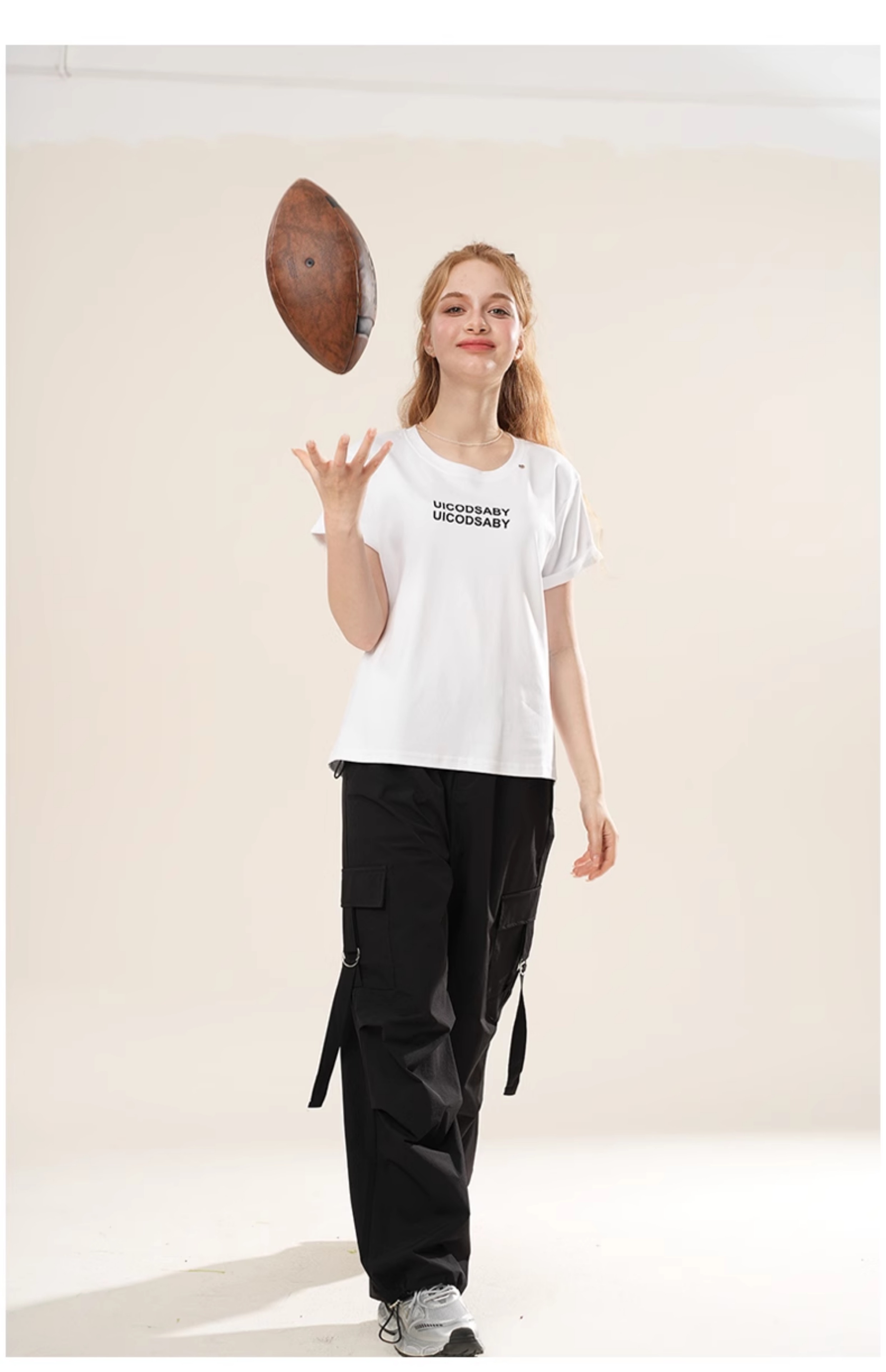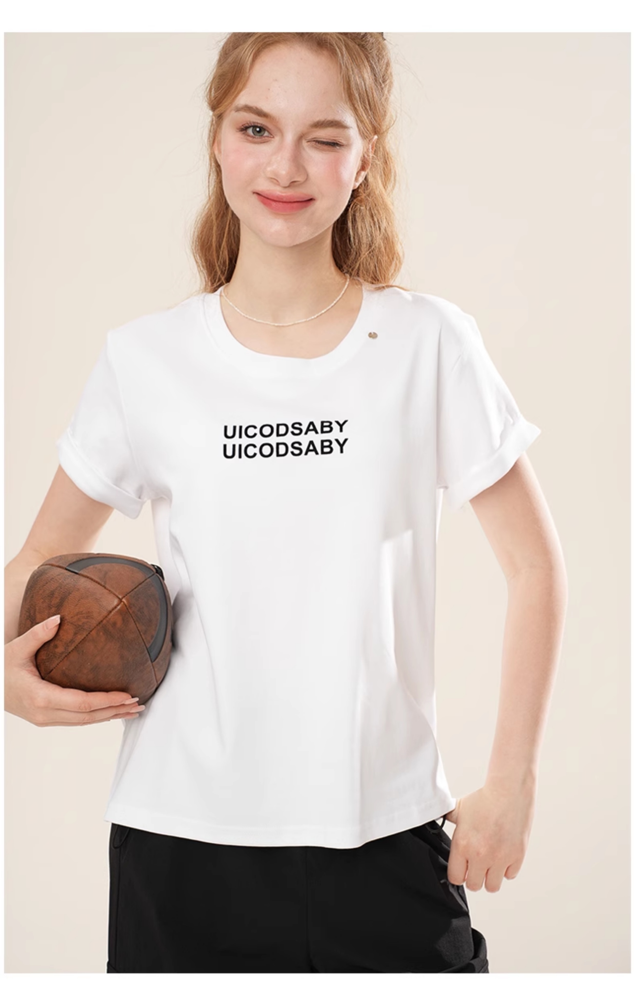 女装圆领植绒印花金属片装饰短袖T恤-5691T5221018
