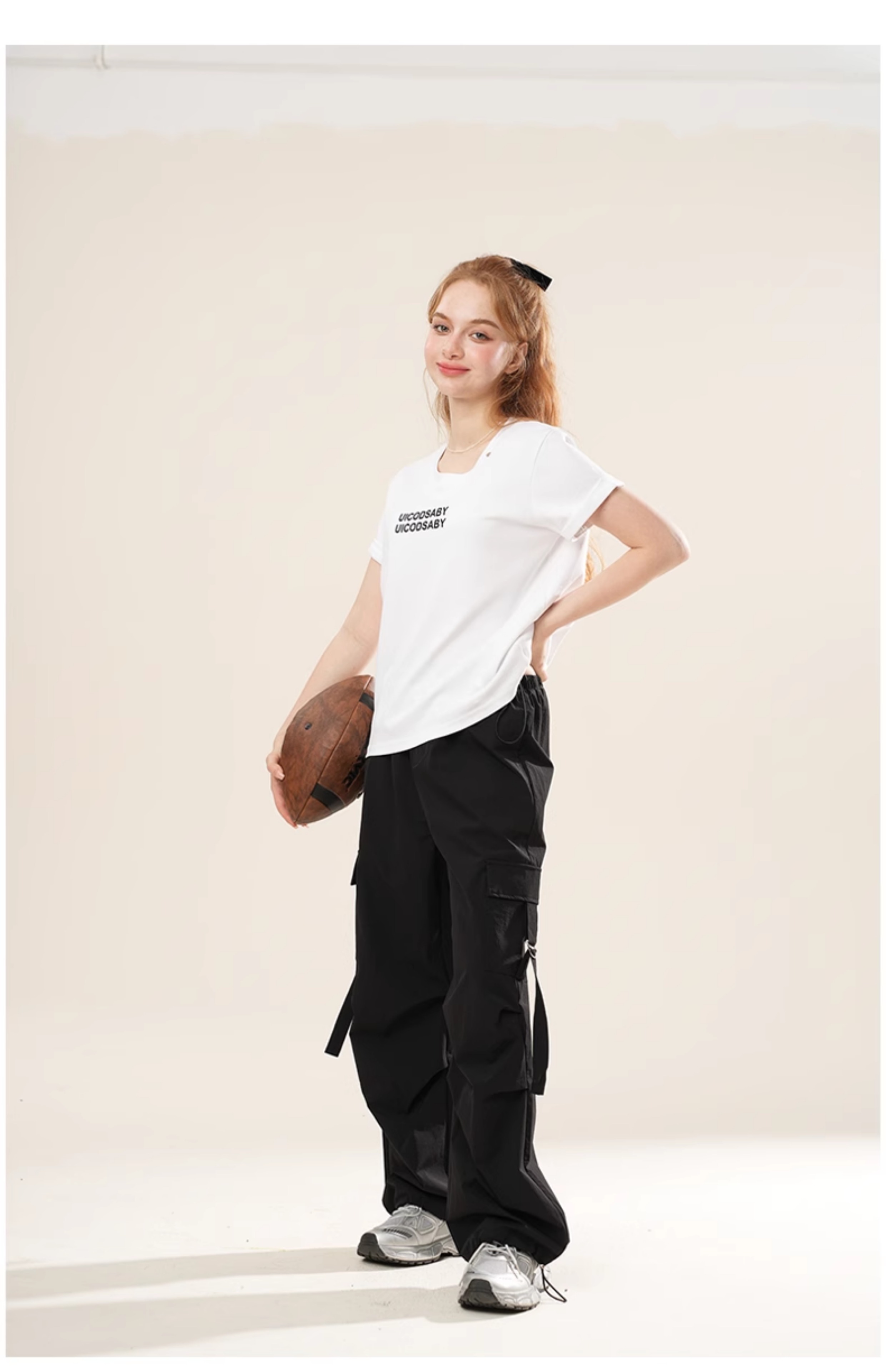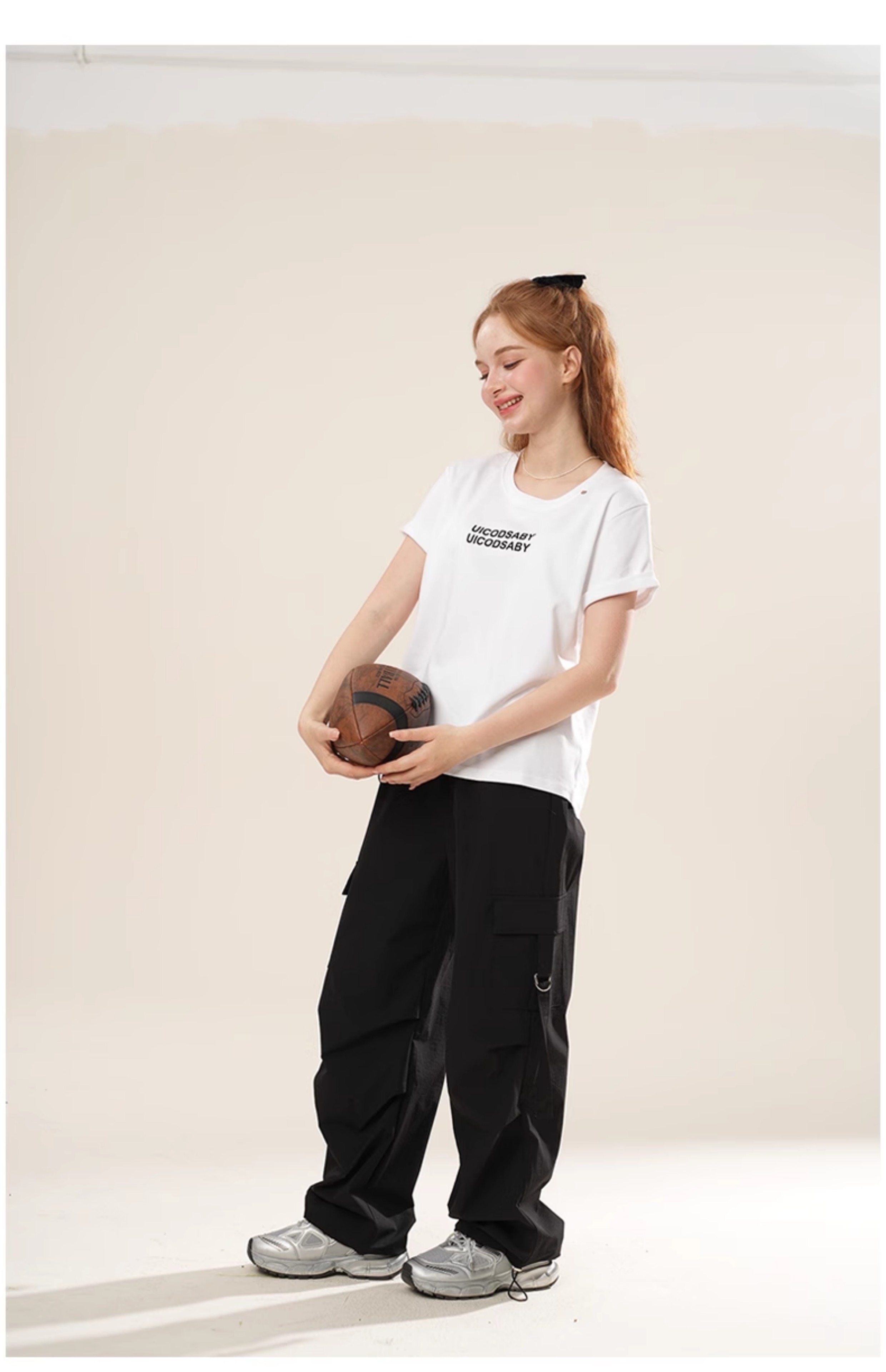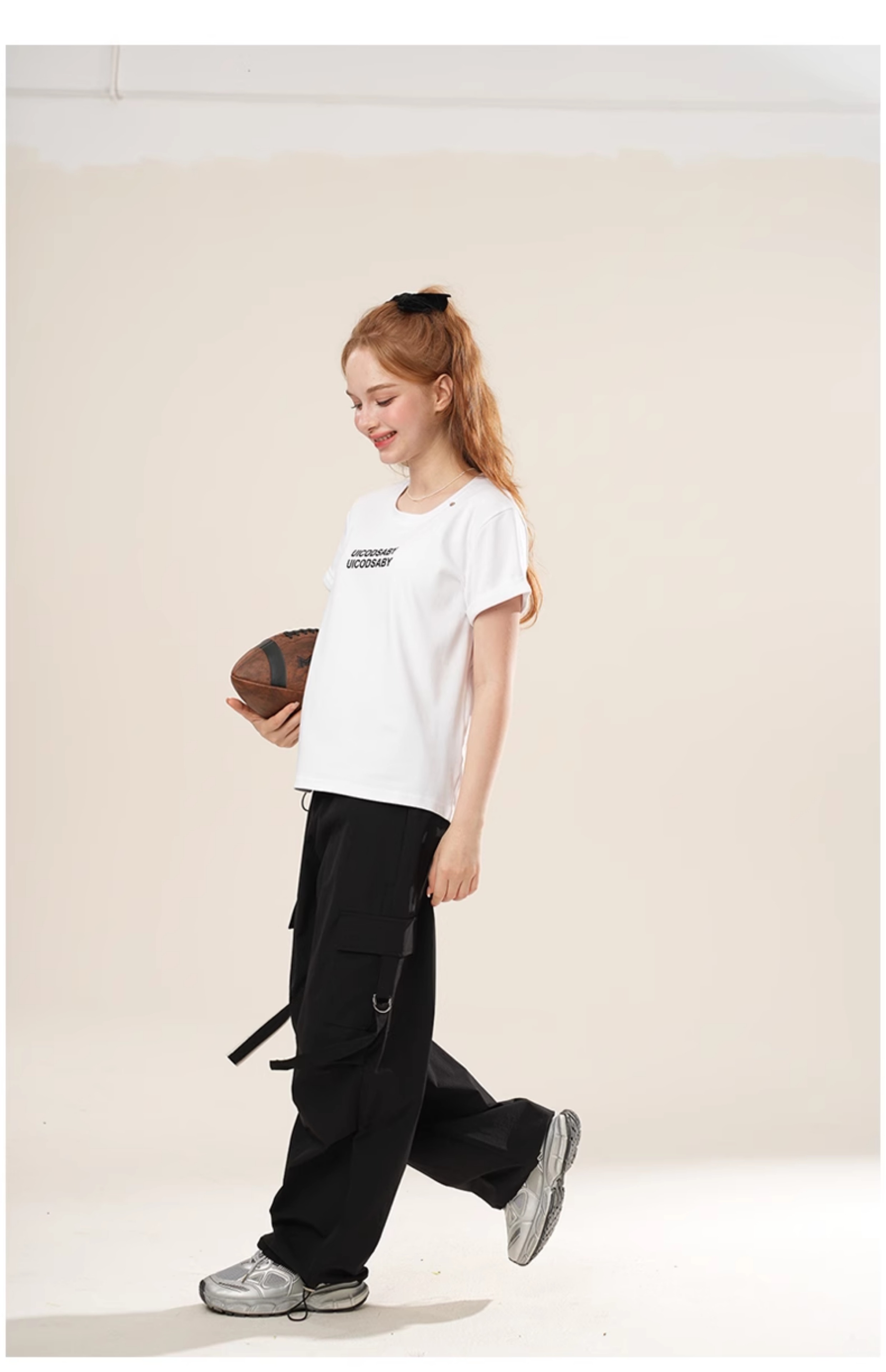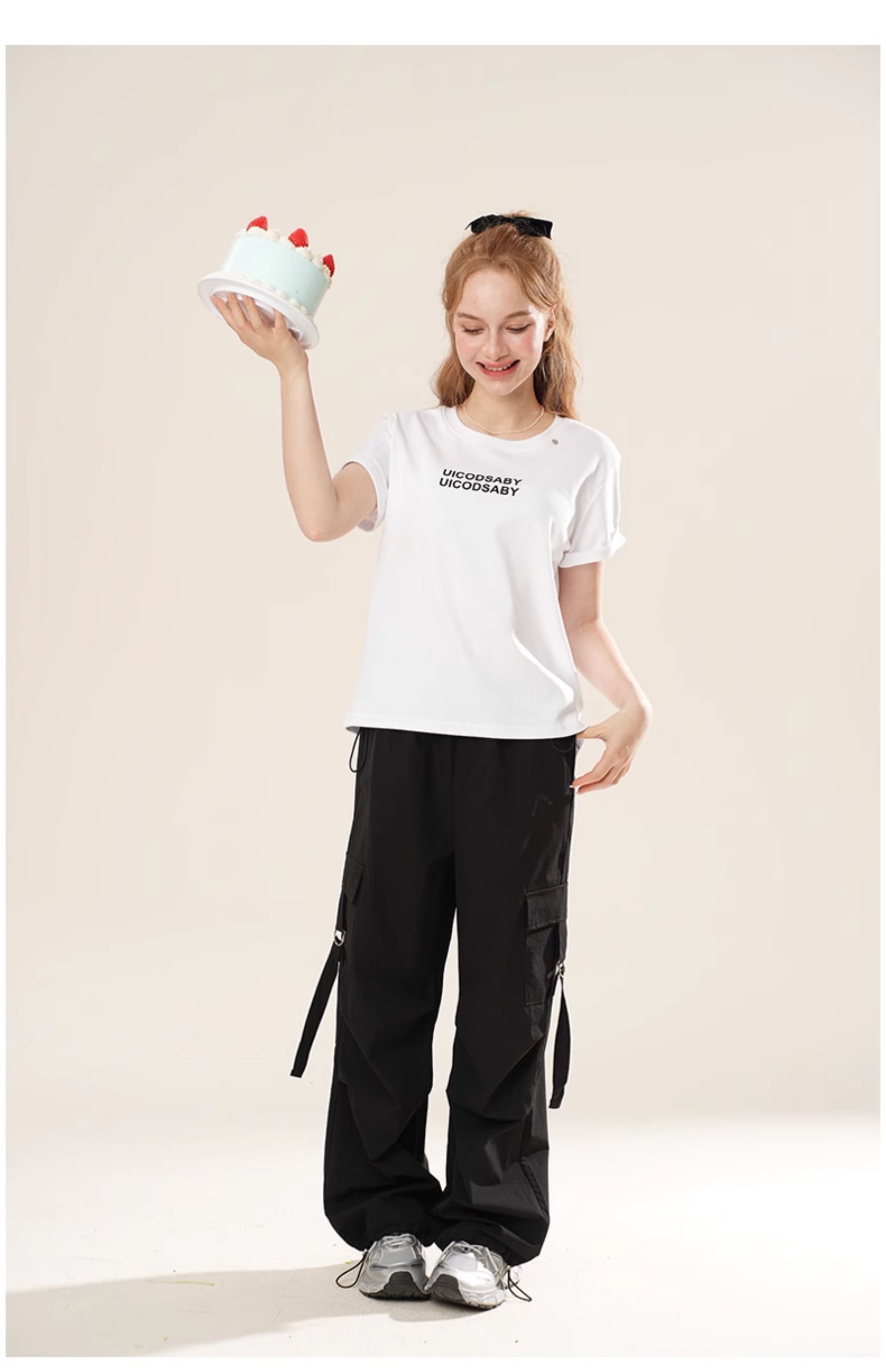 女装圆领植绒印花金属片装饰短袖T恤-5691T5221018