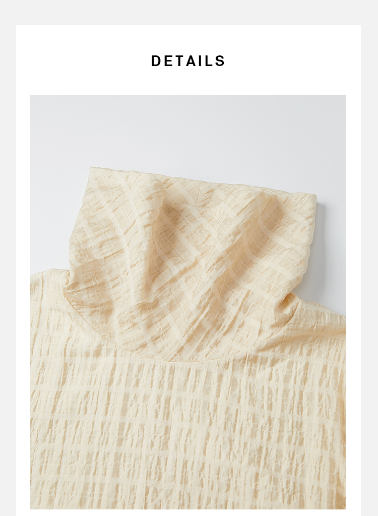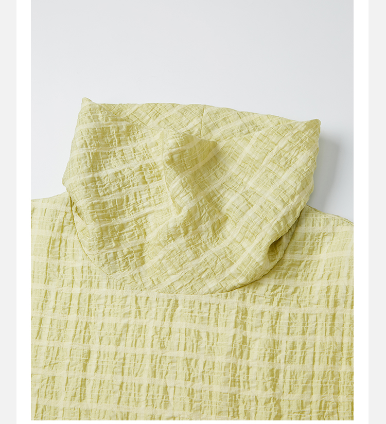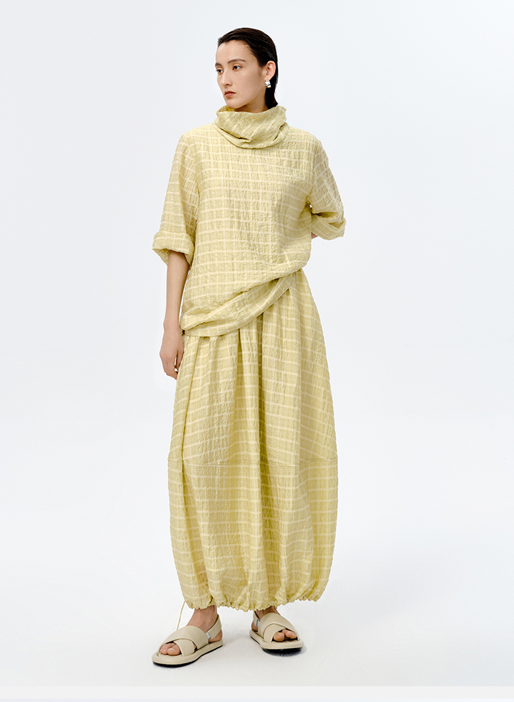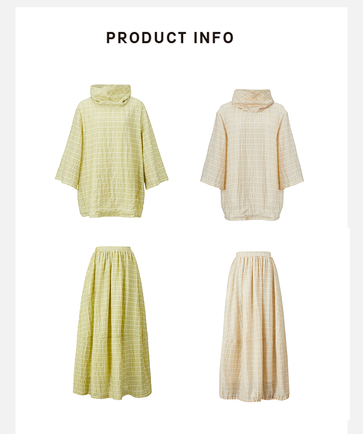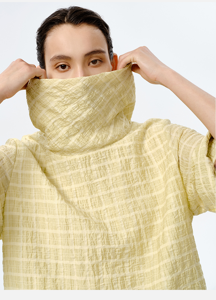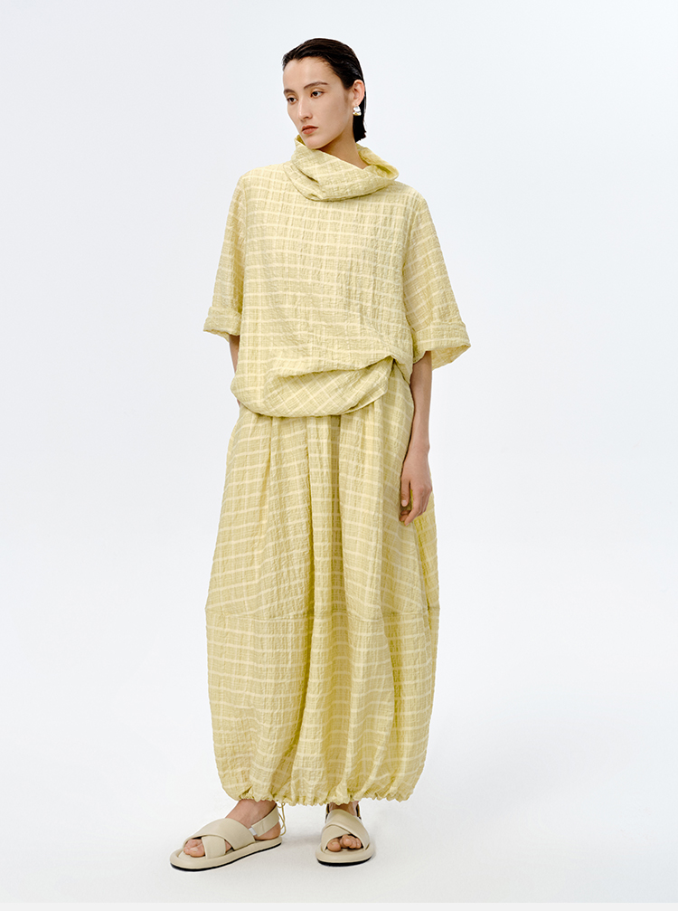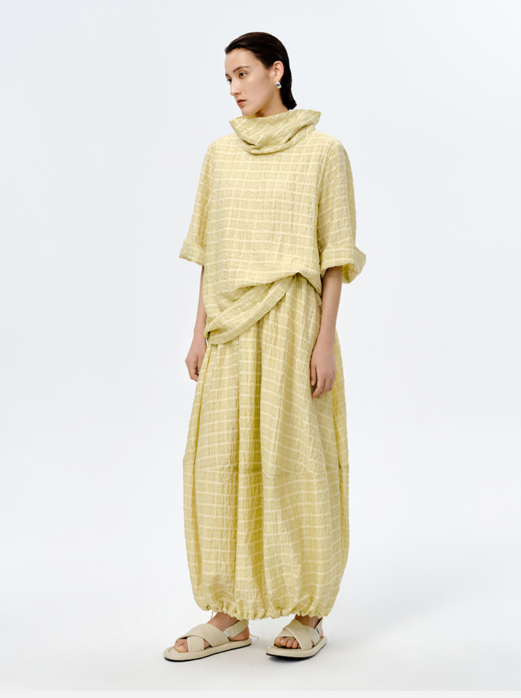 HIDEMI堆堆领色织格纹大廓形超薄清透茧型套装