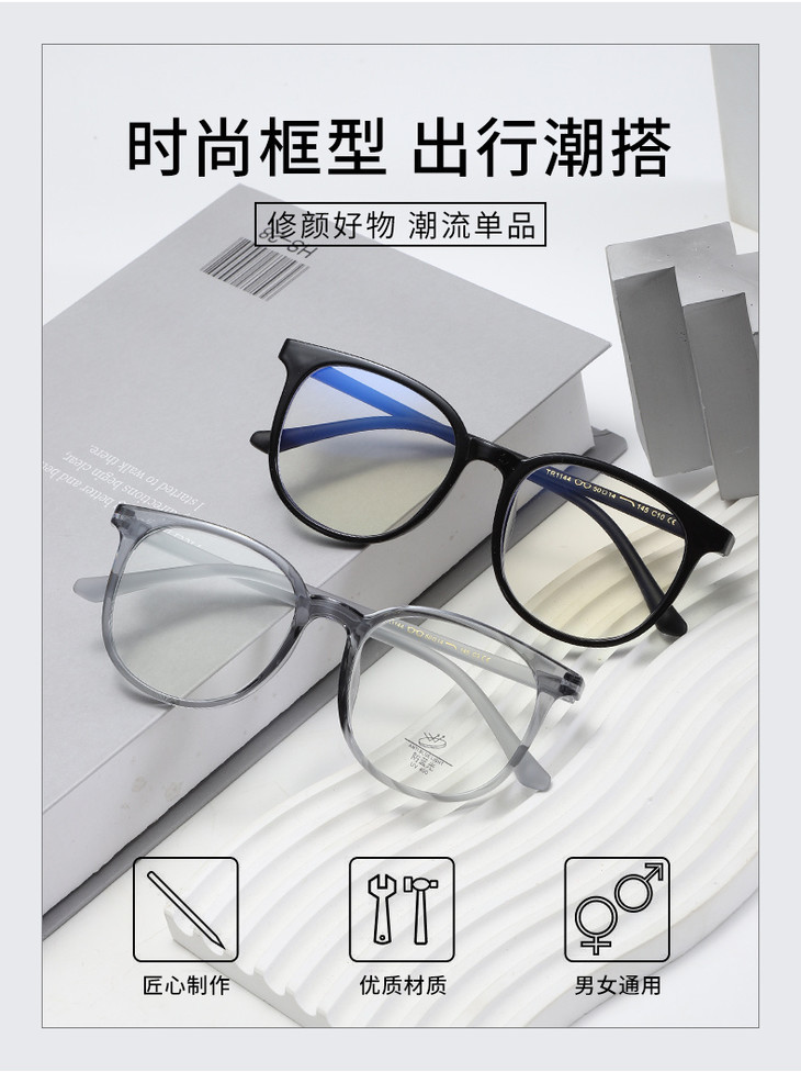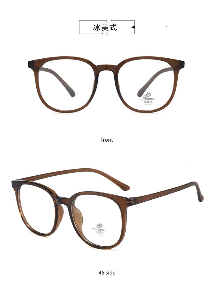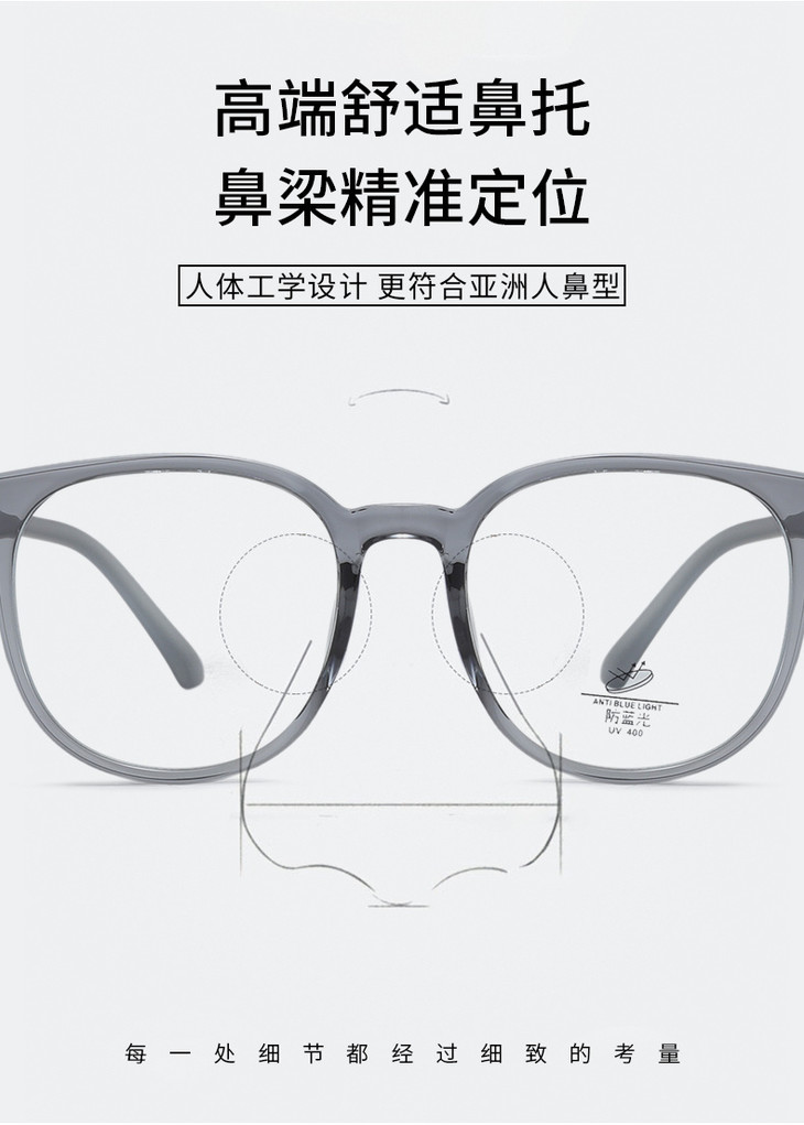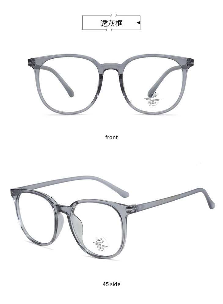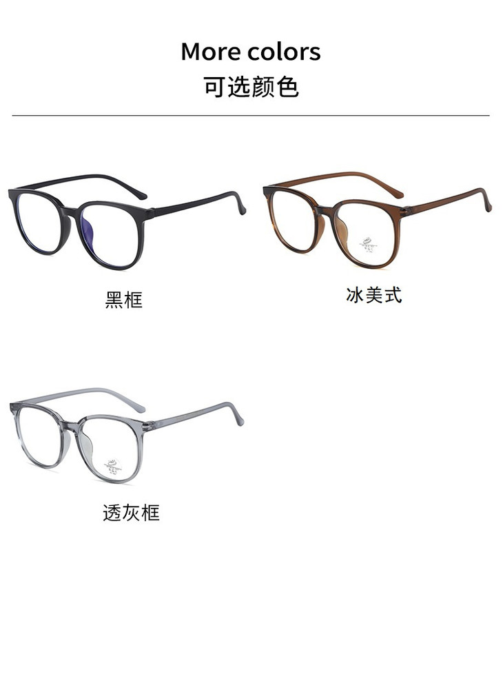 【产品信息】 产品颜色: 黑框、透灰框、冰美式 材质: TR镜框 + 高清树脂防蓝光镜片 特性: 有效阻隔有害蓝光,保护眼睛健康