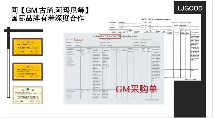 国际一线大牌的眼镜代工厂! cctv推荐品牌! 中国企业家:丝路戈壁行108公里徒步大赛官方指定唯一眼镜品牌商 世界跳水冠军连婕代言! 国内线下门600多家! 是一家实力雄厚的眼镜品牌 自有工厂! 骊佳LJGOOD是千里眼镜有限公司旗下品牌。 千里眼镜有限公司为为众多国际大牌眼镜代工厂! 古琦 阿玛尼. GM等品牌都有深度合作! 拥有成熟的设计研发团队.先进的生产线.在国内也是获得诸多荣誉.畅销各大商超卖场!!