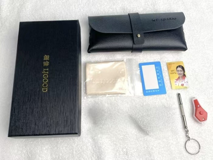 发货物料详情实拍 骊佳时尚大框防蓝光护目镜1144 包装:品牌包装盒,品牌眼镜皮盒,镜布,螺丝刀,蓝光测试卡,蓝光测试灯