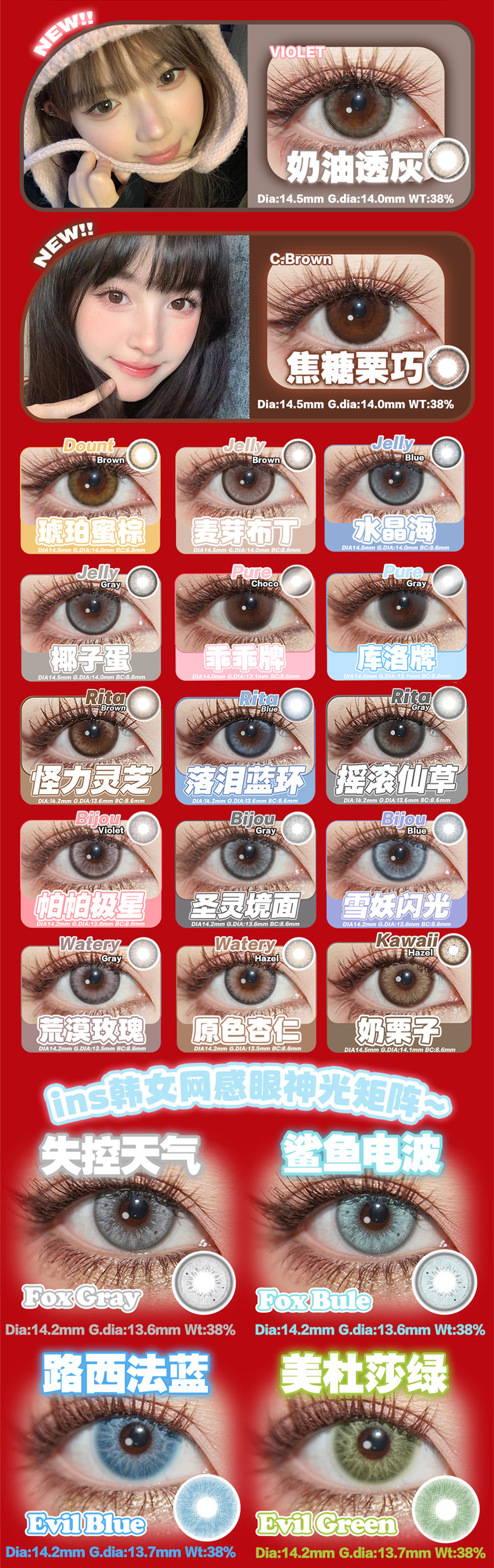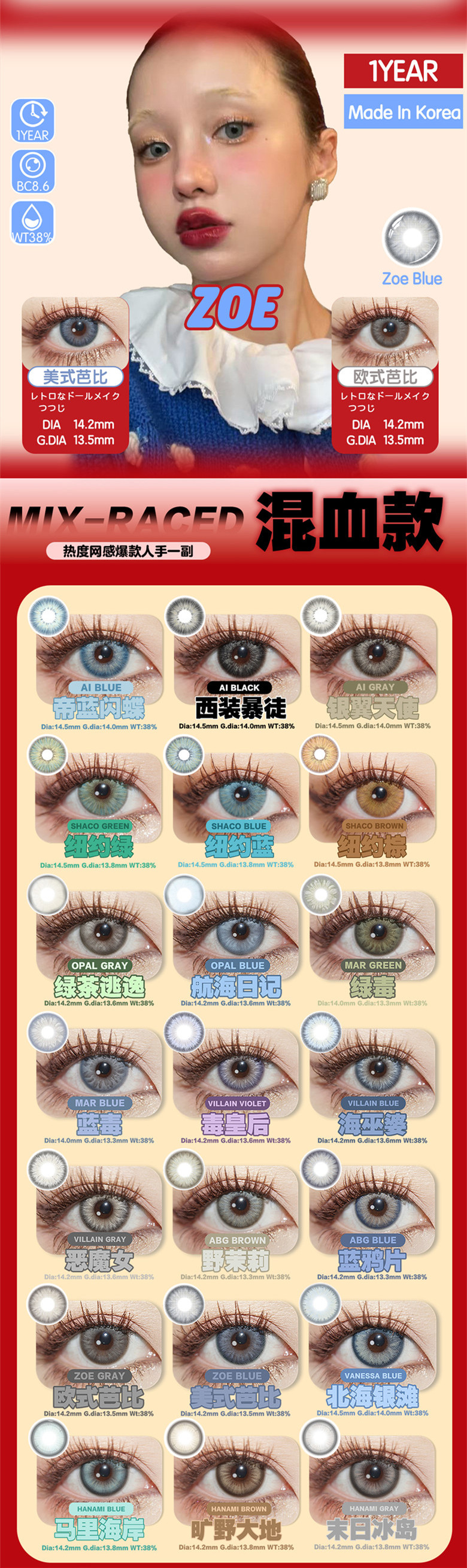 韩产主打混血年抛/半年抛混搭cococon硅水凝胶美瞳