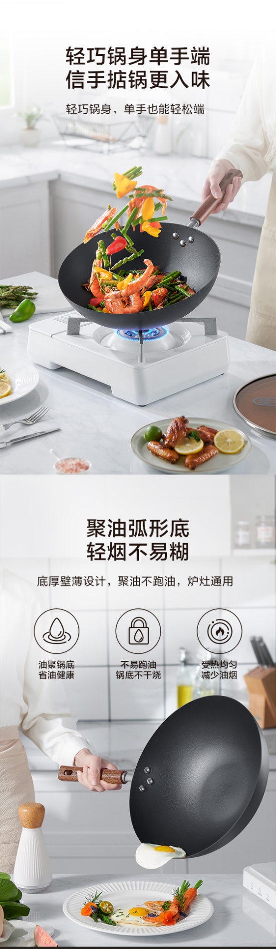 锅身轻巧 单手也能轻松端 炒菜也是轻轻松松