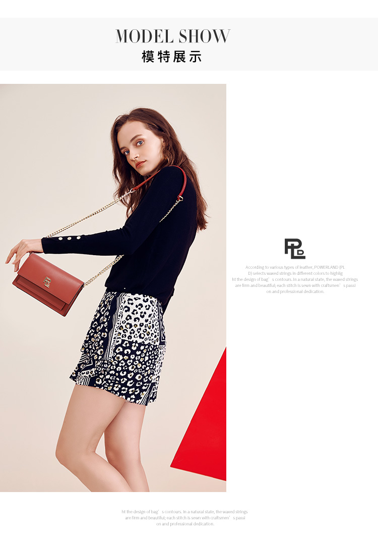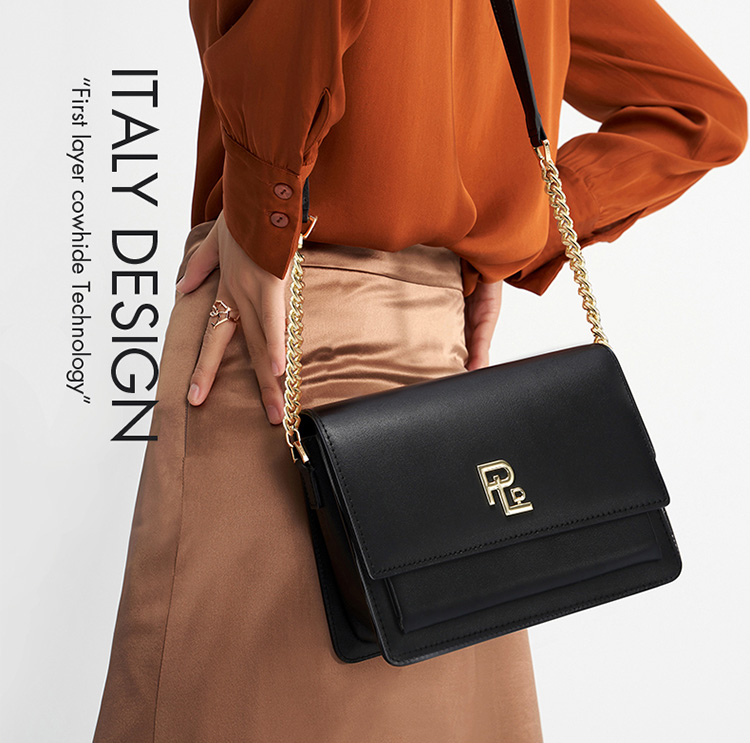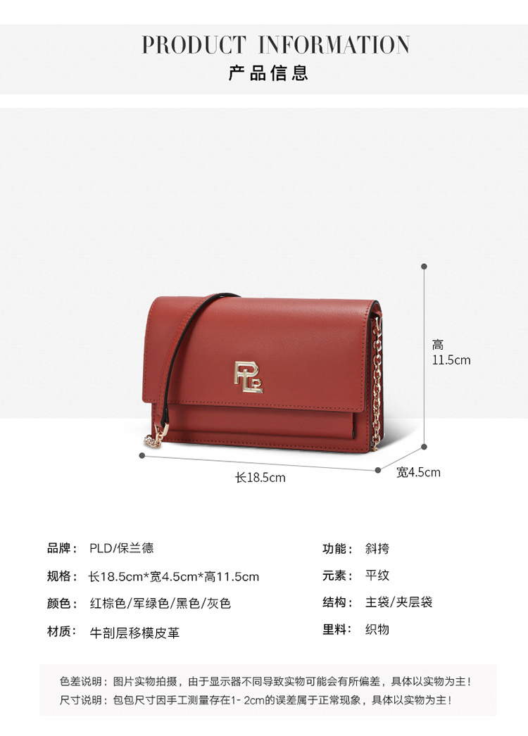 保兰德PLD东方雅奢经典系列单肩斜链条包小方包头层牛皮通勤必备女包