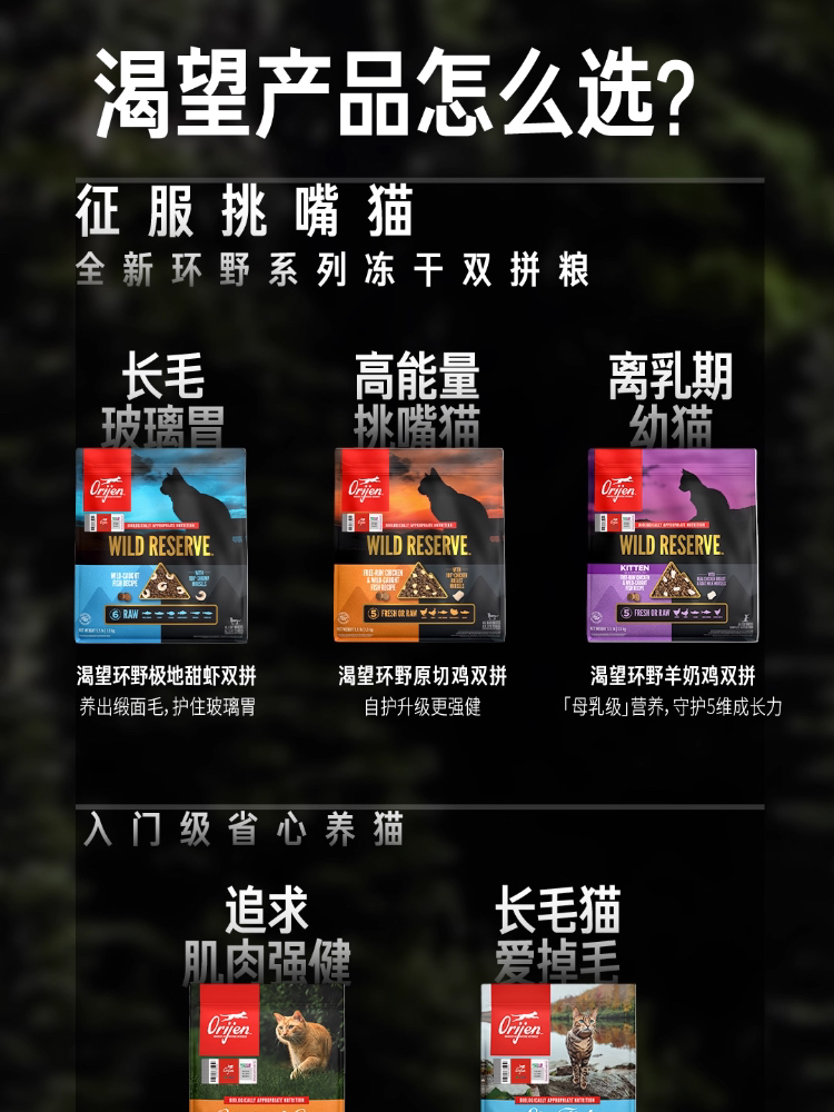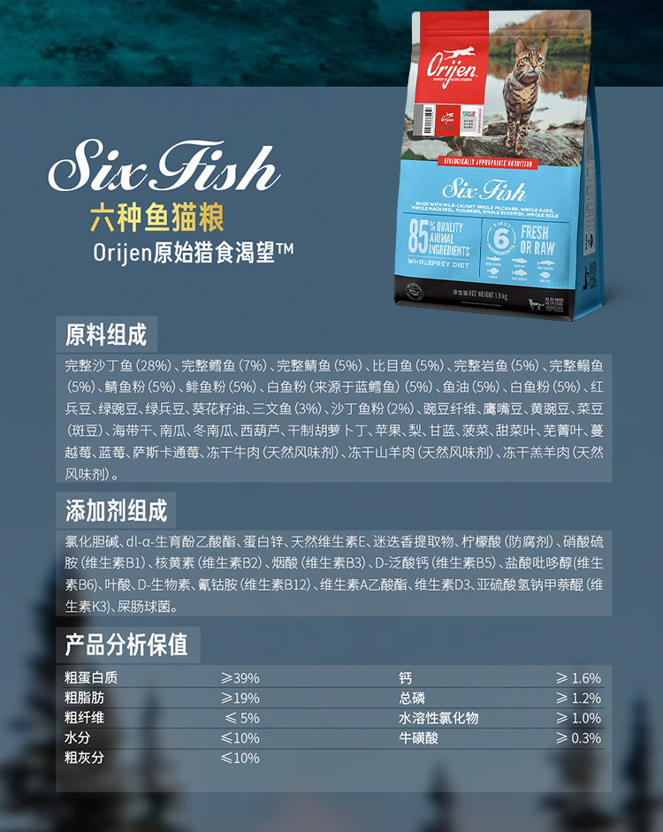 Orijen渴望猫粮鸡肉全阶段猫粮 六种鱼猫粮 无谷配方 (预售三天)