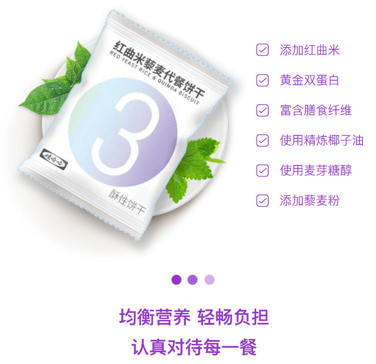 3. 购买红曲米藜麦代餐饼干一盒送金银花蒲公英压片一盒