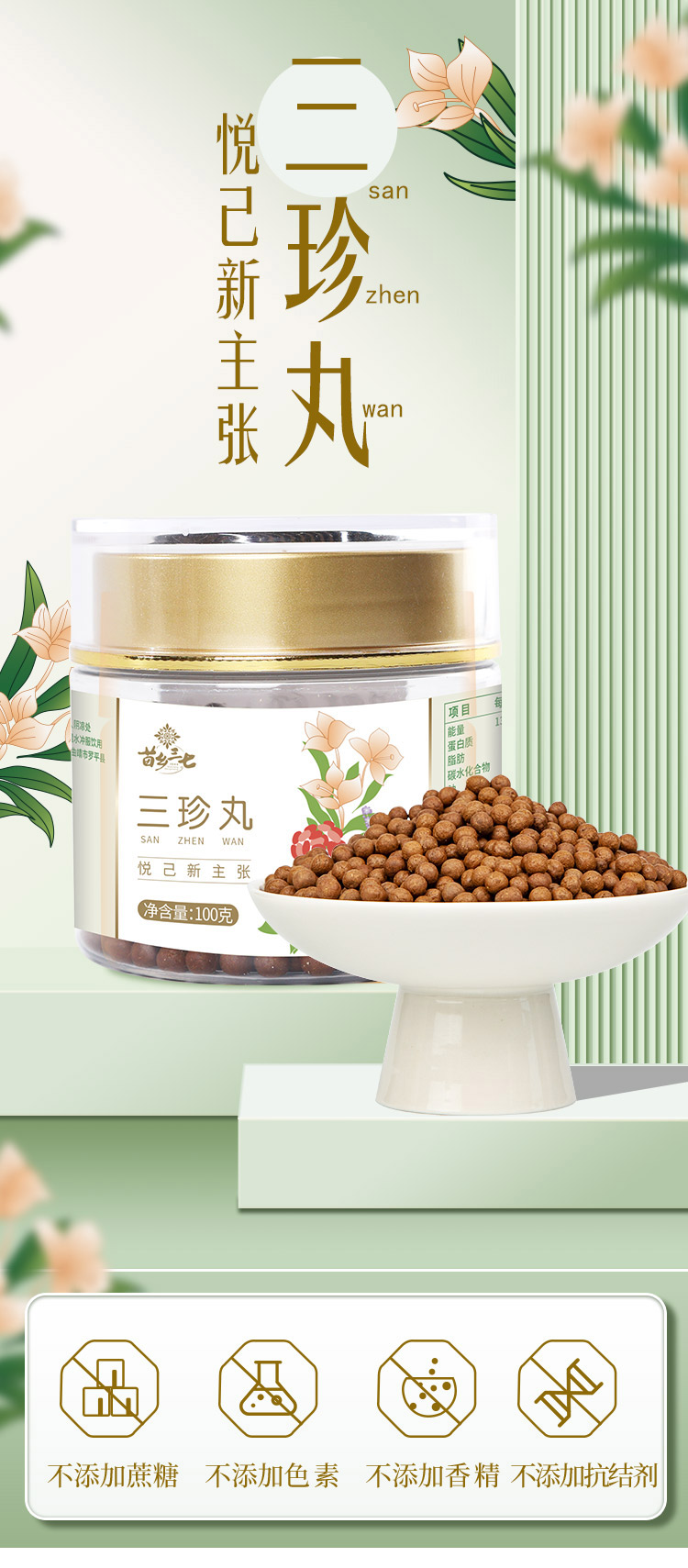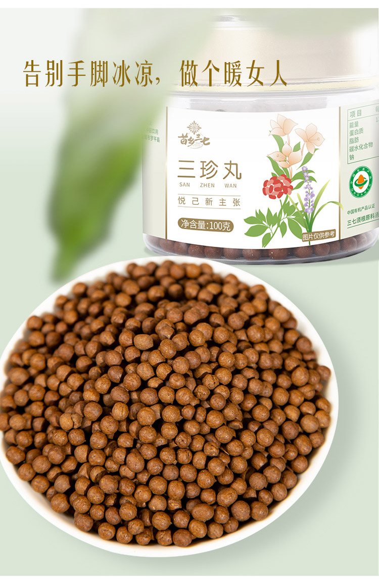 苗乡三七 三珍丸100克/瓶选用有机三七须根有机小黄姜麦冬搭配
