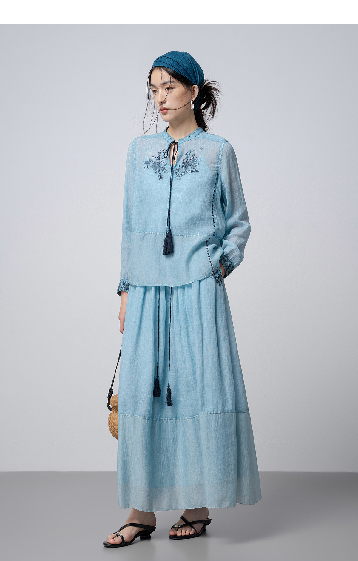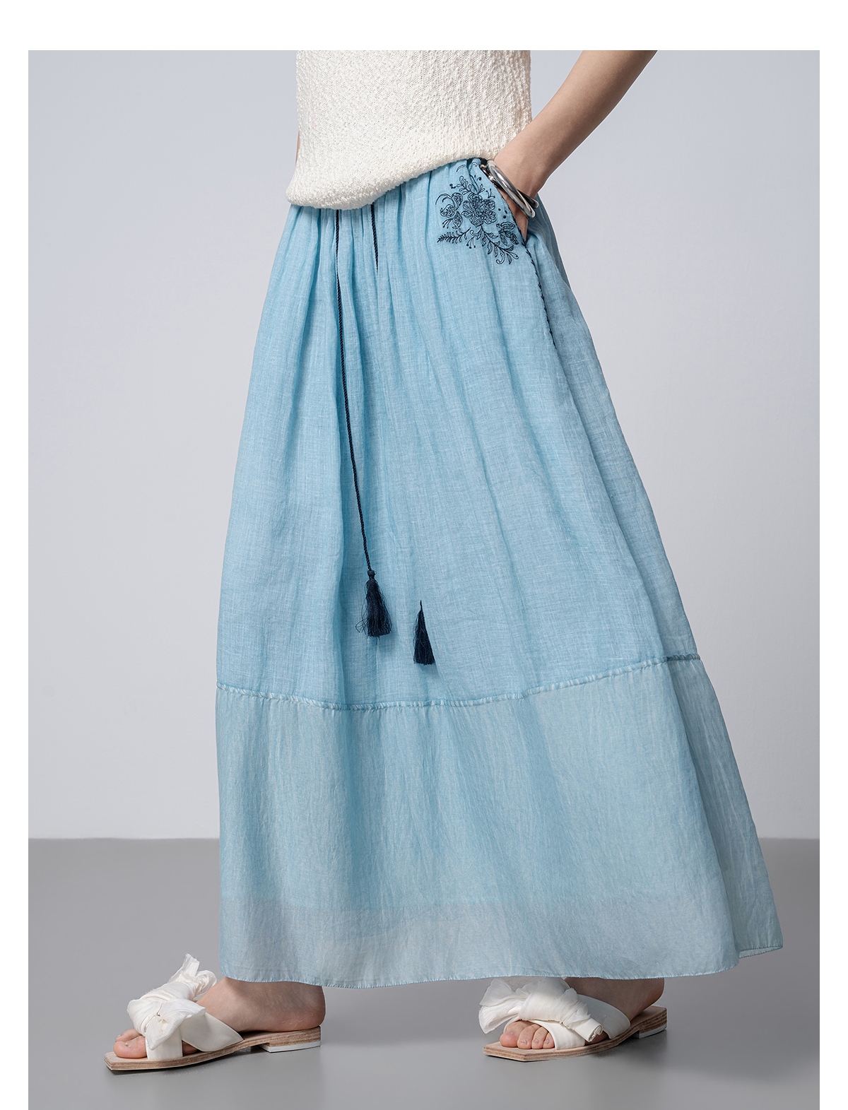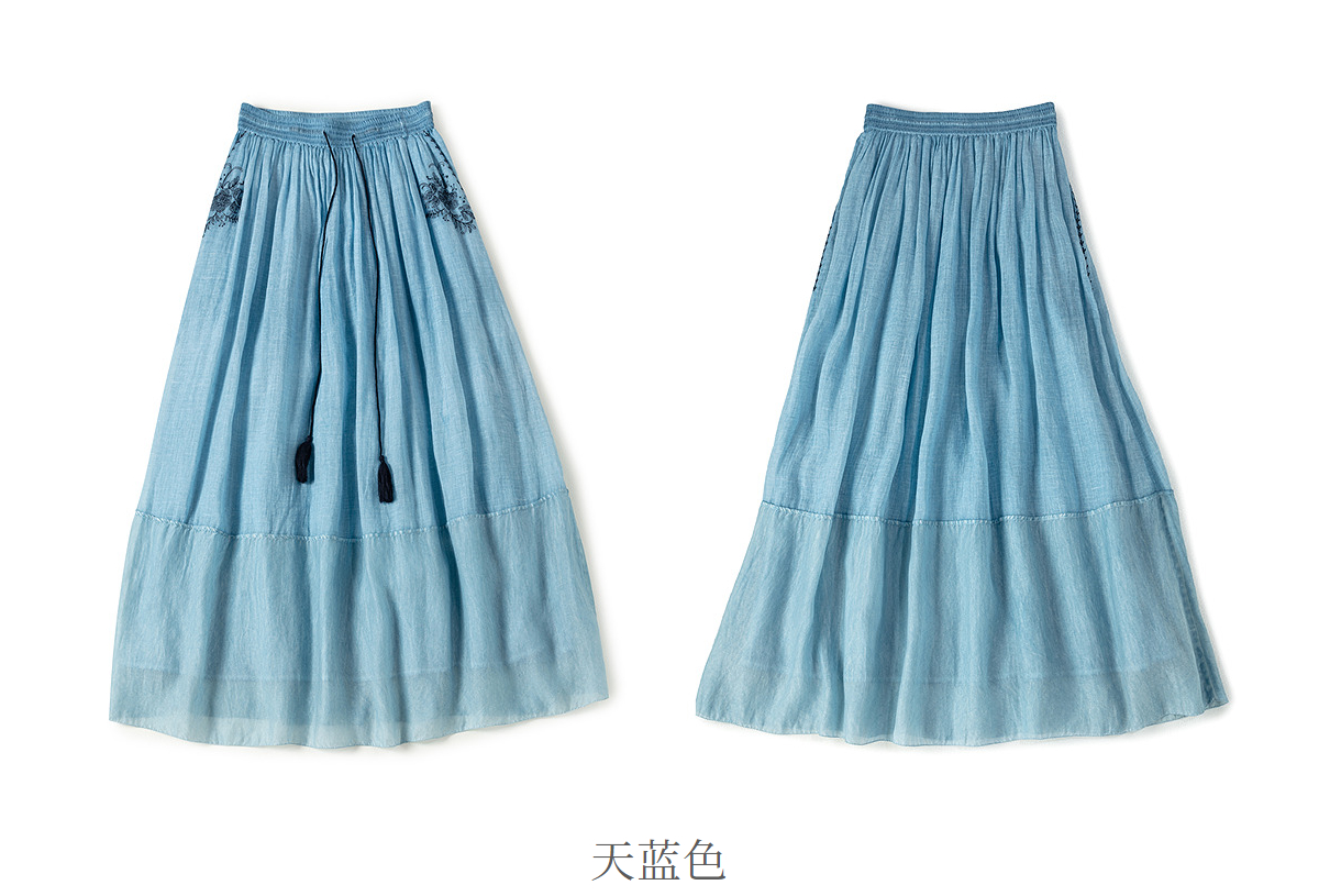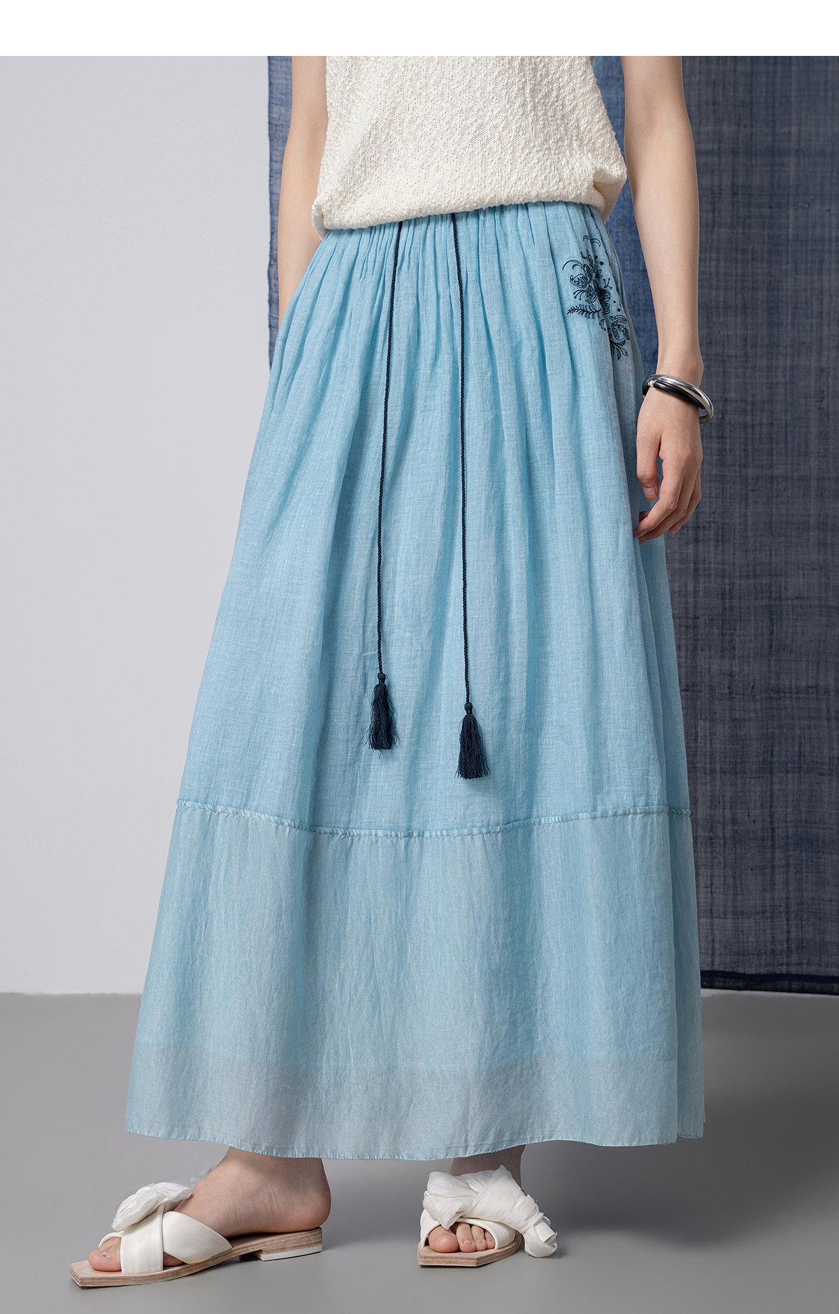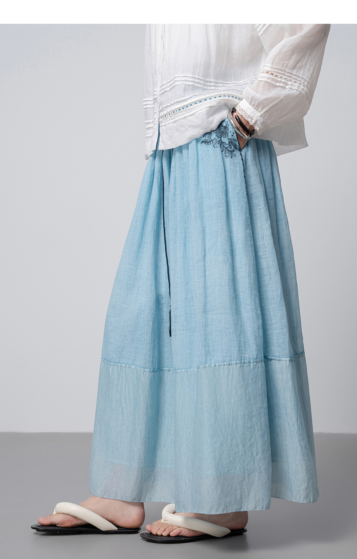 【林栖设计小店】手工炒色|苎麻天蓝色绣花肌理宽松显瘦2026春新款半身裙1961143
