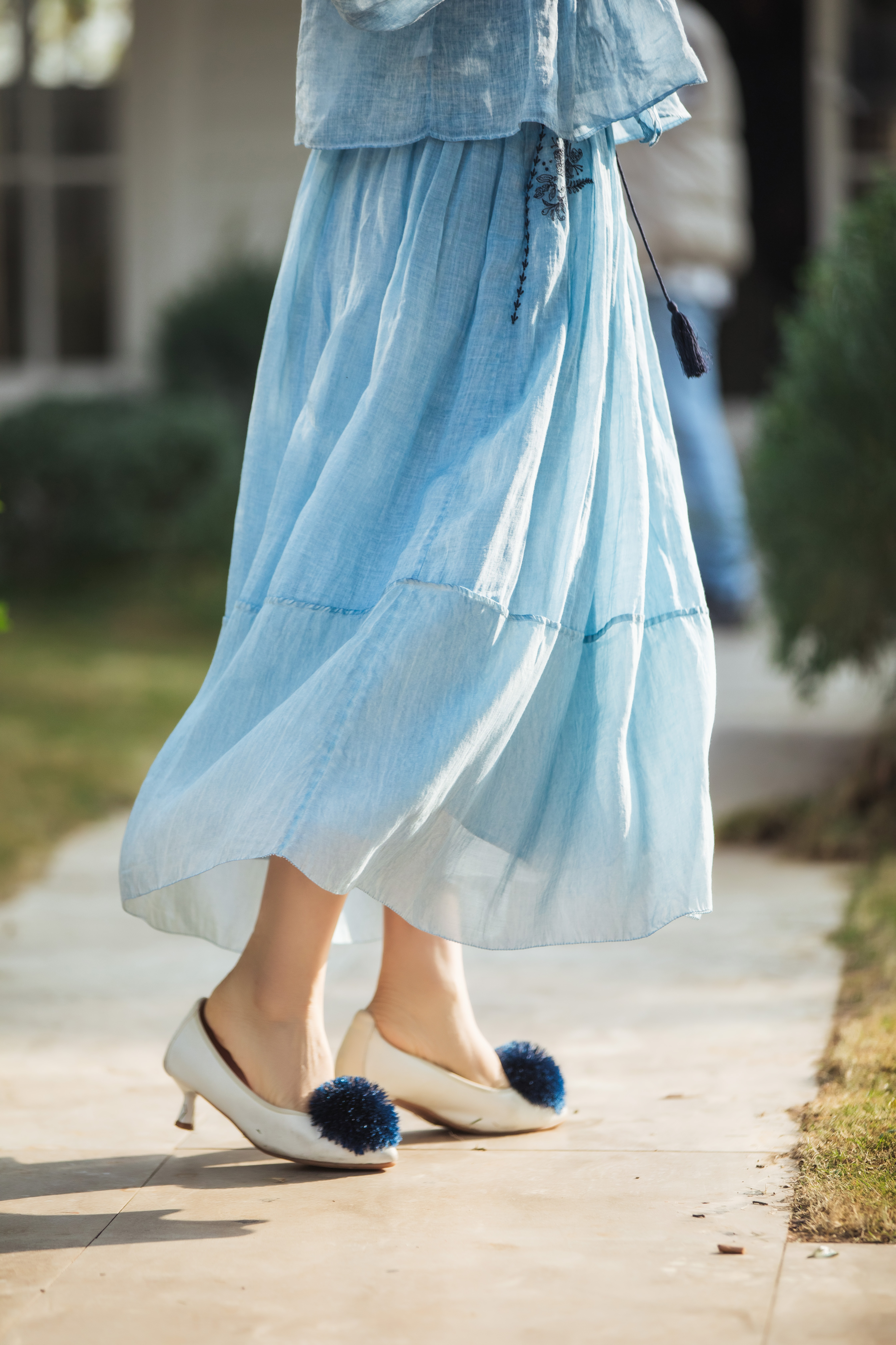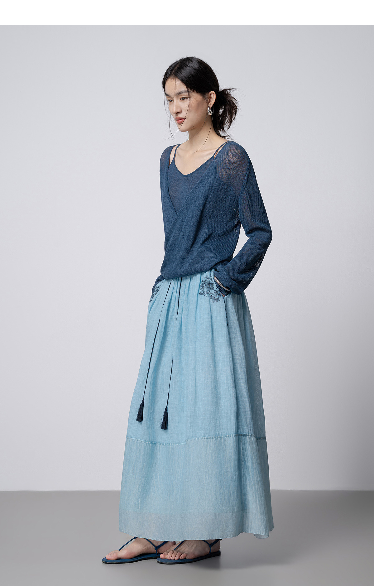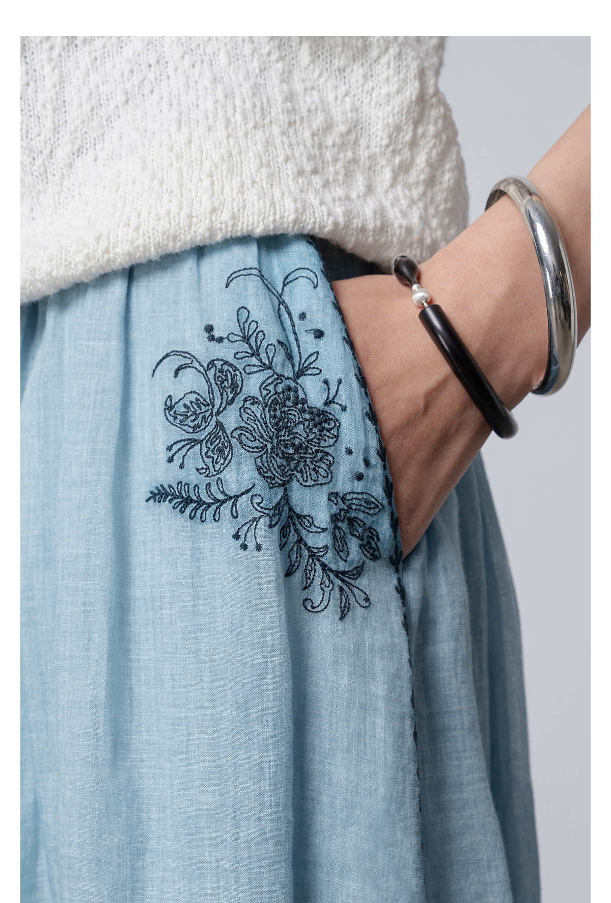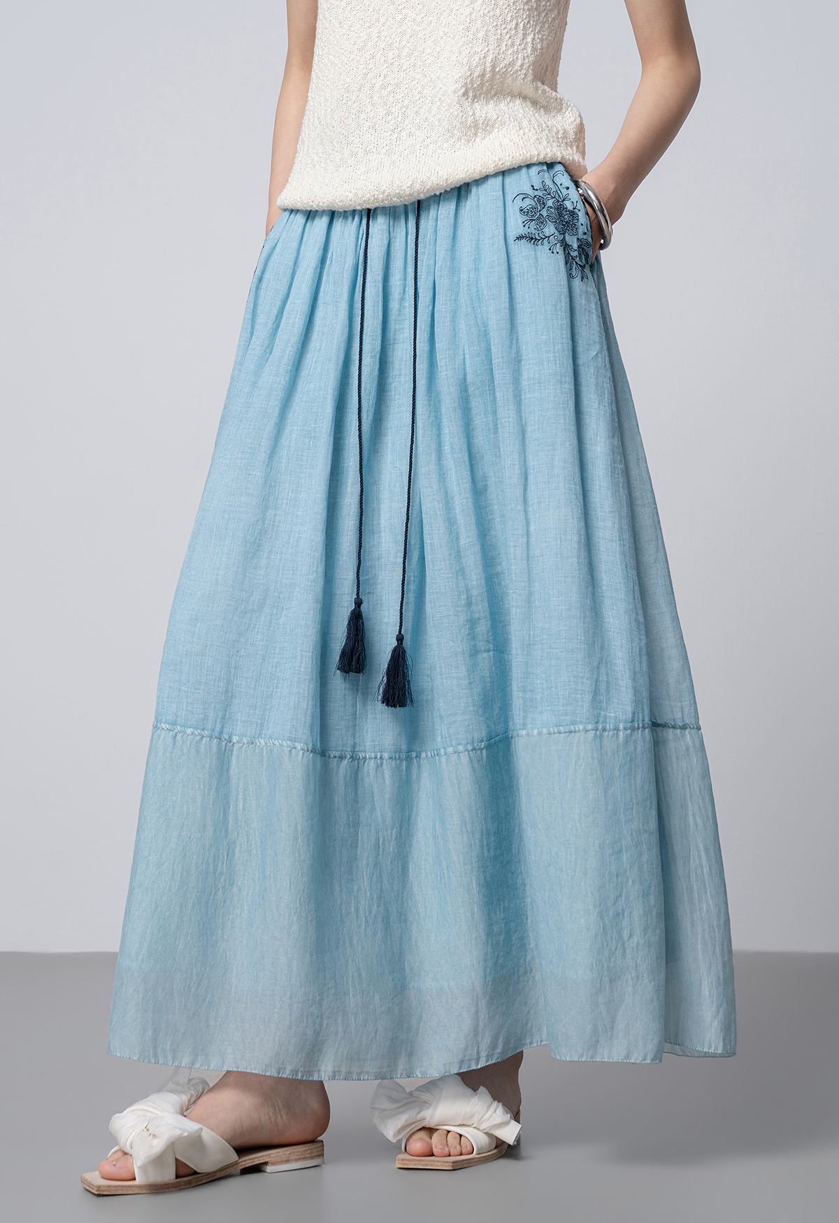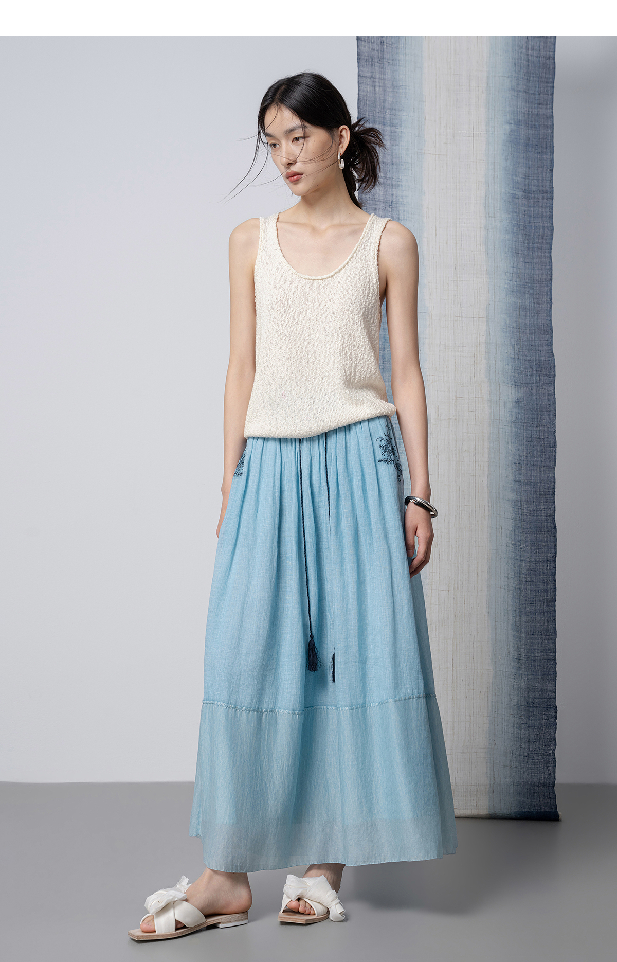 【林栖设计小店】手工炒色|苎麻天蓝色绣花肌理宽松显瘦2026春新款半身裙1961143