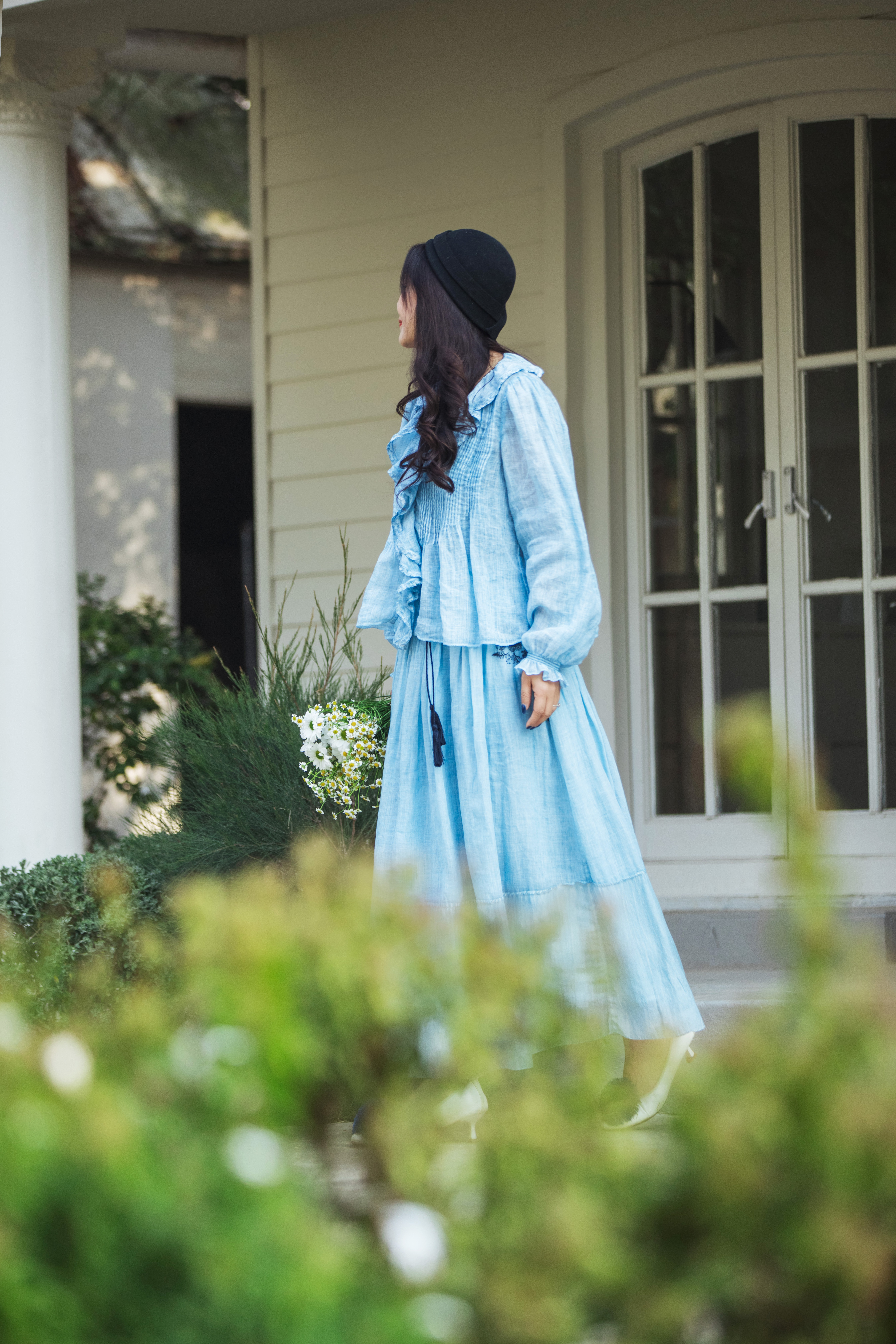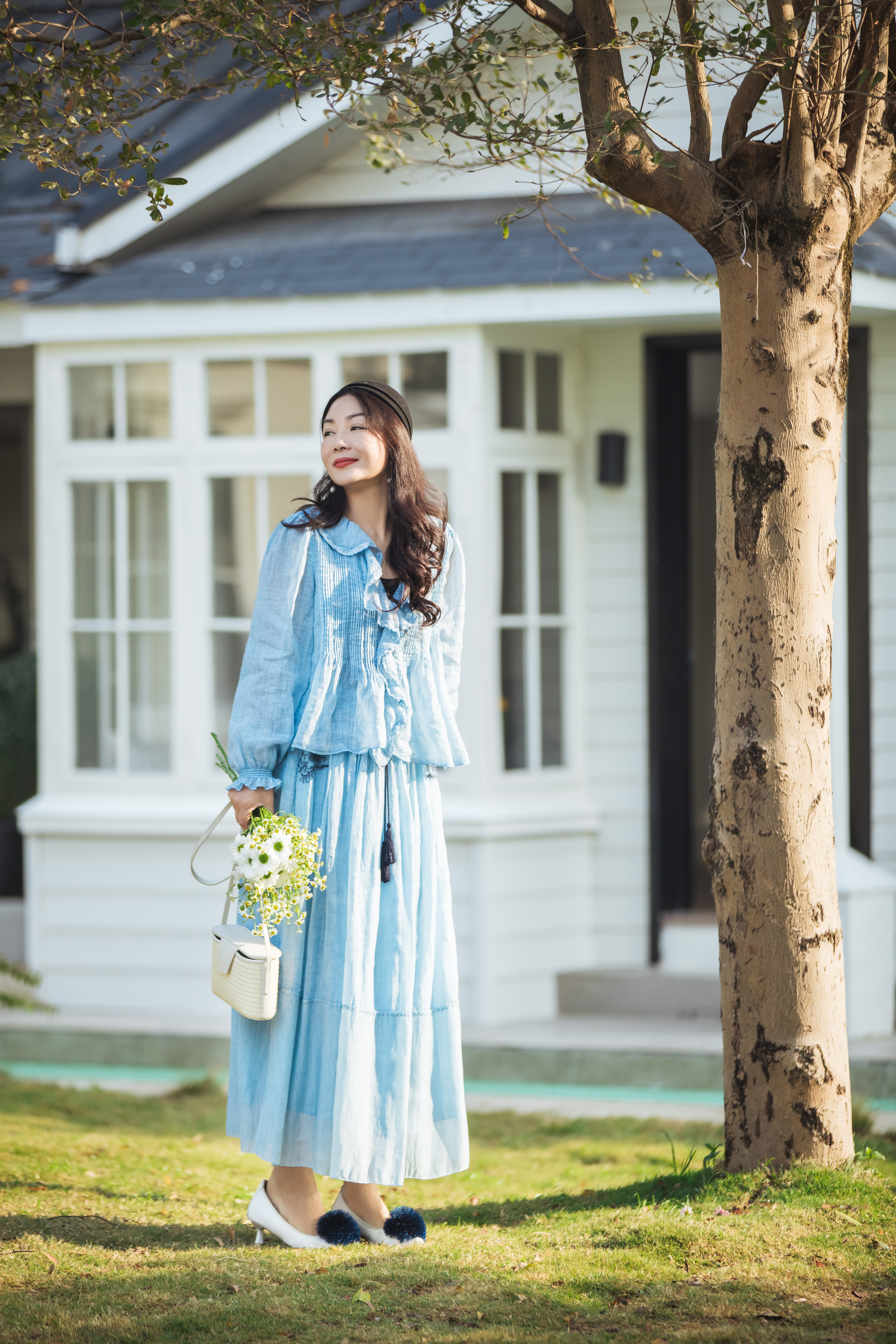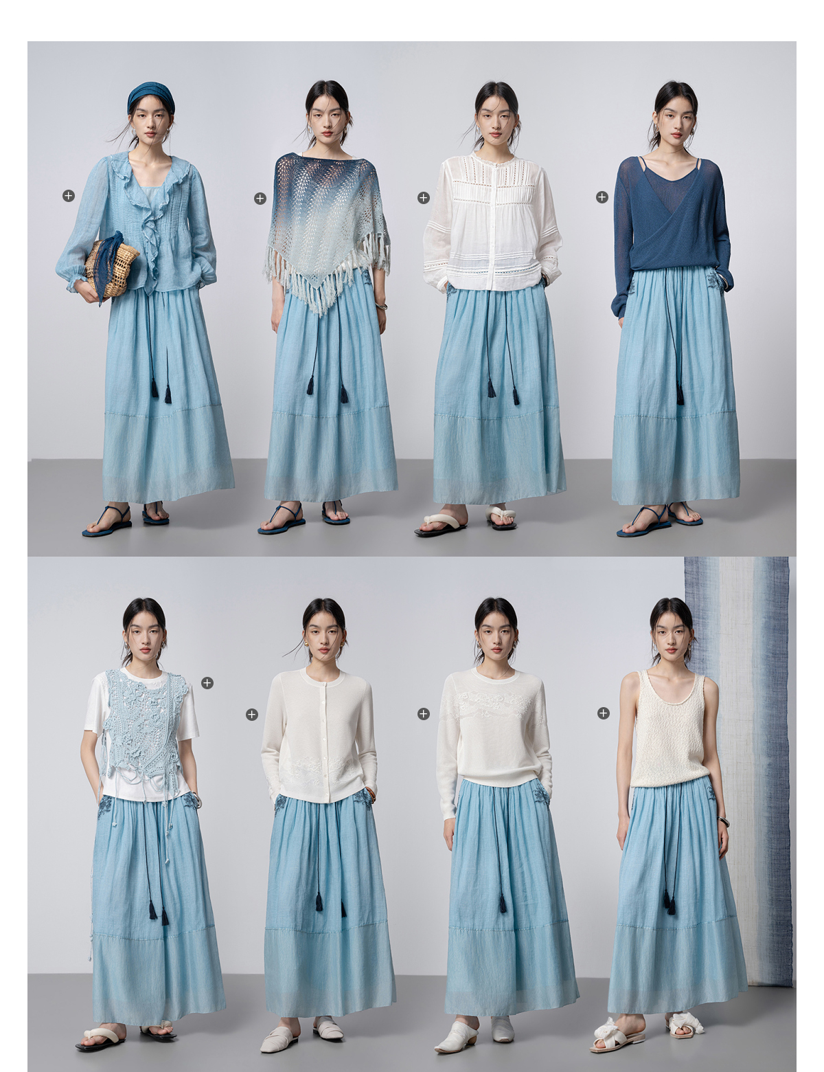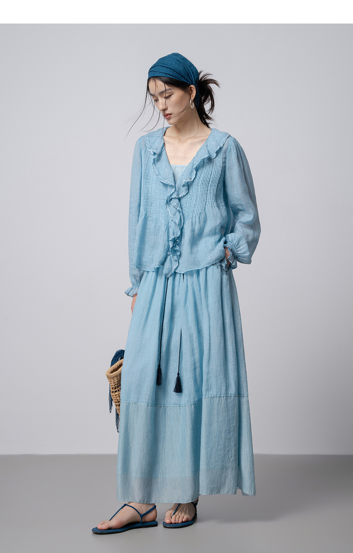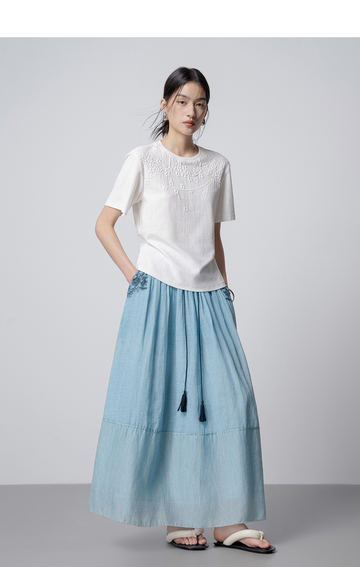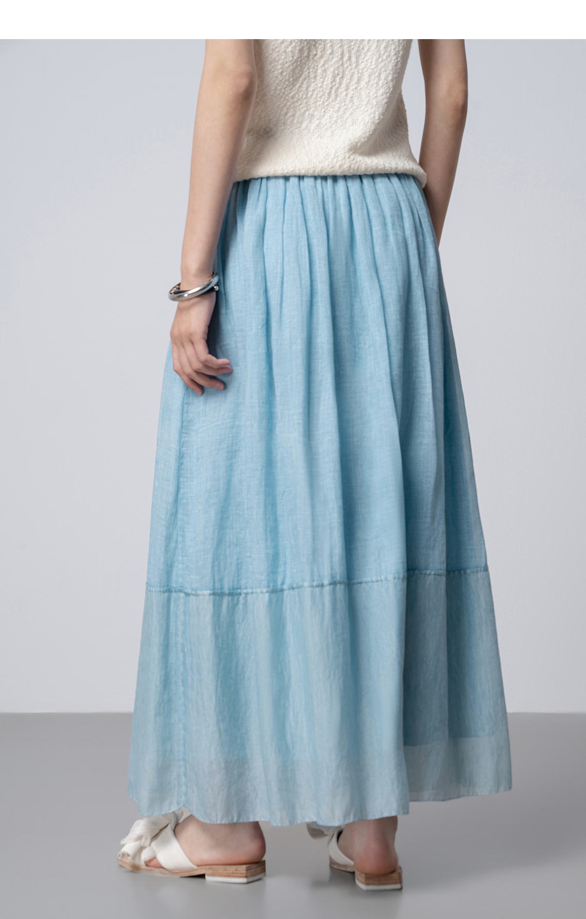 【林栖设计小店】手工炒色|苎麻天蓝色绣花肌理宽松显瘦2026春新款半身裙1961143