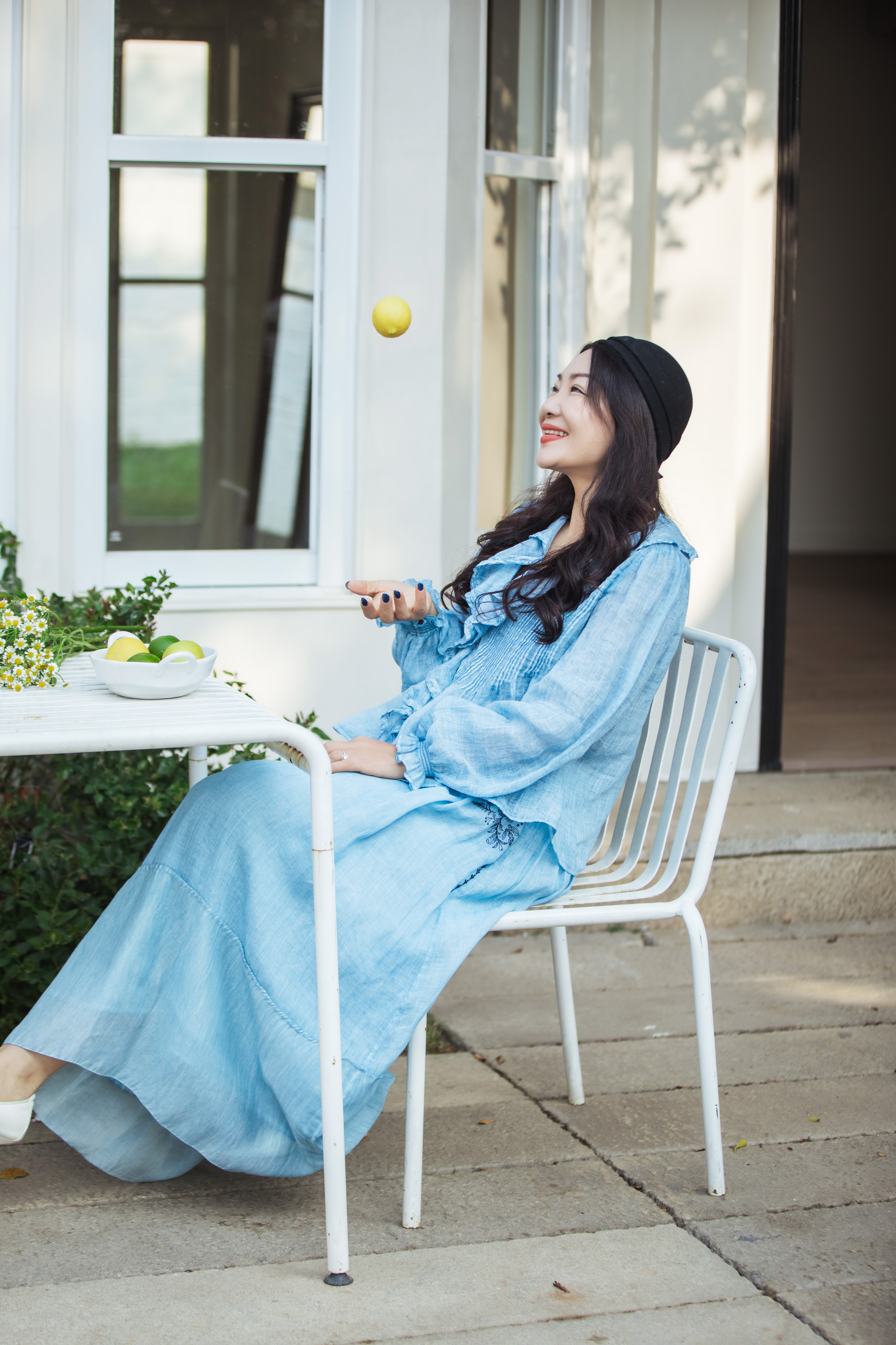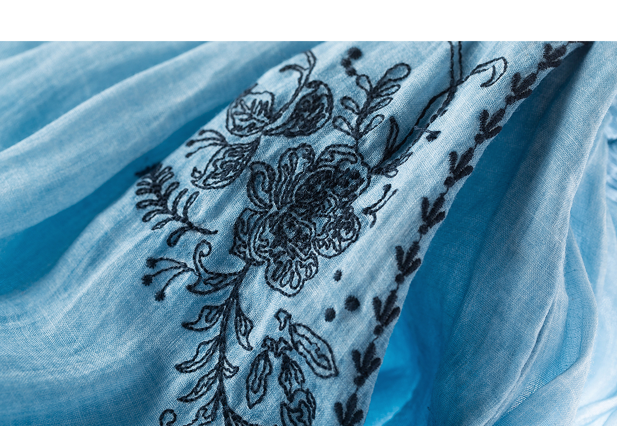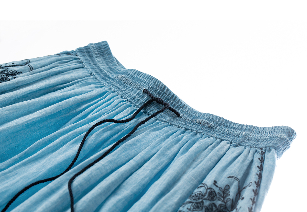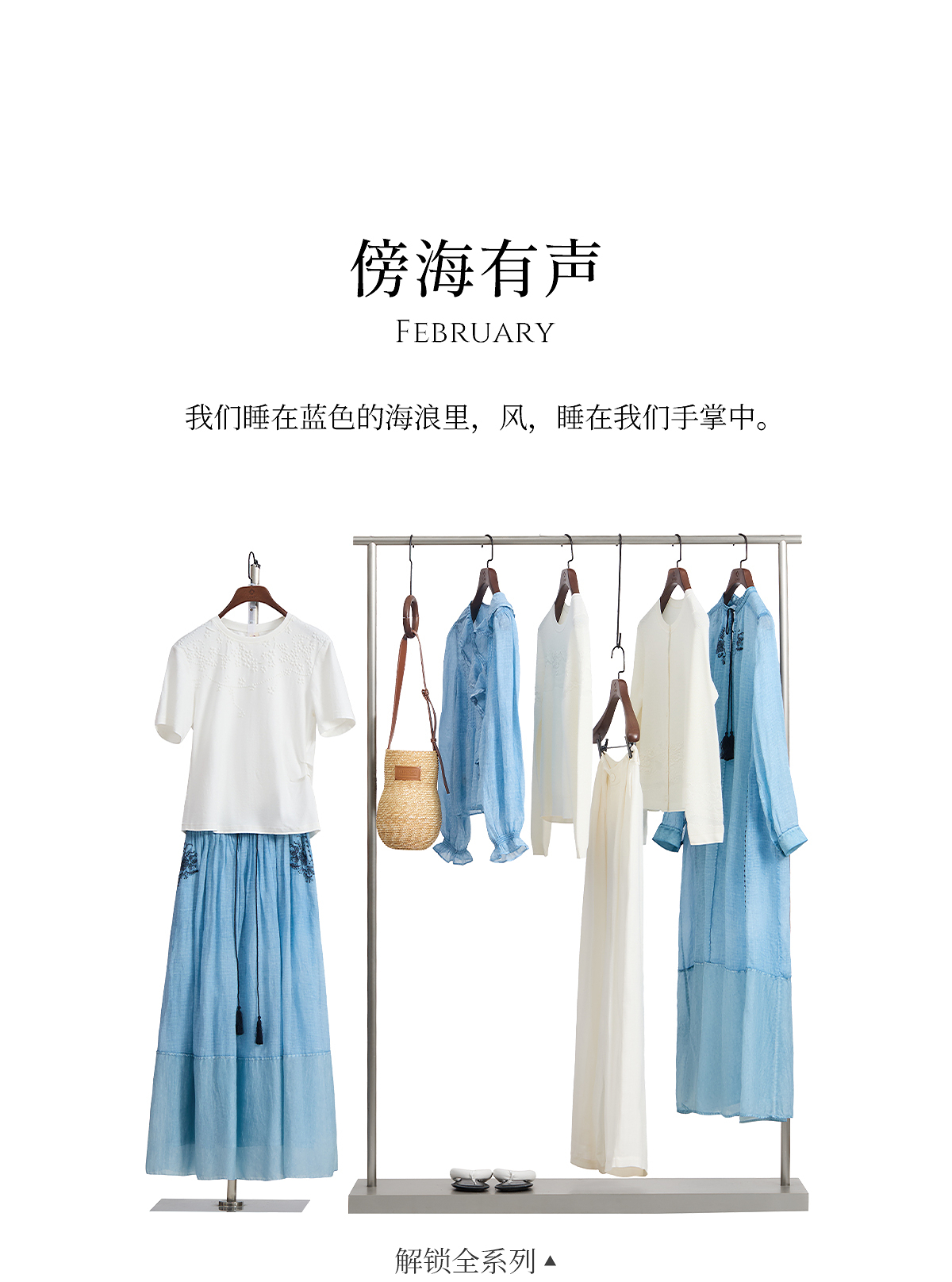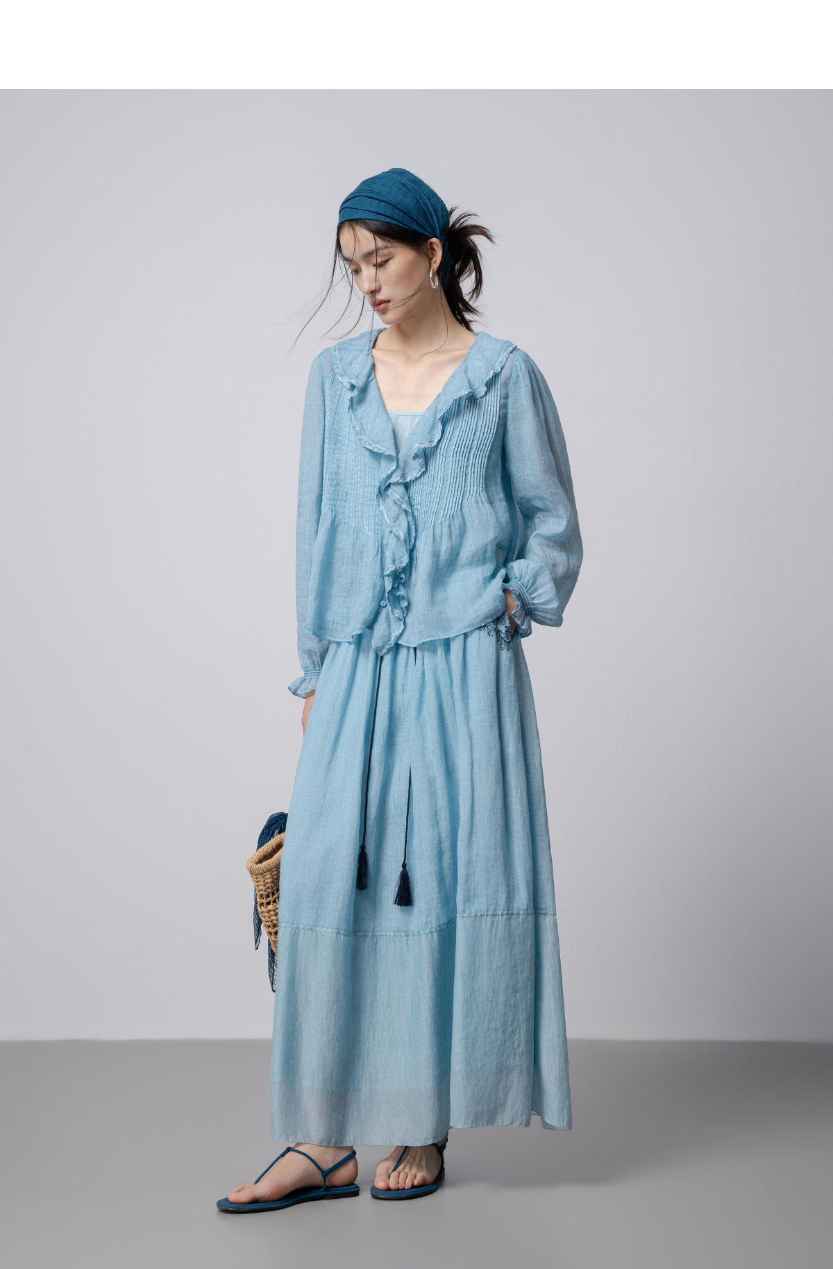 【林栖设计小店】手工炒色|苎麻天蓝色绣花肌理宽松显瘦2026春新款半身裙1961143