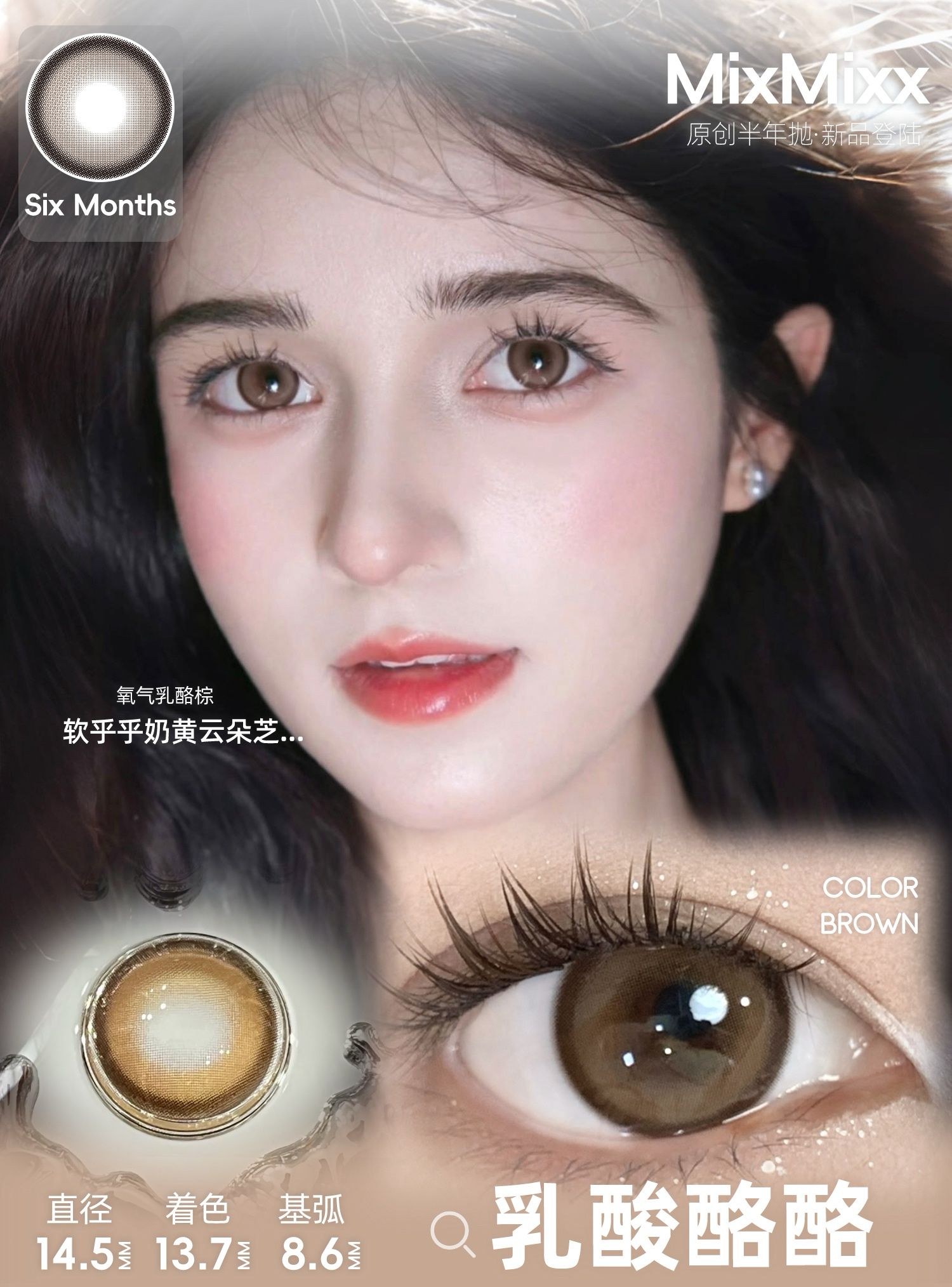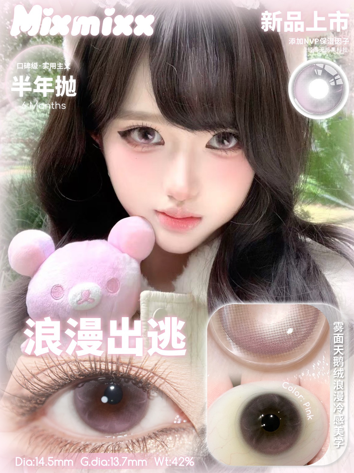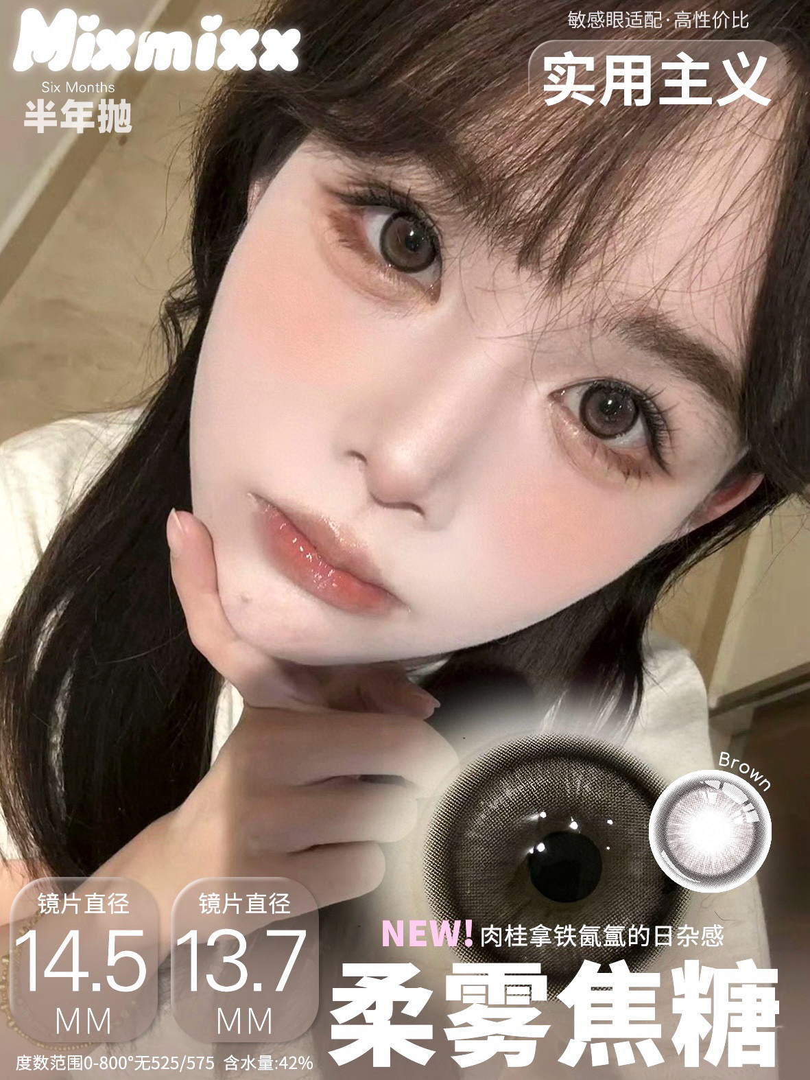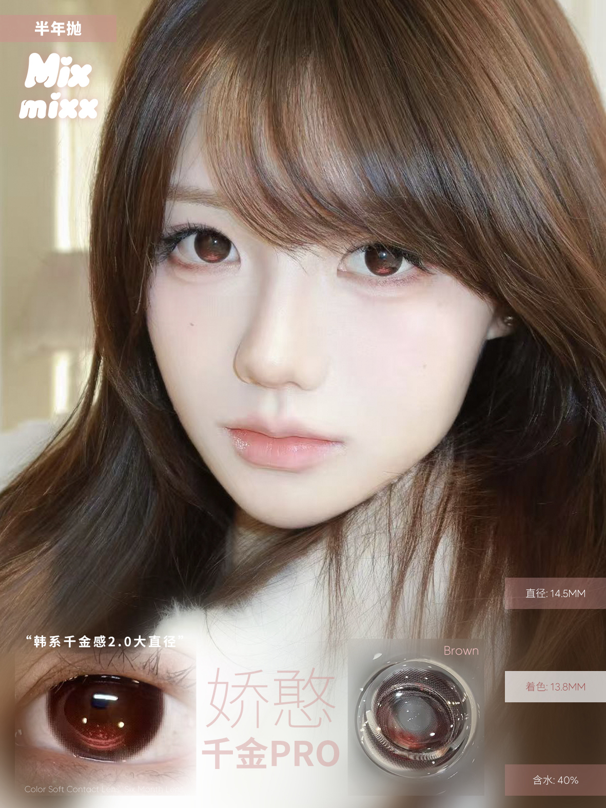 mixmixx半年抛美瞳(黑/粉/灰黑)棕