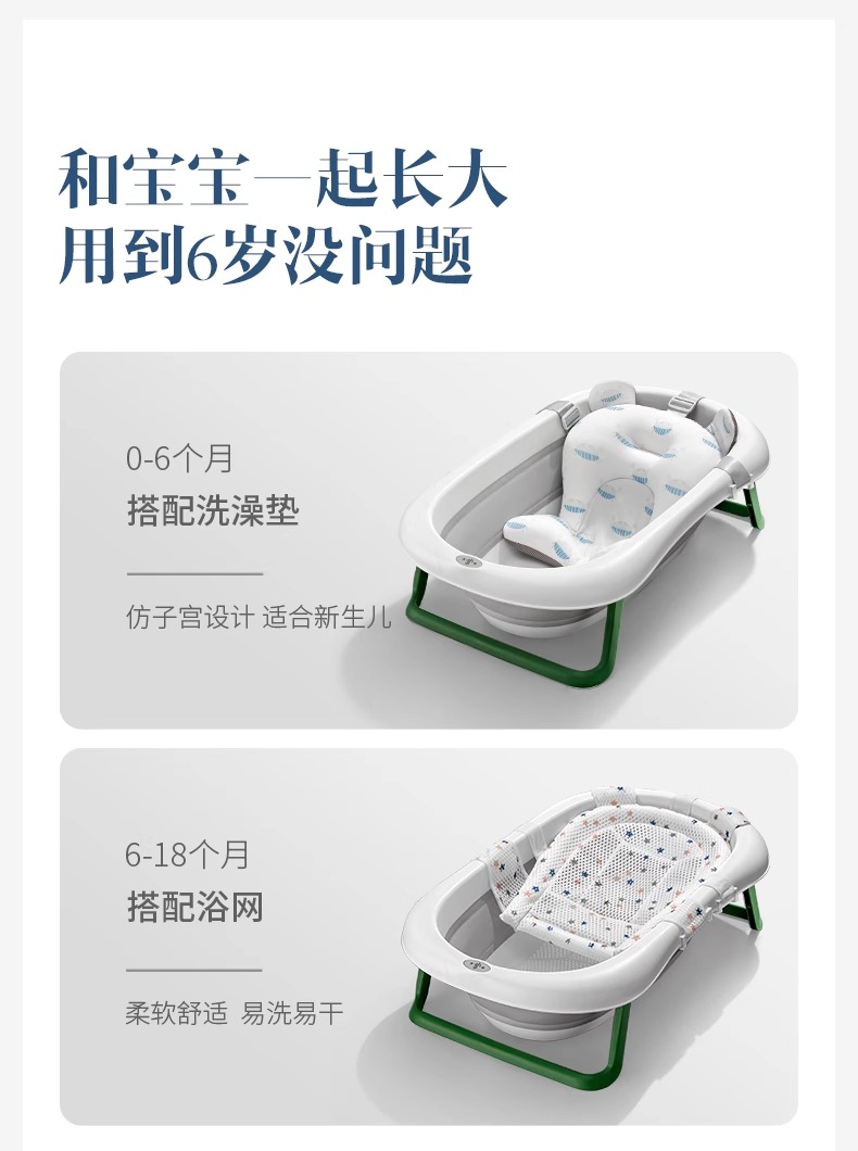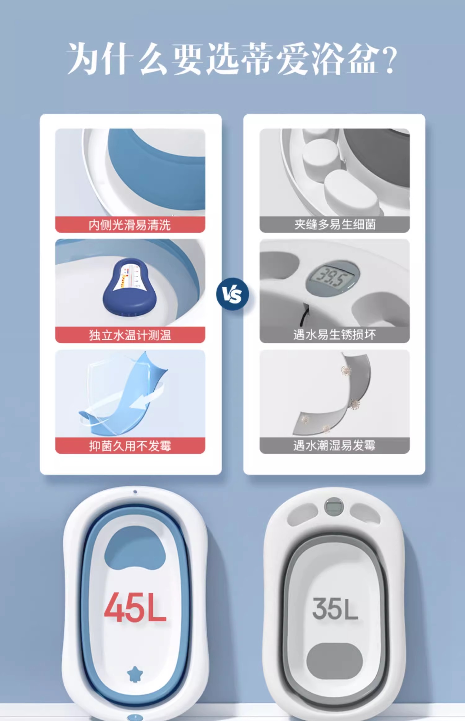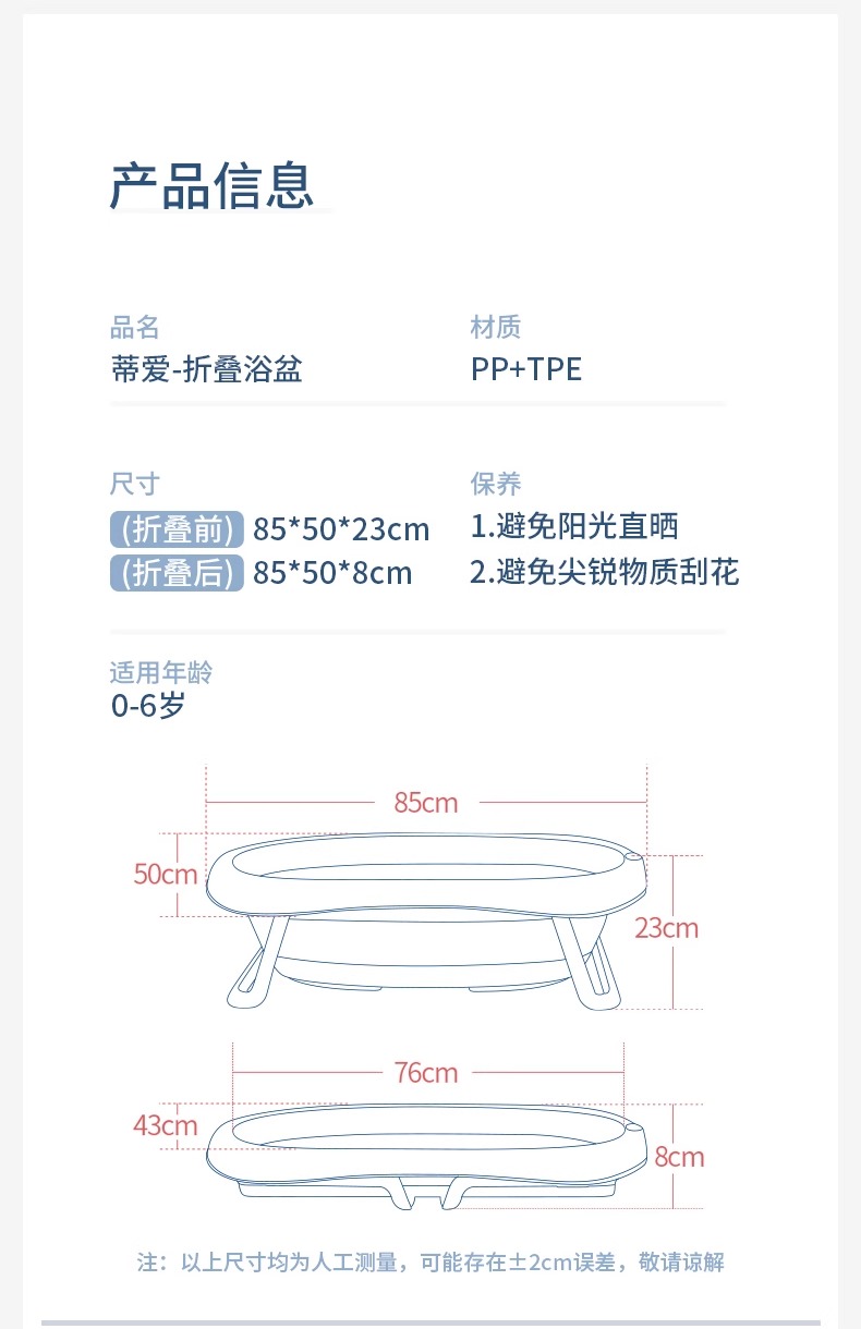 蒂爱浴盆婴儿洗澡盆新生儿宝宝家用折叠浴盆加大儿童沐浴洗澡桶