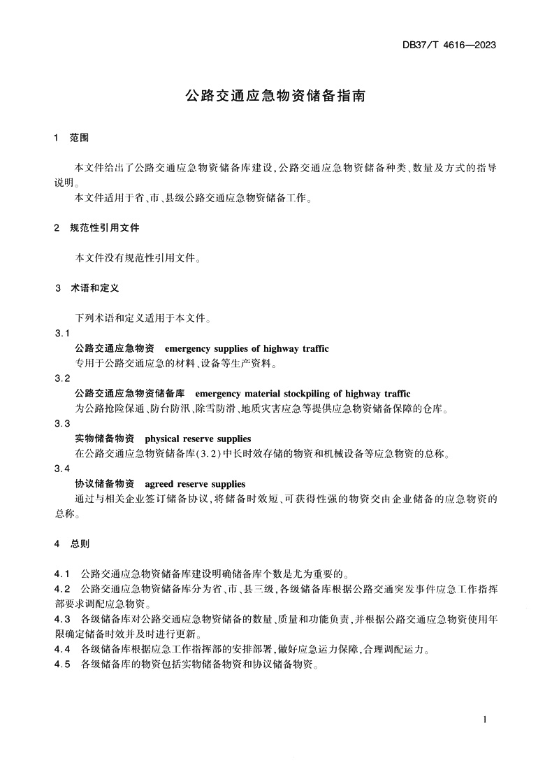 书名:公路交通应急物资储备指南(DB37/T 4616—2023)