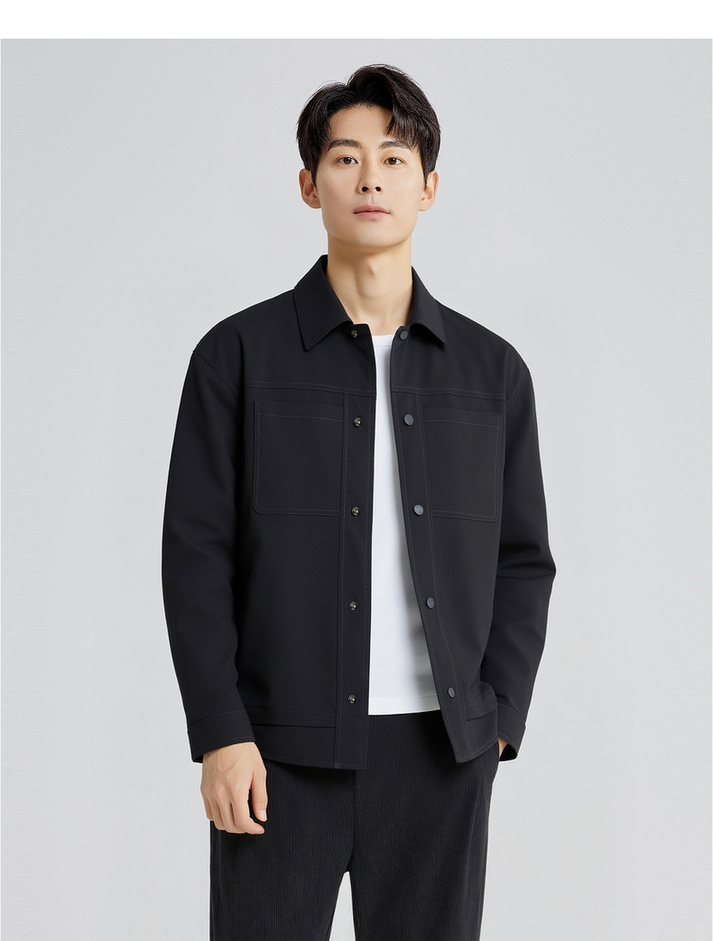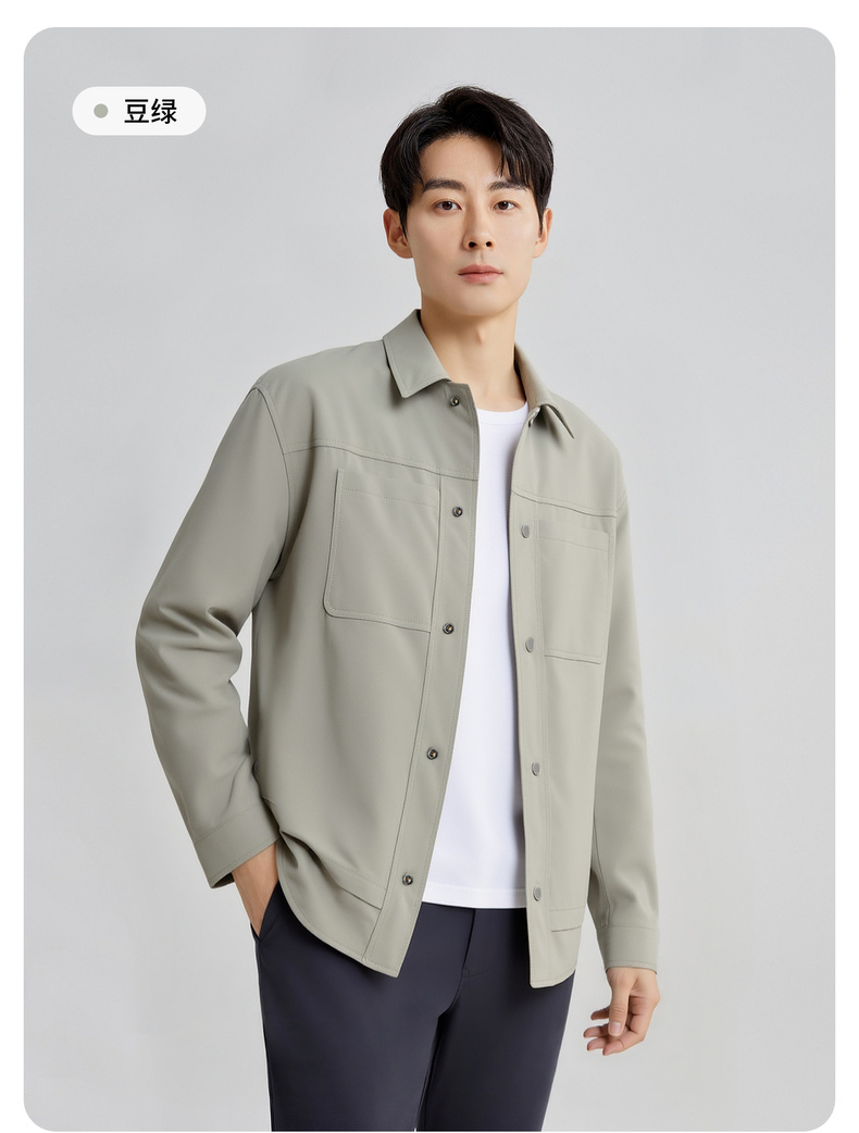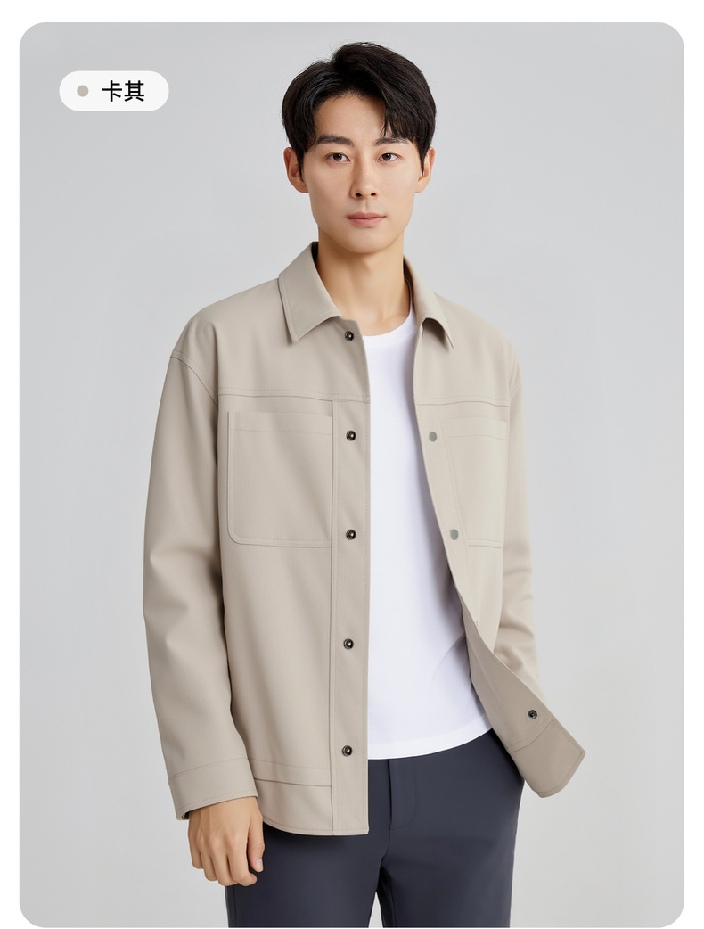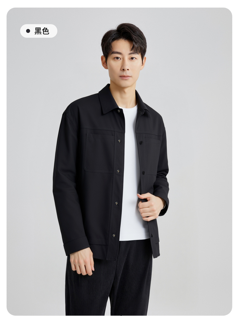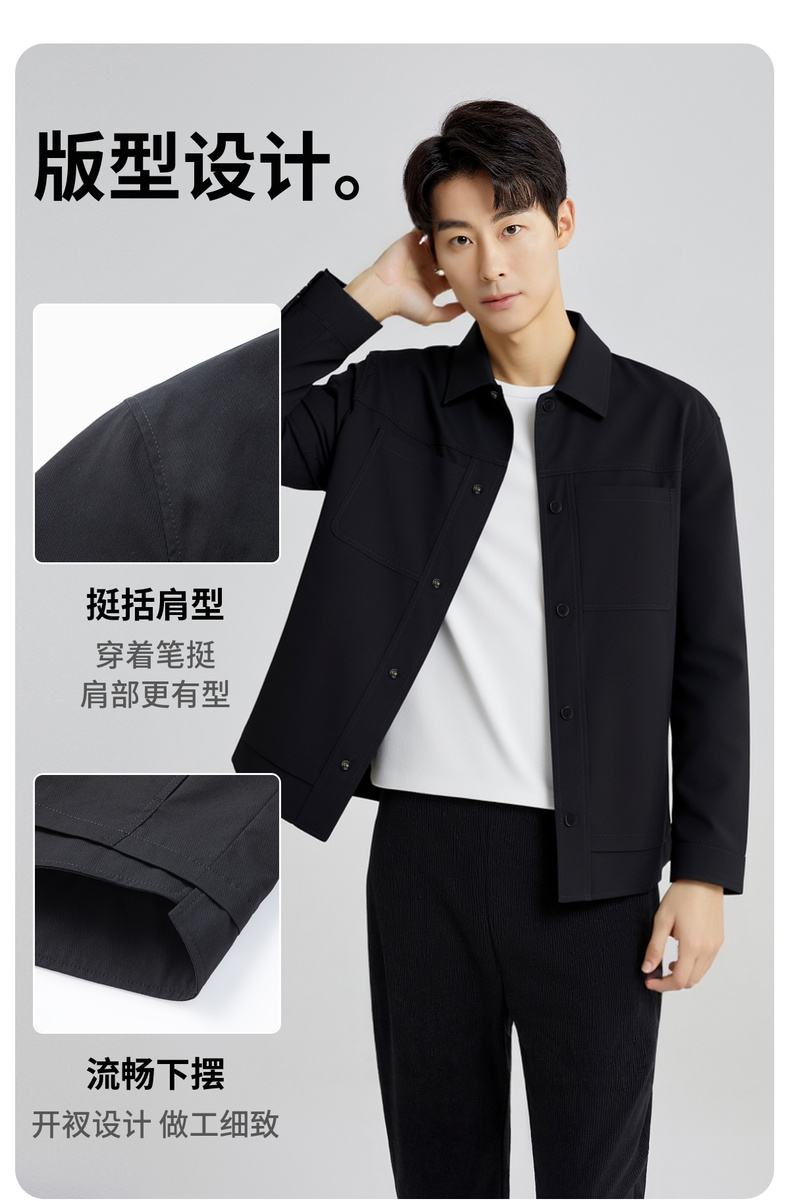 圣得西2025年秋季新款男士外套纯色百搭休闲工装风翻领夹克上衣男