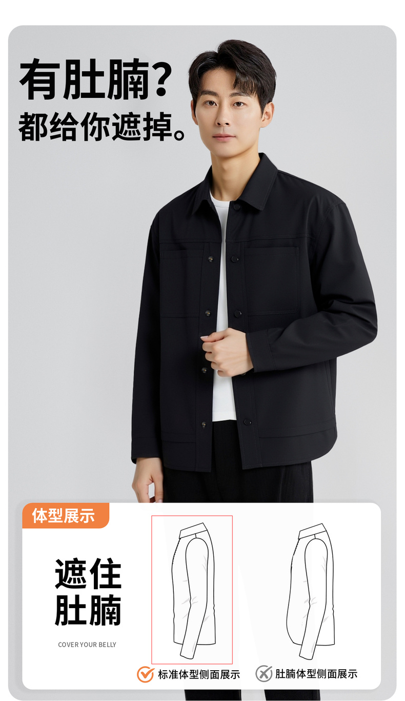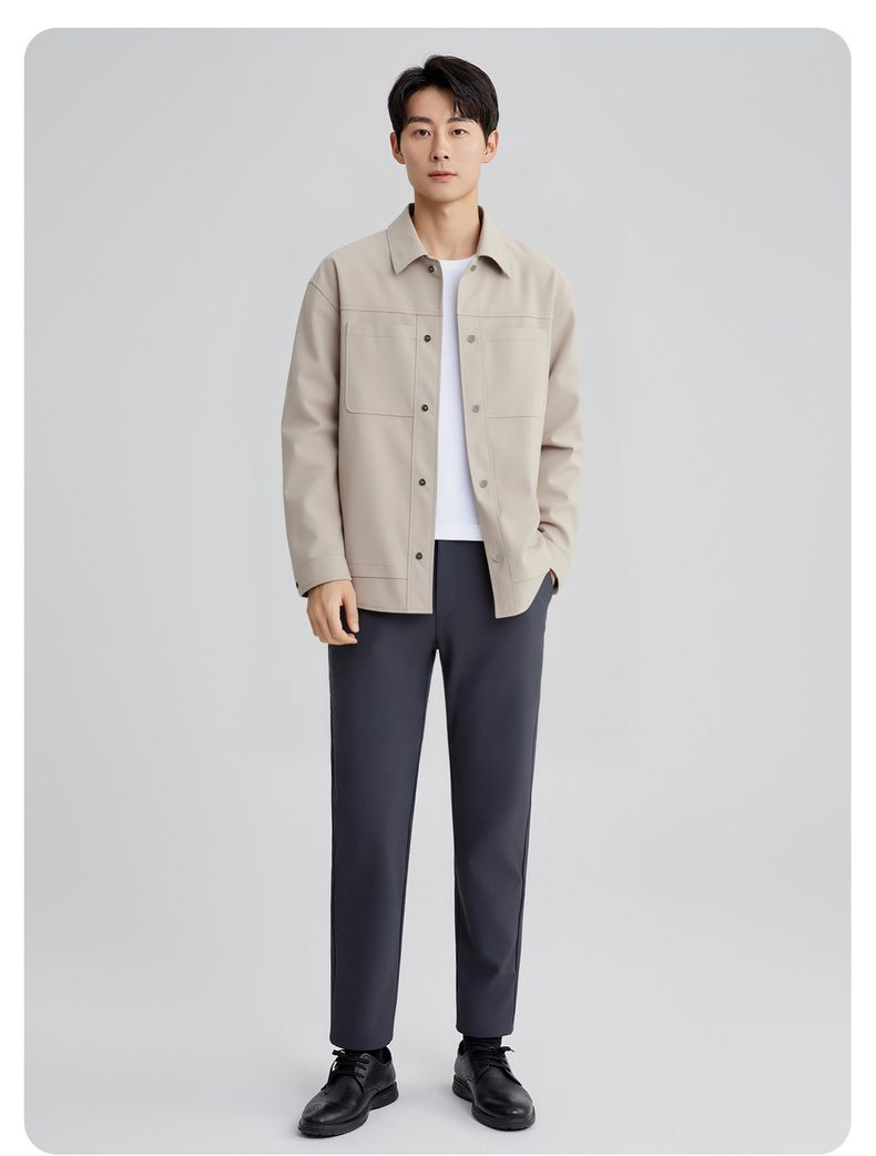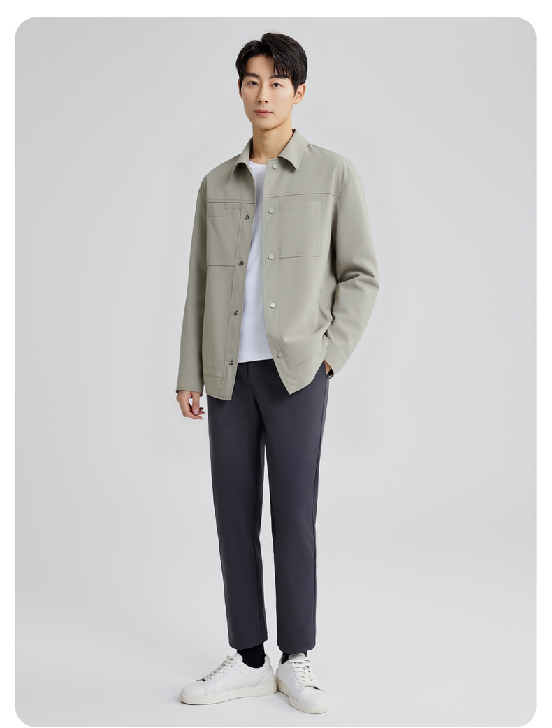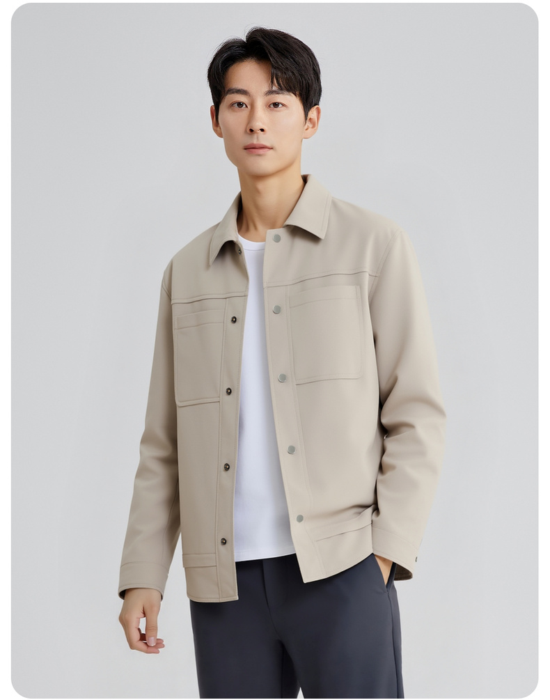 圣得西2025年秋季新款男士外套纯色百搭休闲工装风翻领夹克上衣男
