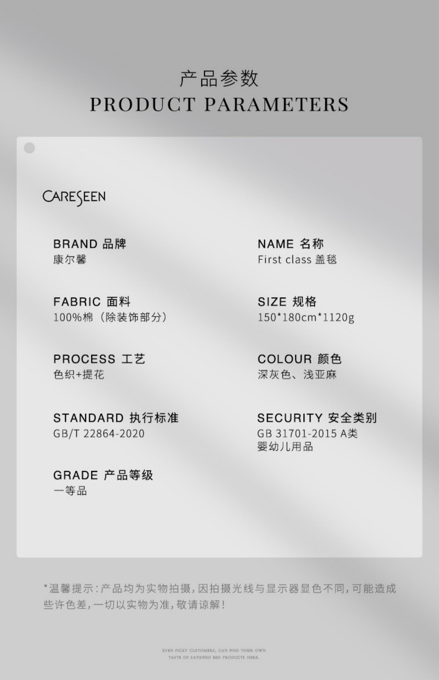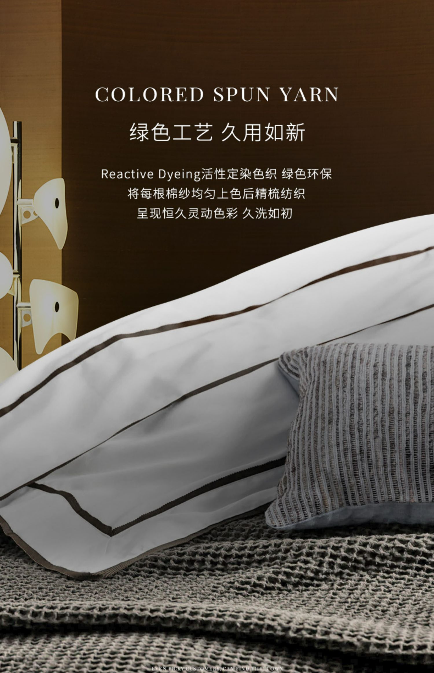 - 源自五星级酒店的奢华家纺品牌,康乃馨首次提出打造“酒店+家纺”的全新概念,将更为严格的五星级酒店纺织品品质标准与家纺相结合,完美诠释“酒店品质家纺”的舒适感受与奢华品味。