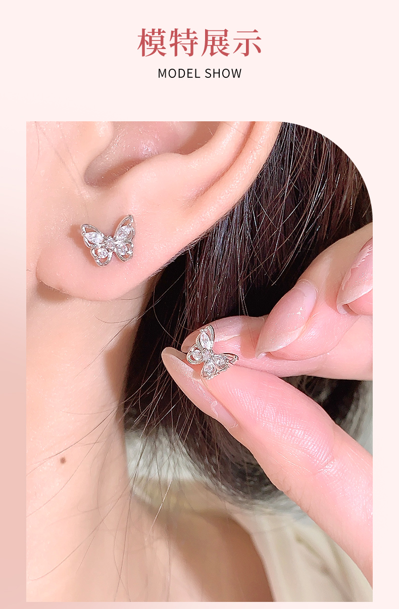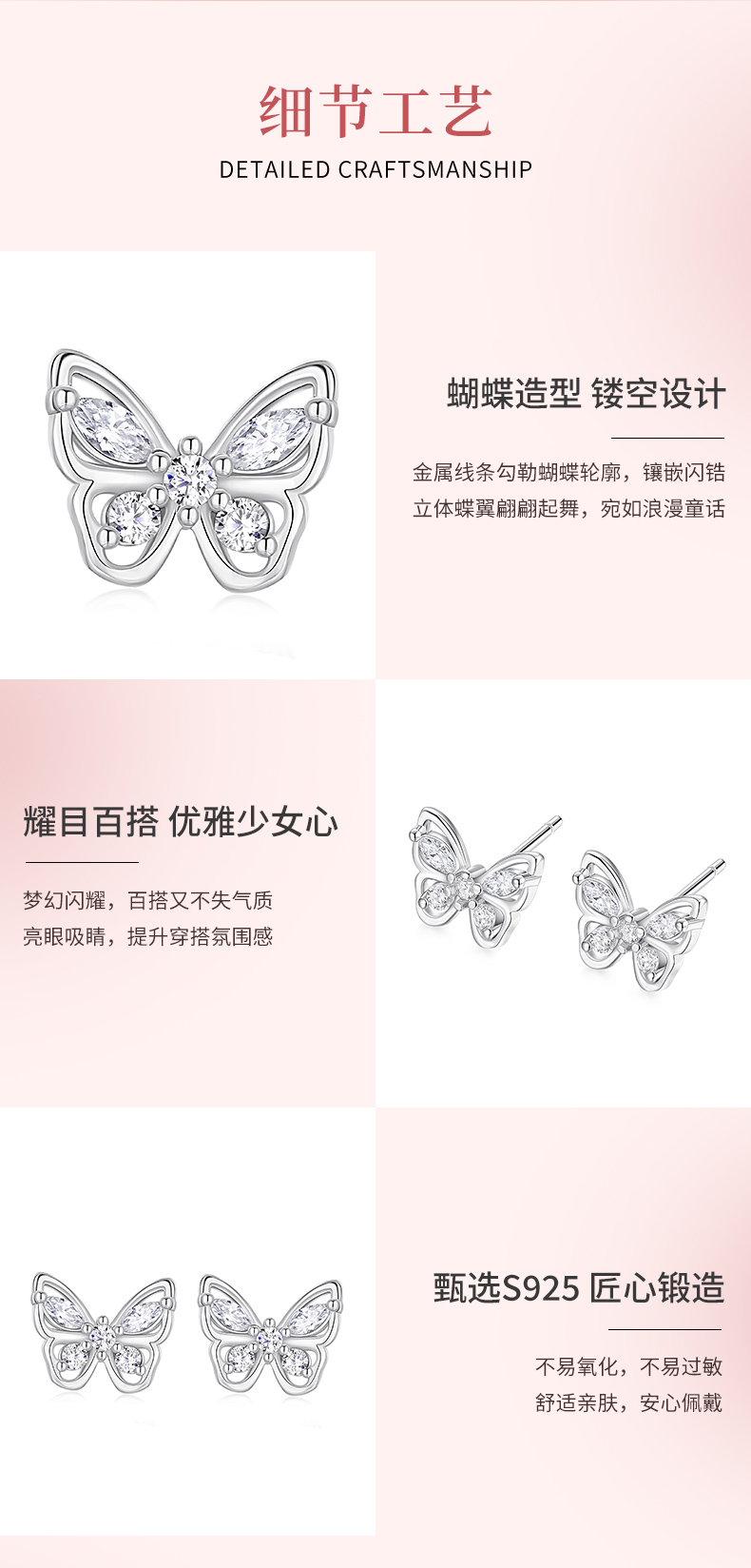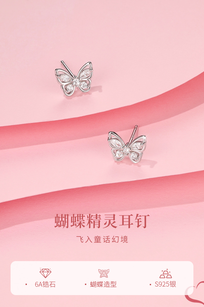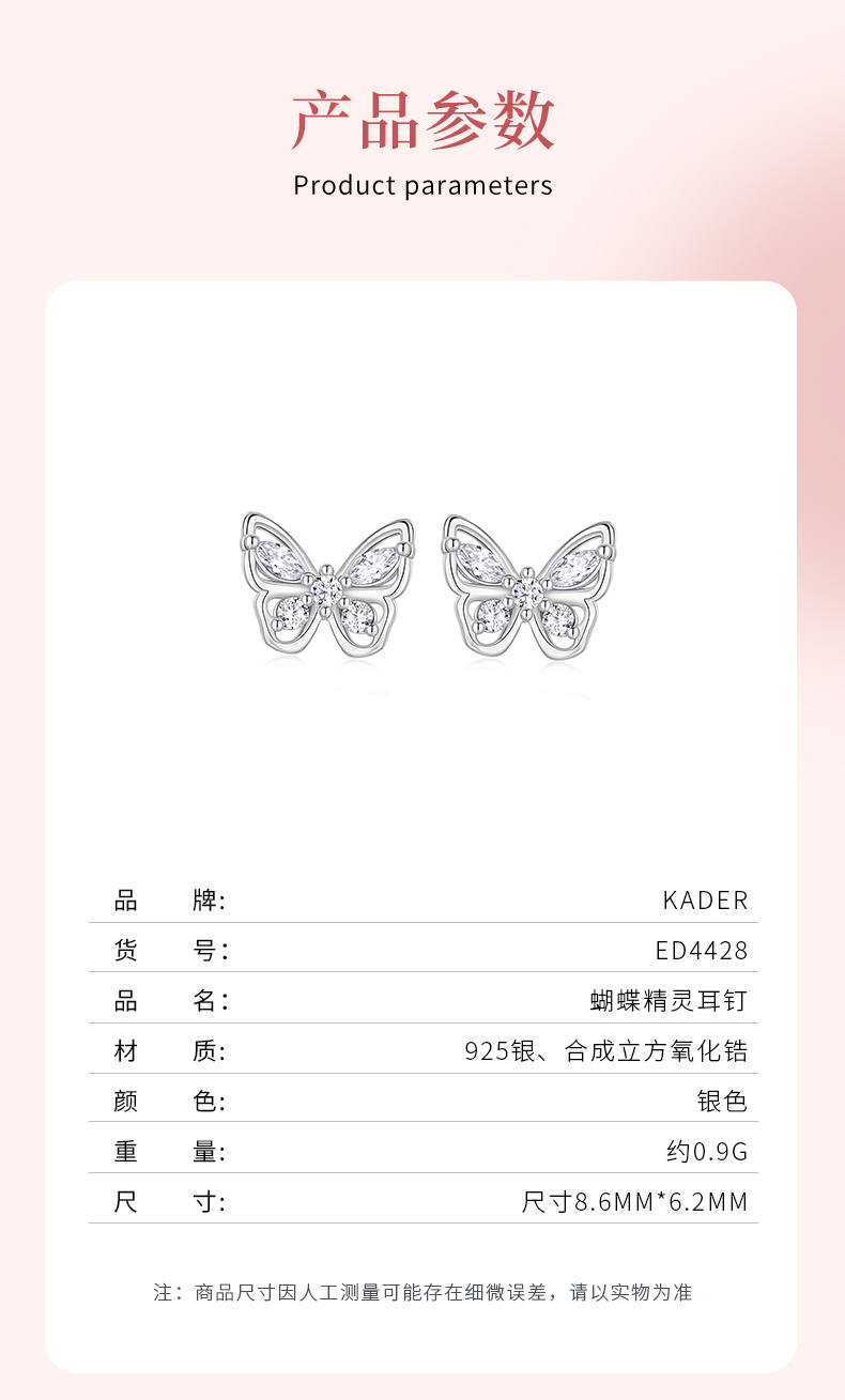 卡蒂罗/KADER 蝴蝶精灵耳钉 接住招财的玄学蝴蝶!闪闪蝶舞满镶宝石璀璨吸睛纯银耳饰 优雅温柔秋冬百搭