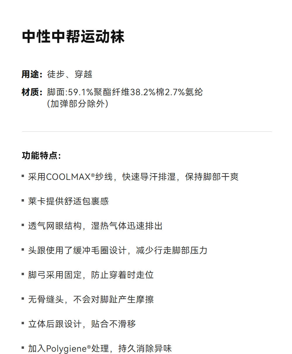 KAILAS凯乐石 中性中帮运动袜 KH2602001