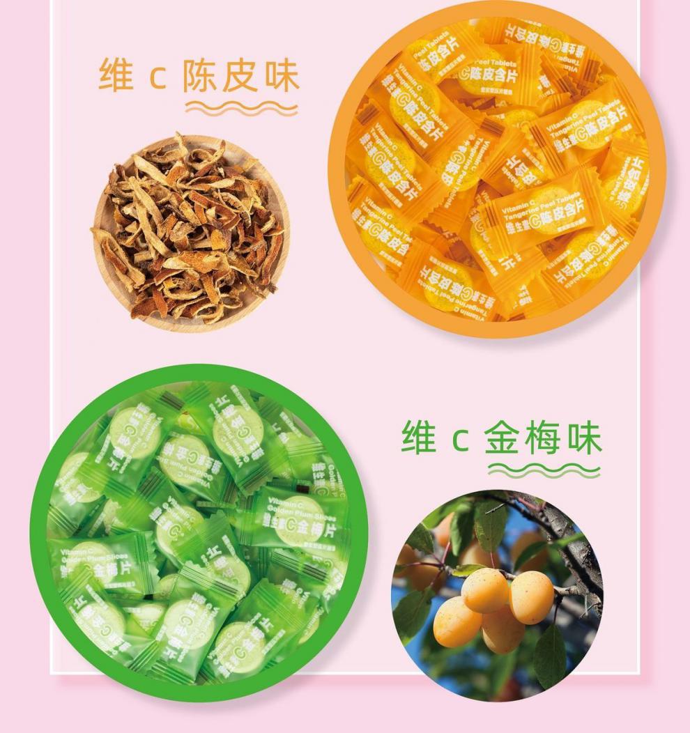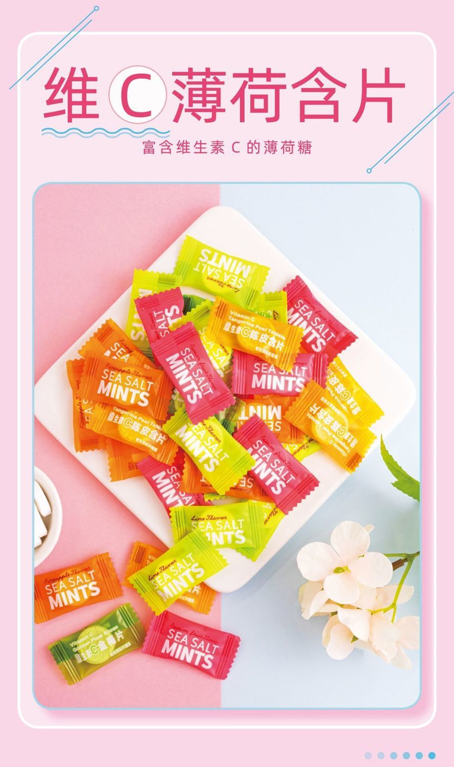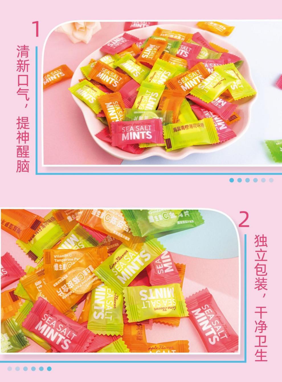 【买一送一!维C陈皮含片糖】海盐薄荷糖水果混合口味维生素C网红糖,休闲零食清凉糖果健康特价清仓