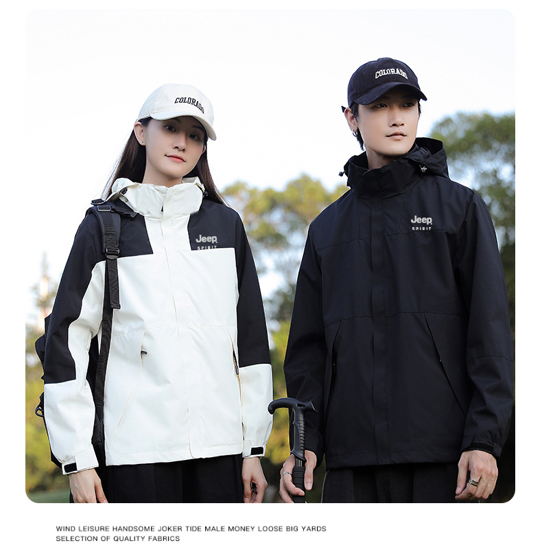 JEEP SPIRIT【三合一情侣冲锋衣】加厚可拆卸内胆外套 户外防风防水登山服 时尚百搭保暖夹克