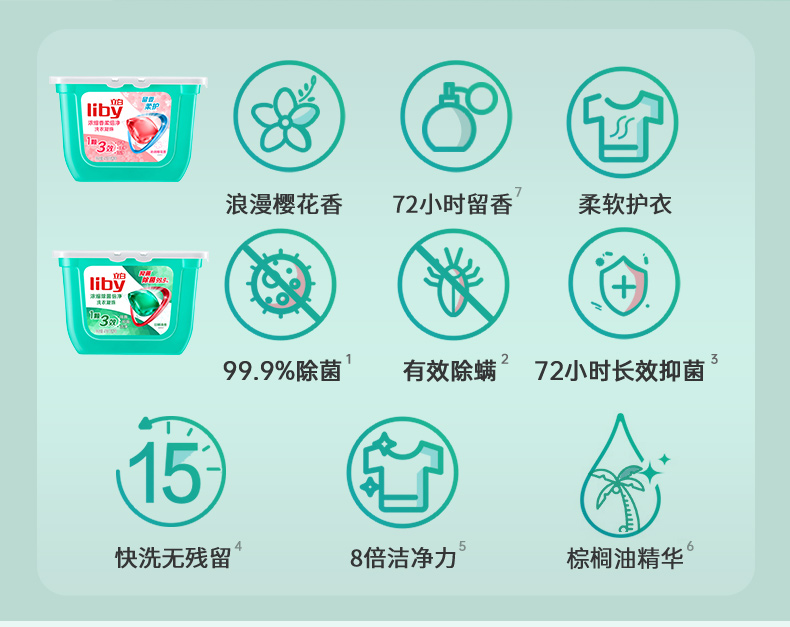 立白洗衣凝珠三合一208颗 除菌抑菌洁净柔护 樱花持久留香 浓缩洗衣液 洗衣珠 洗衣球 留香珠 快洗无残留