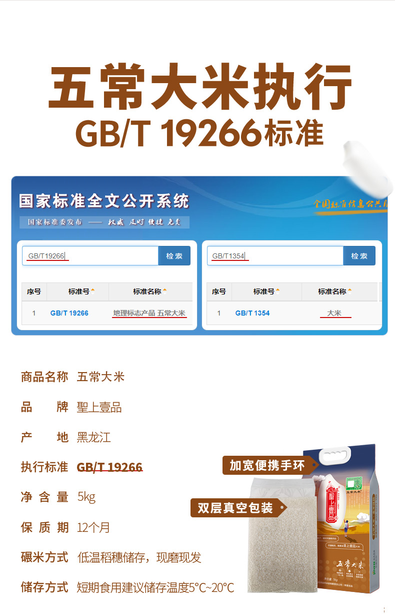 5kg线上聖上壹品精灵五常大米真空