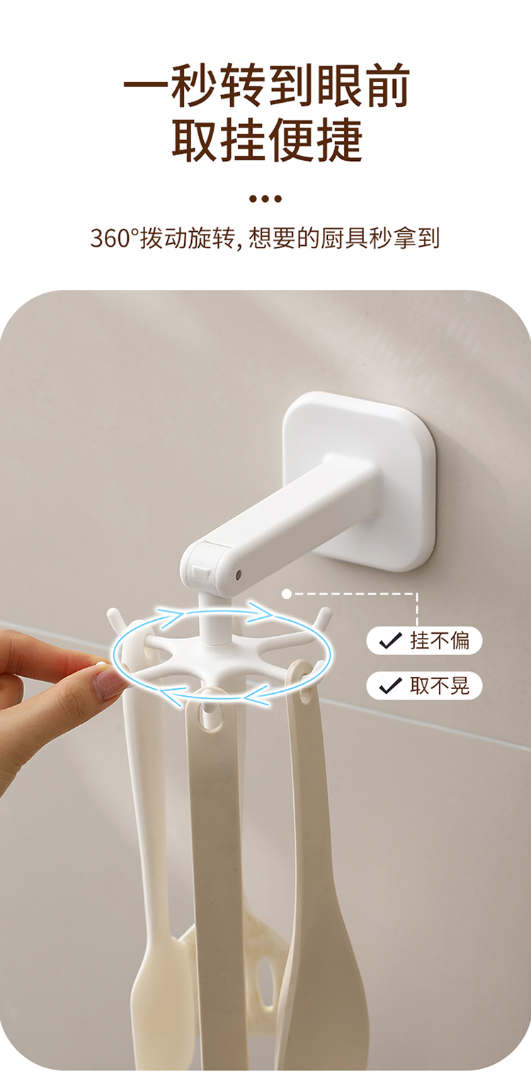 FaSoLa旋转挂钩厨房壁挂六爪架免打孔锅铲铲子勺子厨具收纳置物挂架