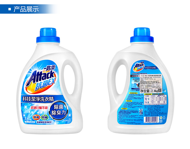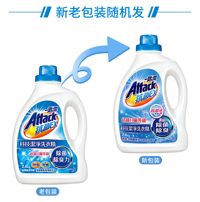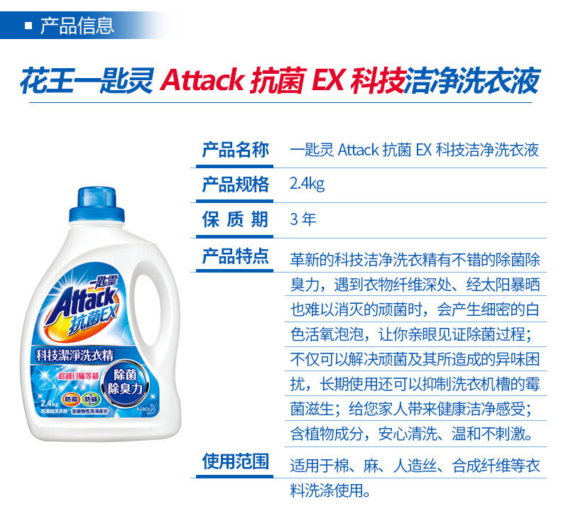 花王(KAO)进口花王洗衣液 一匙灵抗菌抑菌除臭防霉超浓缩洗衣液内衣洗衣液 婴儿儿童衣物清洁2.4kg