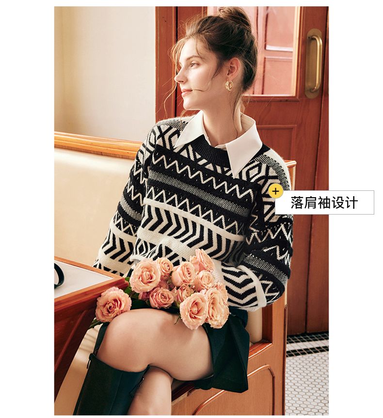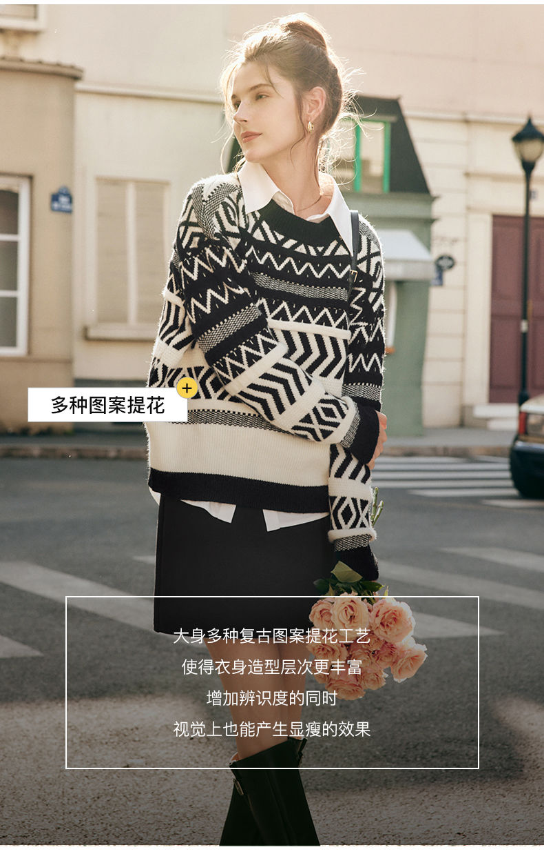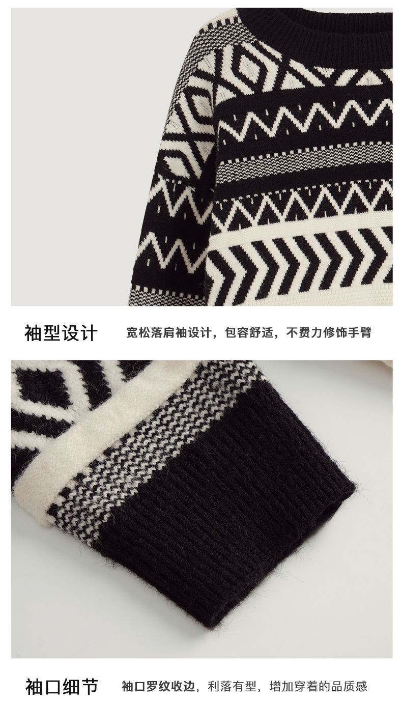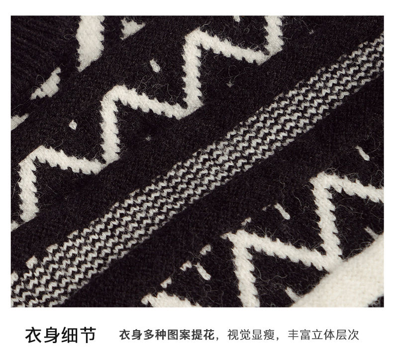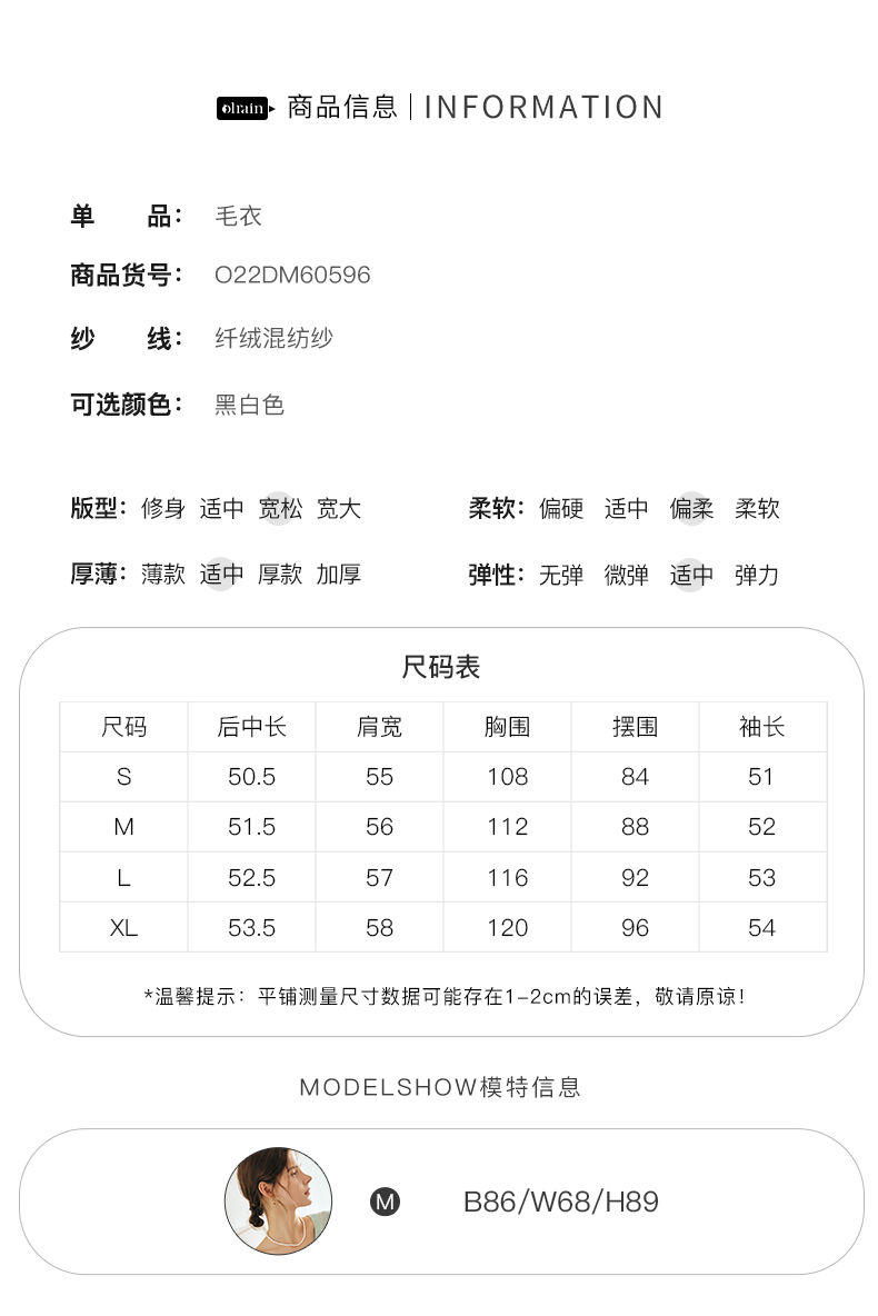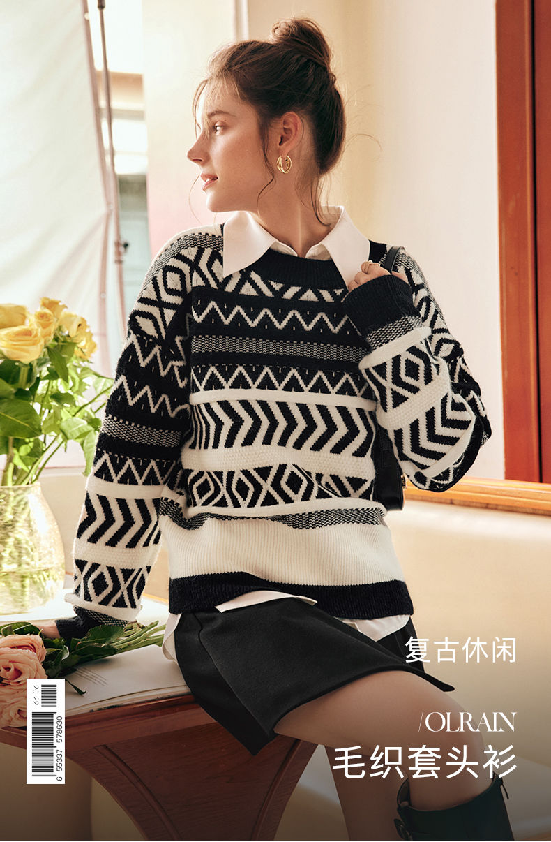 OLrain欧芮儿法式黑白色毛衣女秋冬2022新款宽松慵懒复古针织上衣