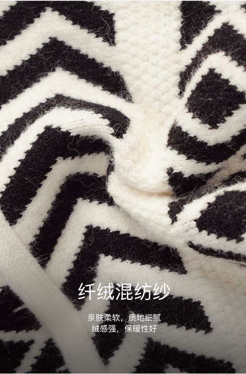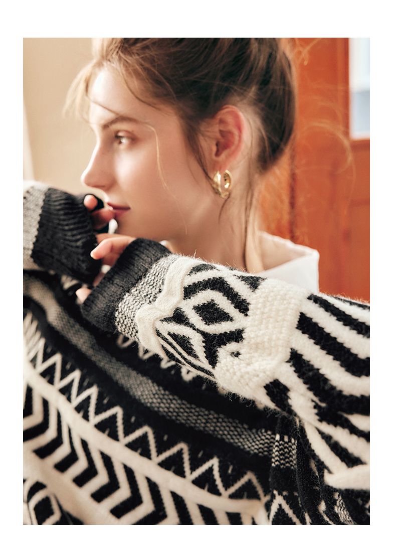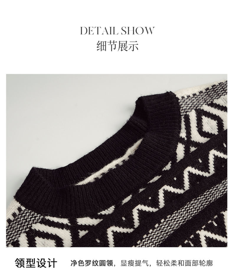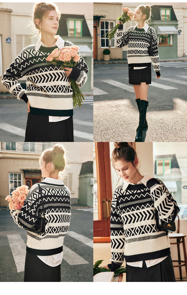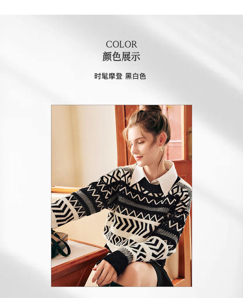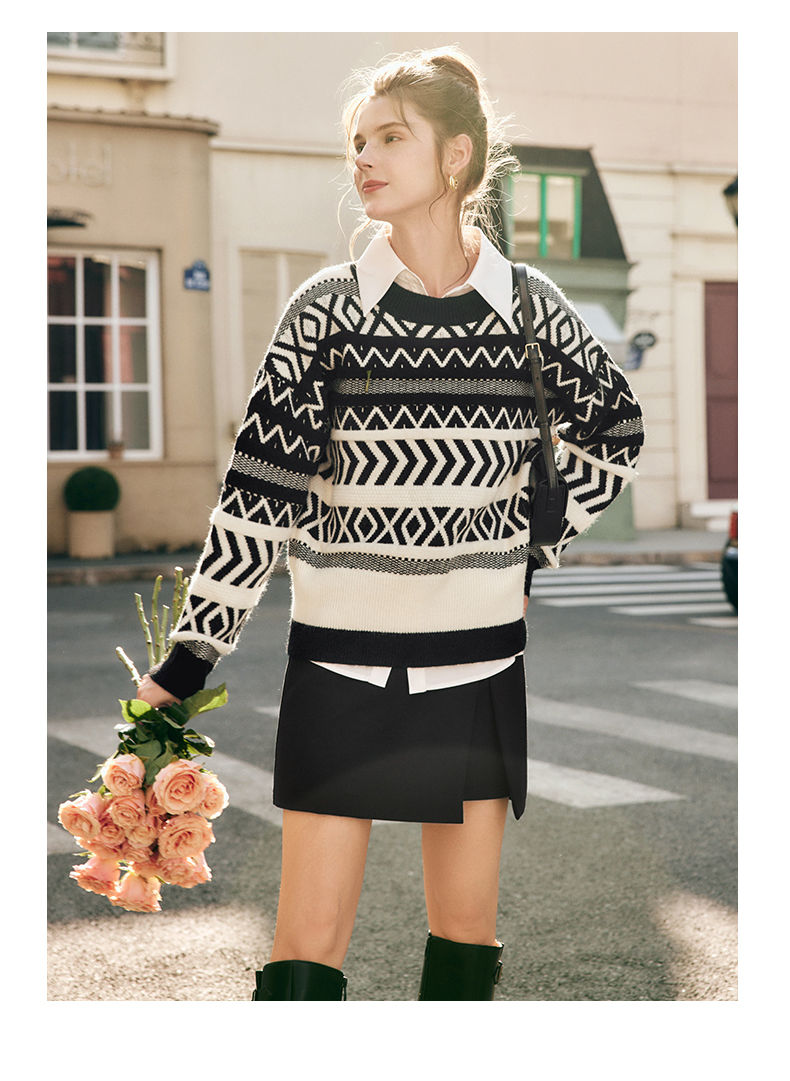 OLrain欧芮儿法式黑白色毛衣女秋冬2022新款宽松慵懒复古针织上衣