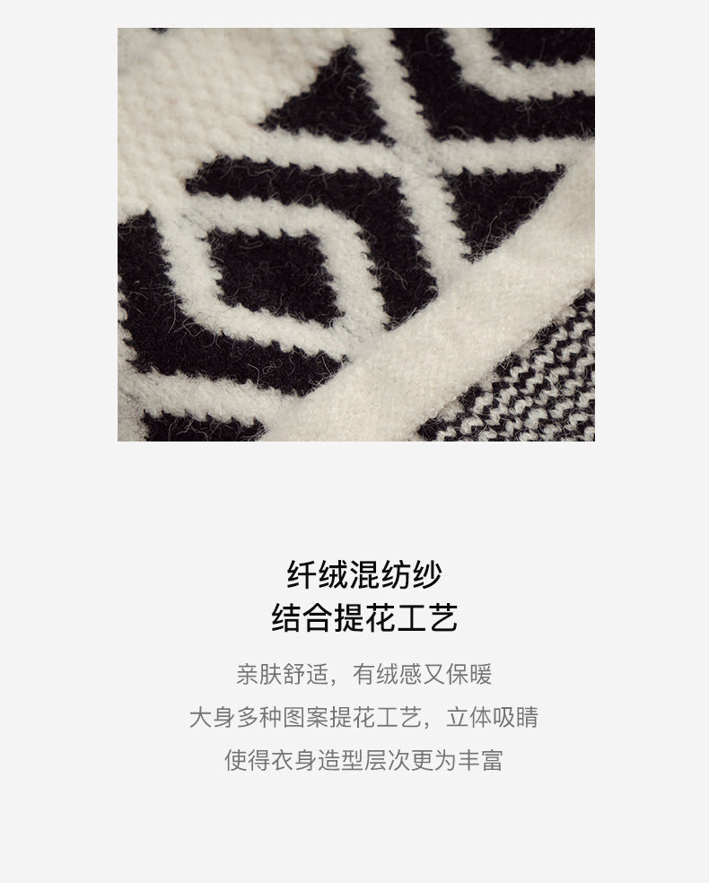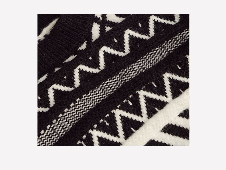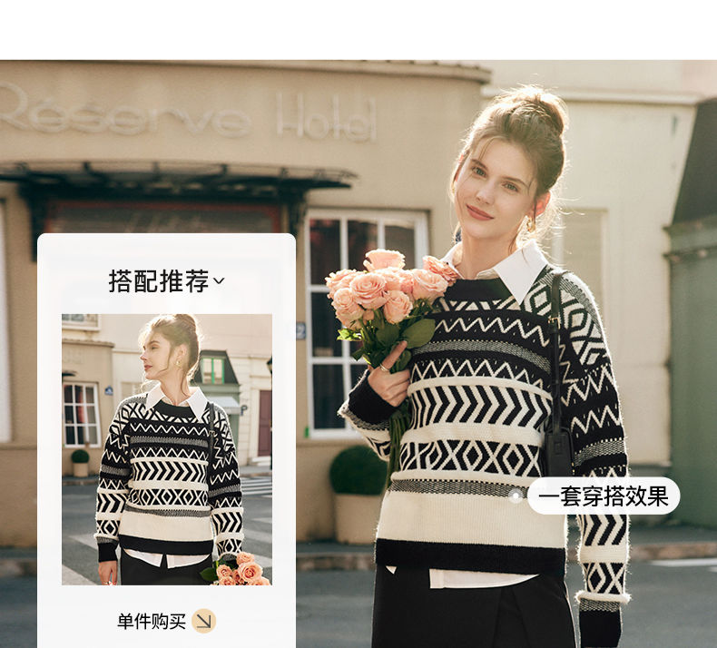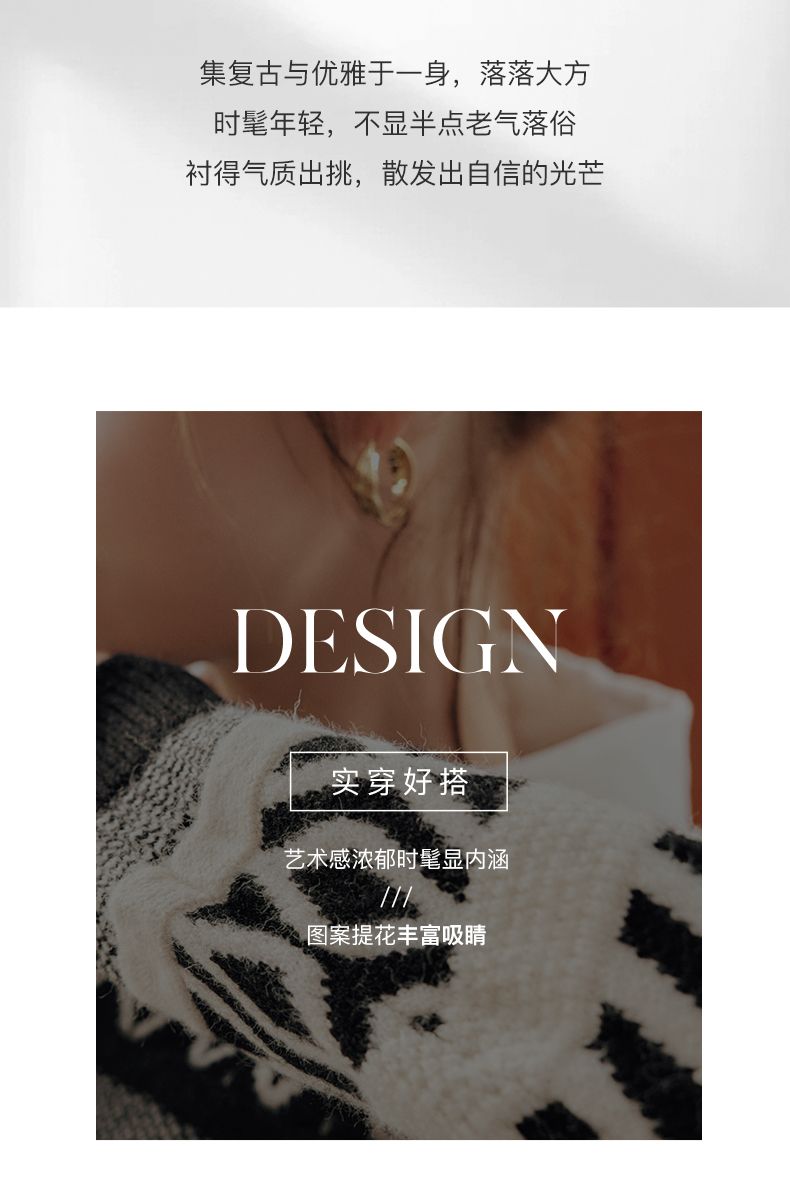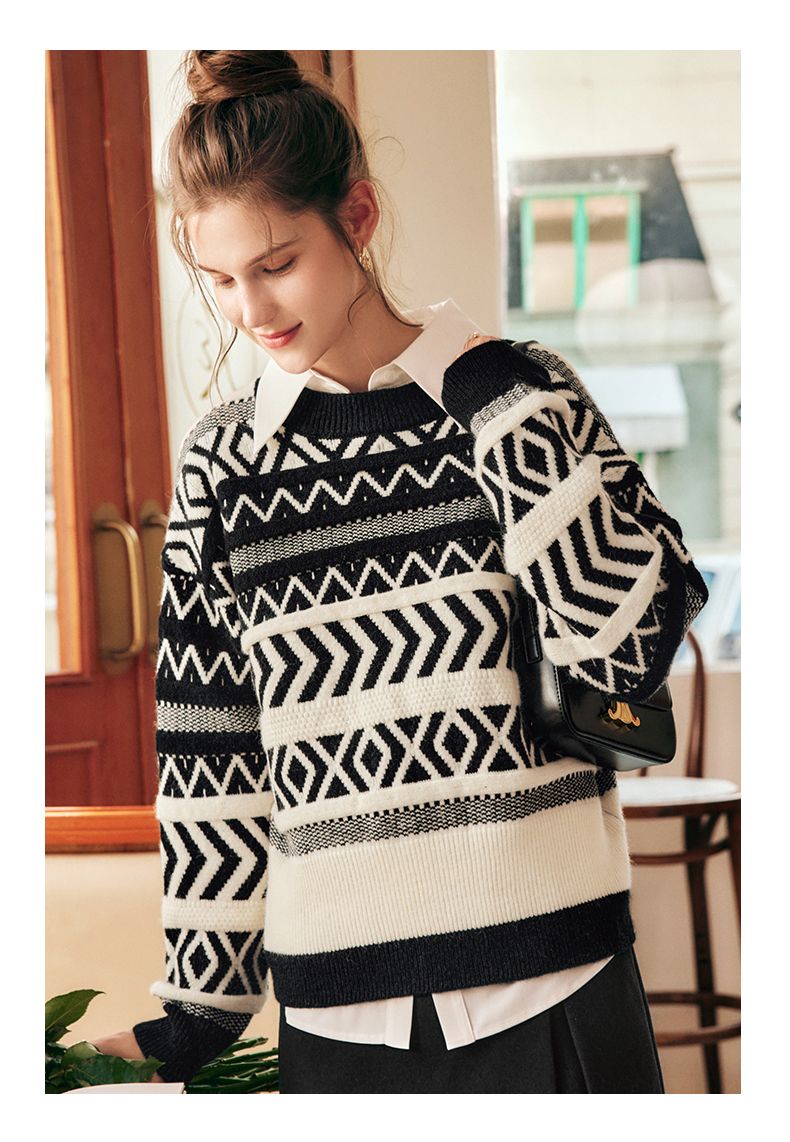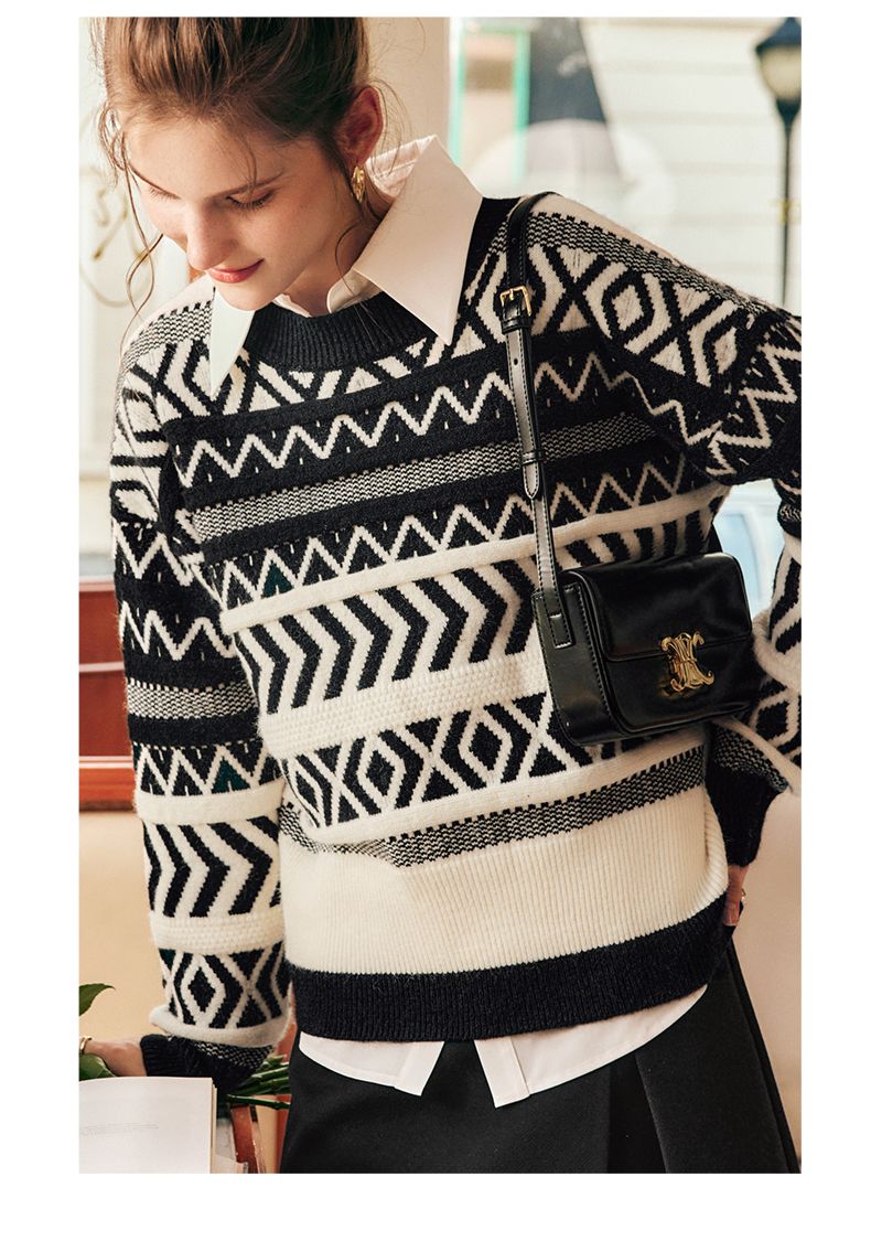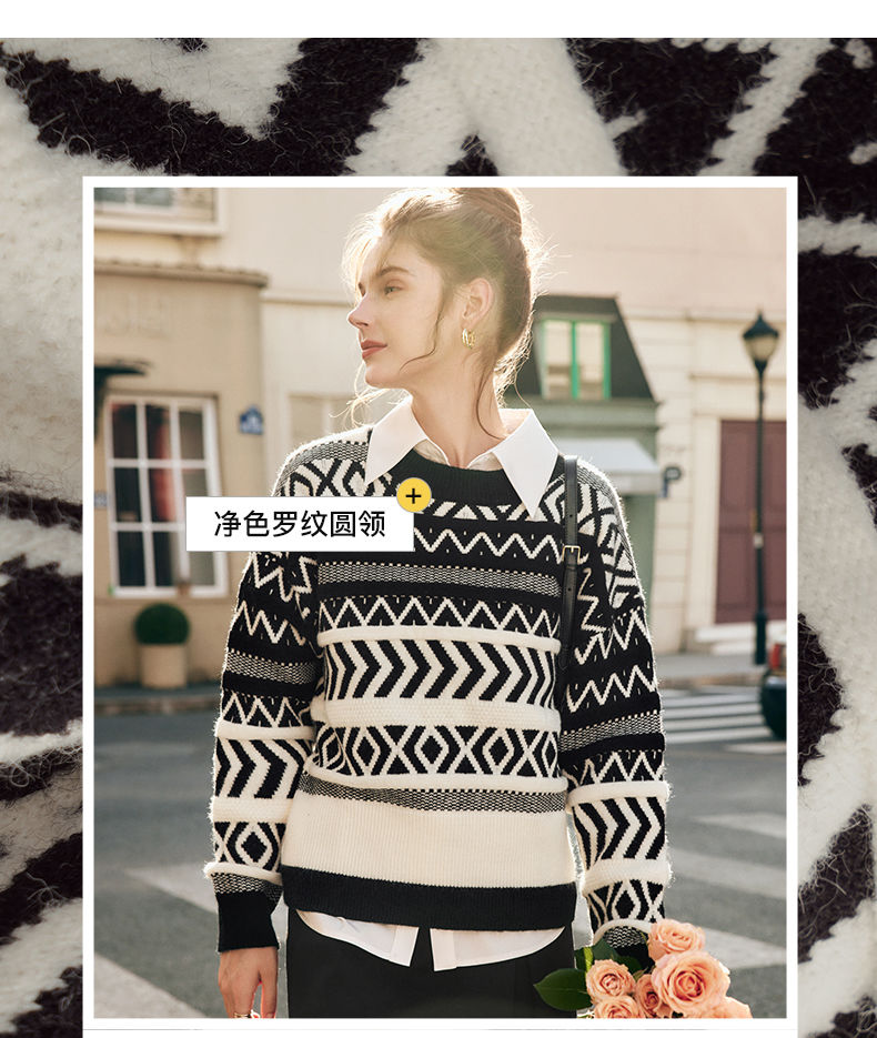 OLrain欧芮儿法式黑白色毛衣女秋冬2022新款宽松慵懒复古针织上衣